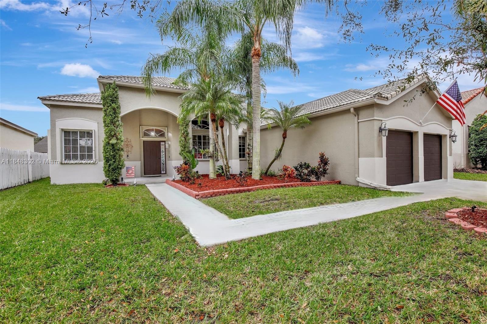 This beautifully ceiling heights maintained single-story home features 4 bedrooms and 2 updated bathrooms Enjoy abundant natural light throughout, wood laminate flooring. The kitchen boasts granite countertops, stainless steel appliances, a cozy breakfast nook and family room. Formal dining & living. The primary suite offers a tranquil retreat with a remodeled ensuite bath. Entertain in the fenced BIG backyard with a covered patio perfect for outdoor relaxation Accordion hurricane shutters, smart sprinkler system, and Ring security cameras. Big lot. Located within walking distance to A-rated Eagle Point Elementary school and park, community pool and minutes from shopping and major highways. A-Rated schools Don’t miss this opportunity to own in one of Weston most desirable neighborhoods!