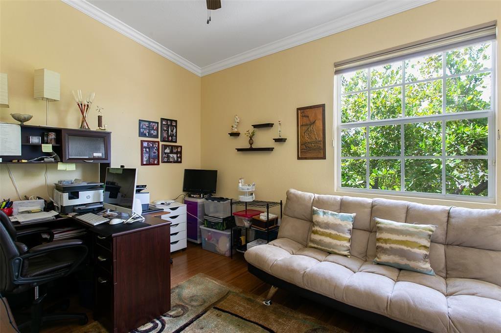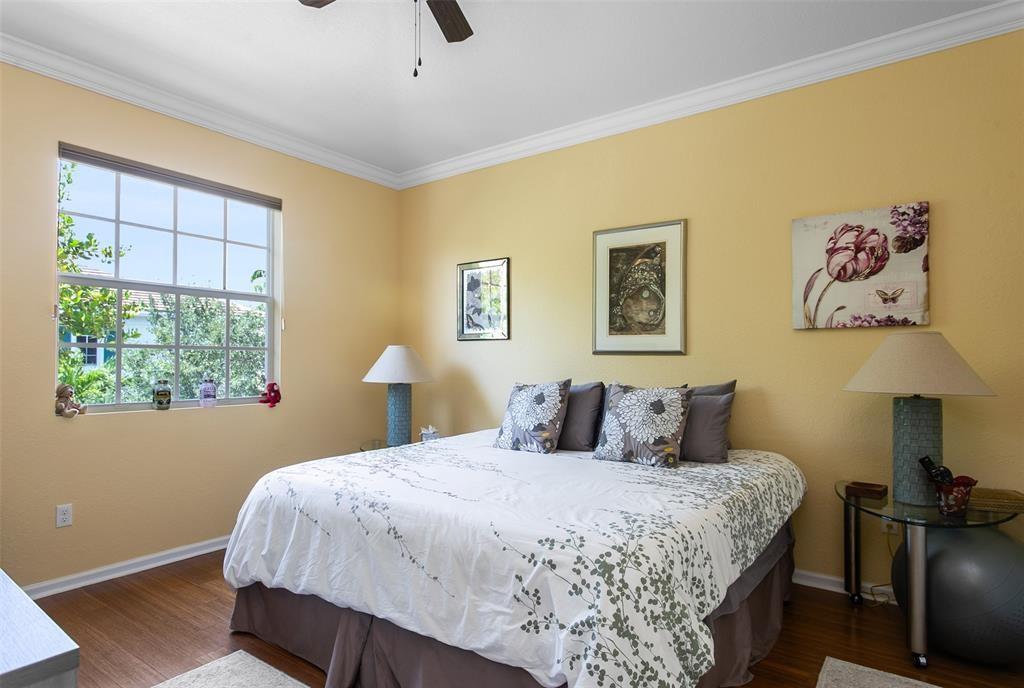 Luxury lakeside living awaits in the sought-after community of Orchid Grove, beautifully maintained corner unit—offers upgrades & a carefree lifestyle. Ground floor features easy-to-clean tile flooring & an open kitchen layout ideal for countertop dining or hosting in the formal dining room which flows gracefully into a spacious family room overlooking a serene fountain lake. A versatile bonus room w/convenient half bath adds extra space for entertaining. Upstairs, primary suite, a private retreat w/dual vanities, his-and-her closets, a generous soaker tub, separate shower, & a private commode area. Two well-appointed guest bedrooms share a full bath, & the second-floor laundry makes everyday living effortlessly convenient. Blending comfort, elegance, & lakeside charm. Make this your Home!