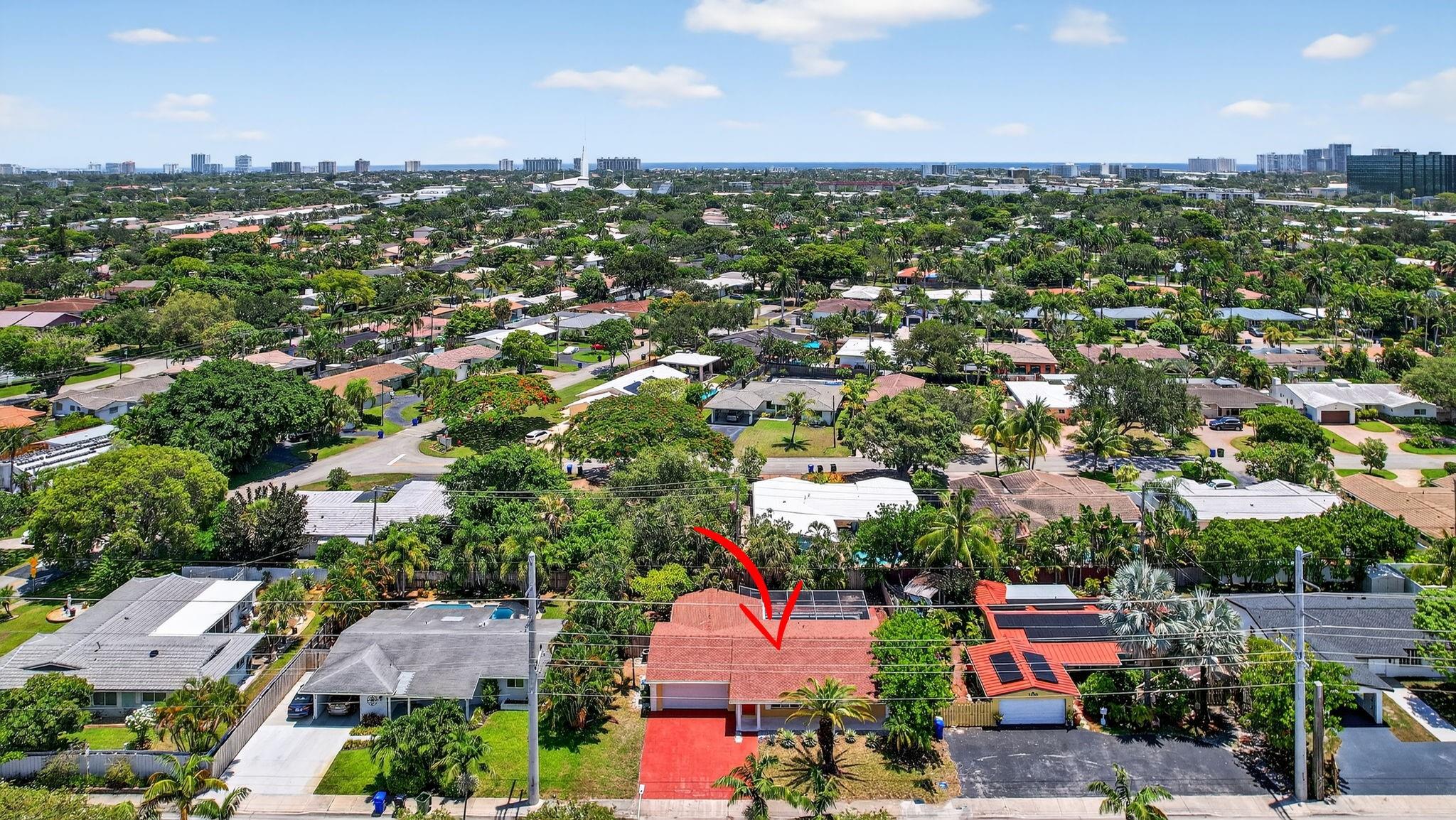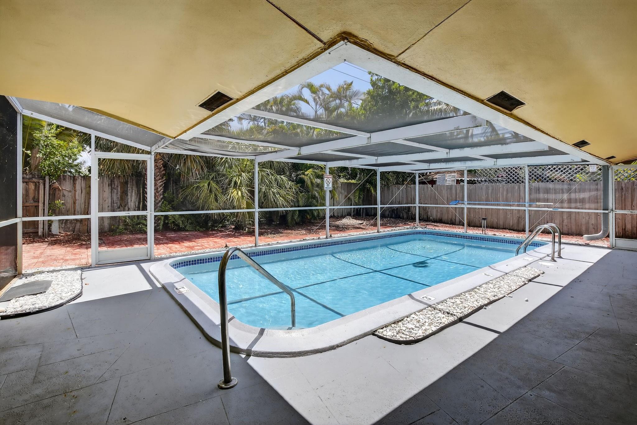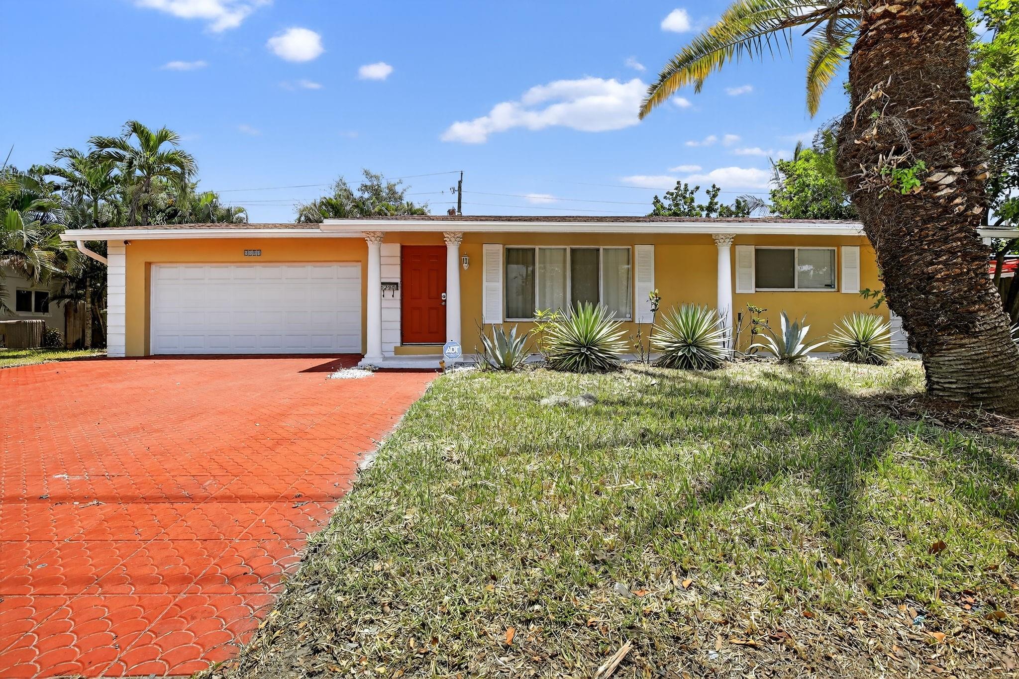**RMM-25 Zoned! Add units, a guest house. 2 miles to beach!**Fully updated and turnkey 3BR/2BA ranch in Fort Lauderdale’s most sought-after Coral Ridge neighborhood—This one is ideal for end users OR investors/short-term rental buyers. 1 mile from the BEACH! Features include recently updated kitchen and bathrooms and the house is completely tiled inside. 2023 flat roof, 2013 tile roof, all impact-rated windows, doors, and garage door, new A/C system including ductwork (2023), and recently refurbished & heated pool. Rain gutters. Home sits on a fully fenced yard with expansive private patio & also features an auto sprinkler system. 2 Car garage plus driveway offers parking for 4. This is a turn-key asset with flexibility for short term rentals!