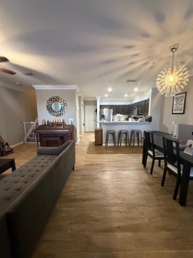 Welcome home to your 3-bedroom, 2.5-bath townhouse nestled in the highly desirable Paloma Lakes community! This residence boasts upgraded wood-look tile flooring throughout the downstairs, creating a sleek, durable, and inviting space. The kitchen features granite countertops and wood cabinetry. Crown molding accents downstairs elevate the home’s sophistication. Upstairs, enjoy spacious bedrooms, a well-appointed primary suite, and generously sized laundry room. Located walking distance from dining, shopping, and a movie theater at the Promenade. Conveniently located minutes away from the Sawgrass Expressway and Florida’s Turnpike. This gated neighborhood offers secure, convenient living with modern charm.