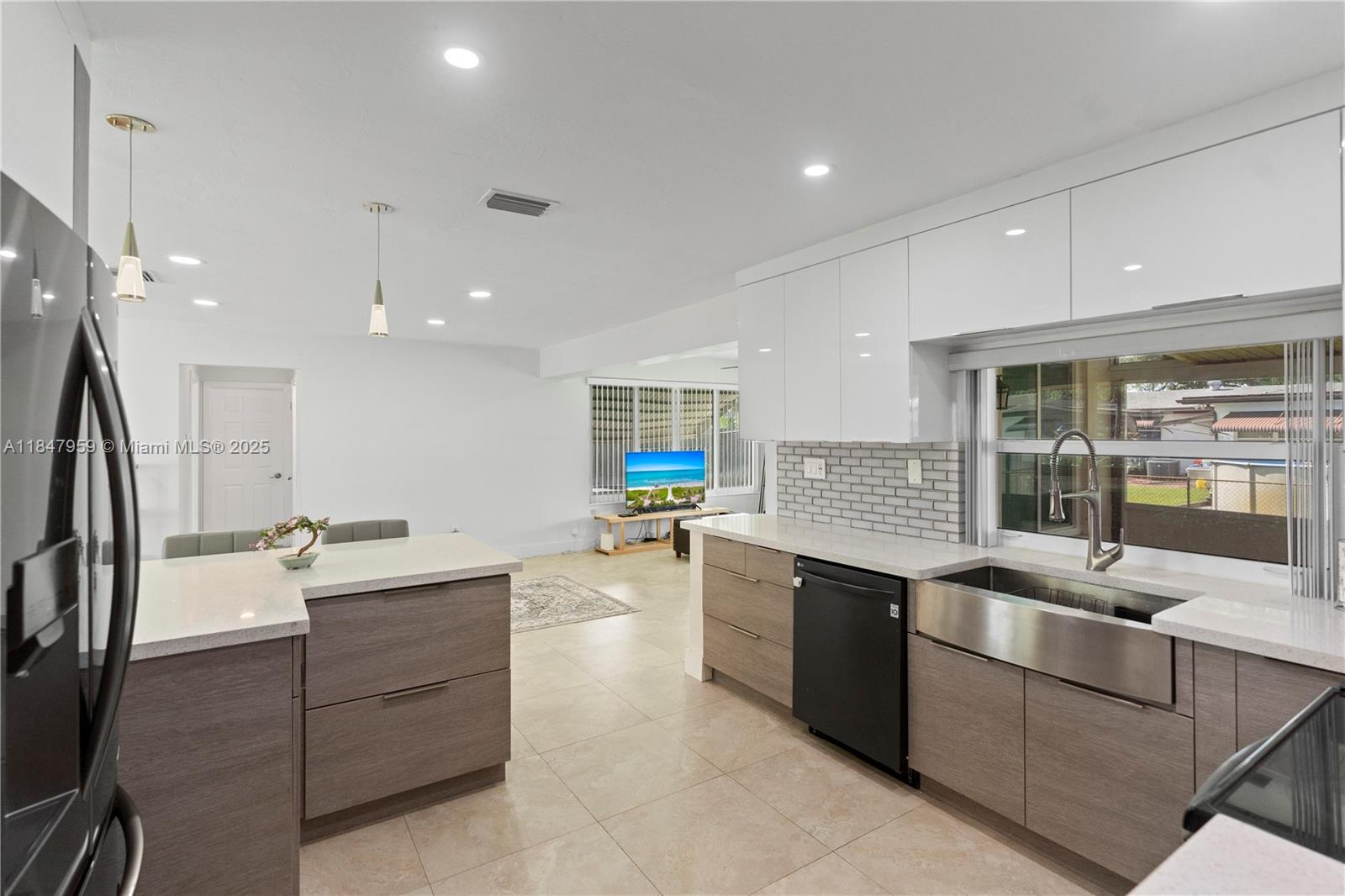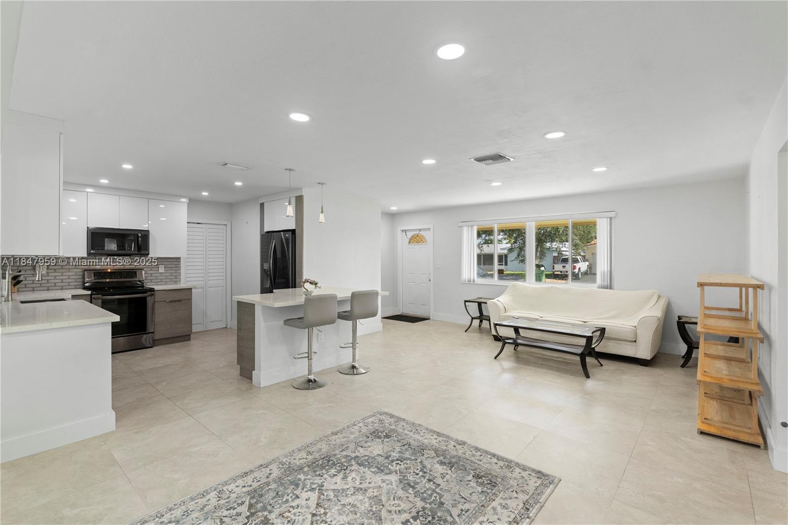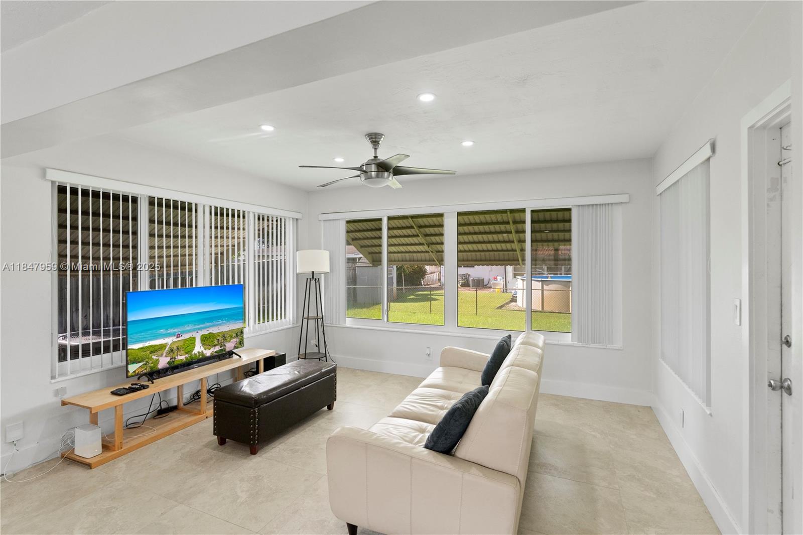 Shows like new, Light & bright, Recently remodeled, Modern and open floor plan, Impact windows, Updated kitchen cabinets, Quartz countertops, Updated appliances, Island counter and snack bar, Updated bathroom, Hi-hat lighting, Updated AC, Upgraded electrical panel, Tile floor throughout except for wood laminate in the bedrooms, Inside laundry room, Upgraded washer & dryer, Front & rear doors have accordion shutters, Hurricane rated garage door, Large screened porch, Fenced yard