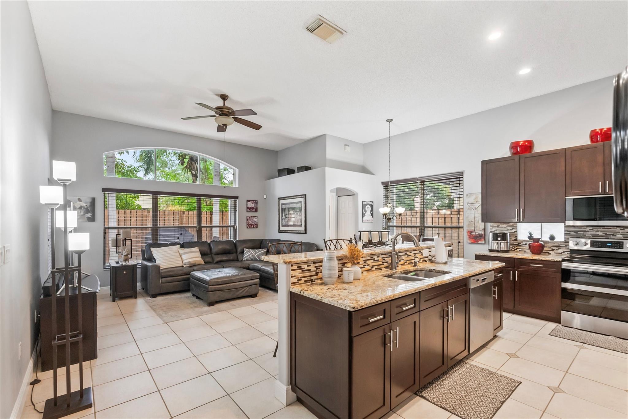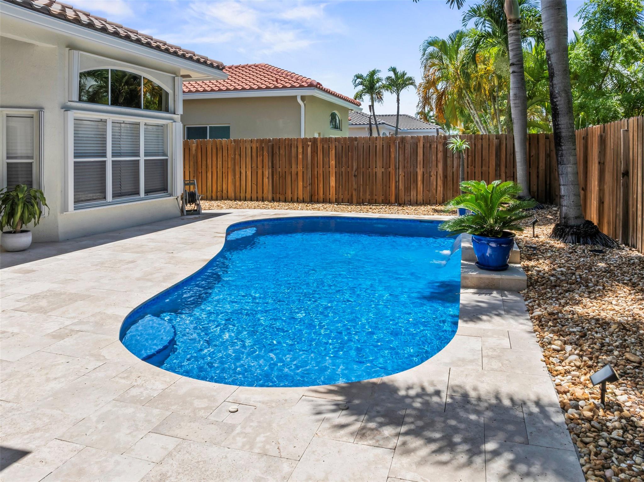 Spacious and beautifully upgraded *4-bedroom, 2.5-bath* home with *2,392 sq ft of living space*, situated on a *7,172 sq ft lot* in a highly desirable *gated community with low HOA fees* and zoned for *A+ rated schools*. This move-in ready home features a *fully REMODELED kitchen* with *stainless steel appliances*. Enjoy comfortable living with *laminate flooring in all bedrooms*, *REMODELED primary and secondary bathrooms*, and generous living areas throughout. Step outside to your private backyard oasis, complete with a *pool and travertine patio (2019)*—perfect for entertaining. Additional upgrades include a *new roof (2021)*, *accordion shutters*, and *impact-rated front and garage doors* A rare opportunity to own a home that checks every box—space, style, upgrades, and location!