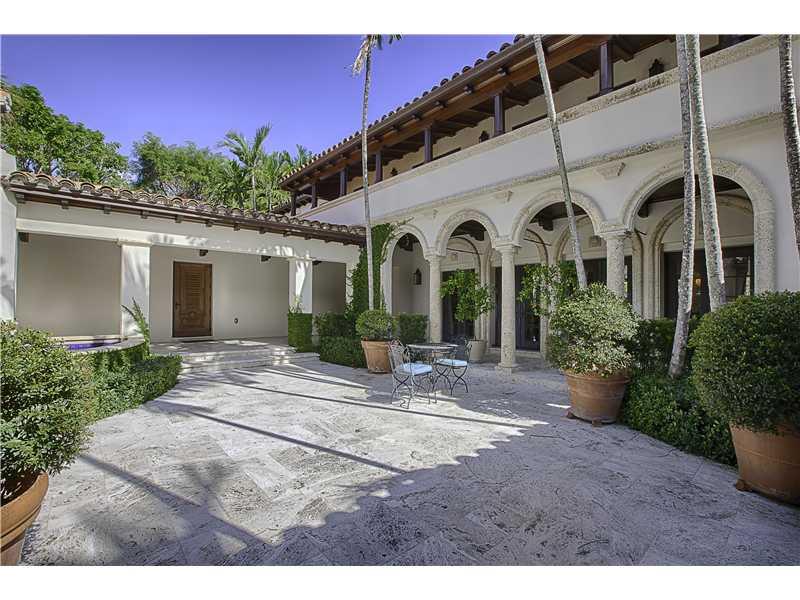 Set on approx. an acre, this remodeled 9700+sf Mediterranean estate offers privacy and elegance. 200+ft of waterfront. 7brs, ofc, 8.5 baths, fine marble and hardwd flrs, dbl living room w/marble fireplc overlooking the water. Media rm, family rm w/granite bar & spacious kitchen w/breakfast area, sumptuous master suite w/soaring ceilings. Notable exterior features of the grand estate include hand-laid keystone appointments, stone fountains and interior courtyard loggias surrounded by coral stonework.