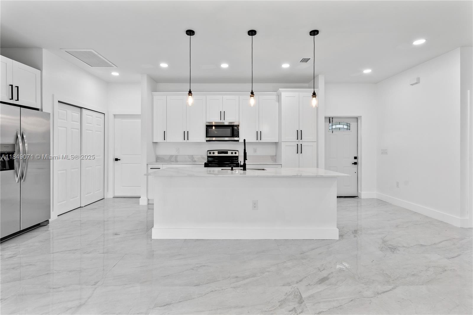 Brand New Home in a Highly Desirable Area of Lehigh Acres Welcome to your dream home, located in one of the most sought-after neighborhoods in Lehigh Acres—just minutes from Highway 82 for easy access. This stunning new construction features impact windows and doors, an open-concept layout, and a split floor plan for added privacy and functionality. The spacious kitchen is a chef’s delight, complete with white shaker cabinets, quartz countertops and brand-new SS appliances. A dedicated laundry room adds convenience and extra storage. Large sliding glass doors open to a beautiful backyard—perfect for enjoying Florida’s year-round sunshine. The master suite offers a luxurious retreat with a modern walk-in shower, and the expansive backyard has plenty of room to add a pool.