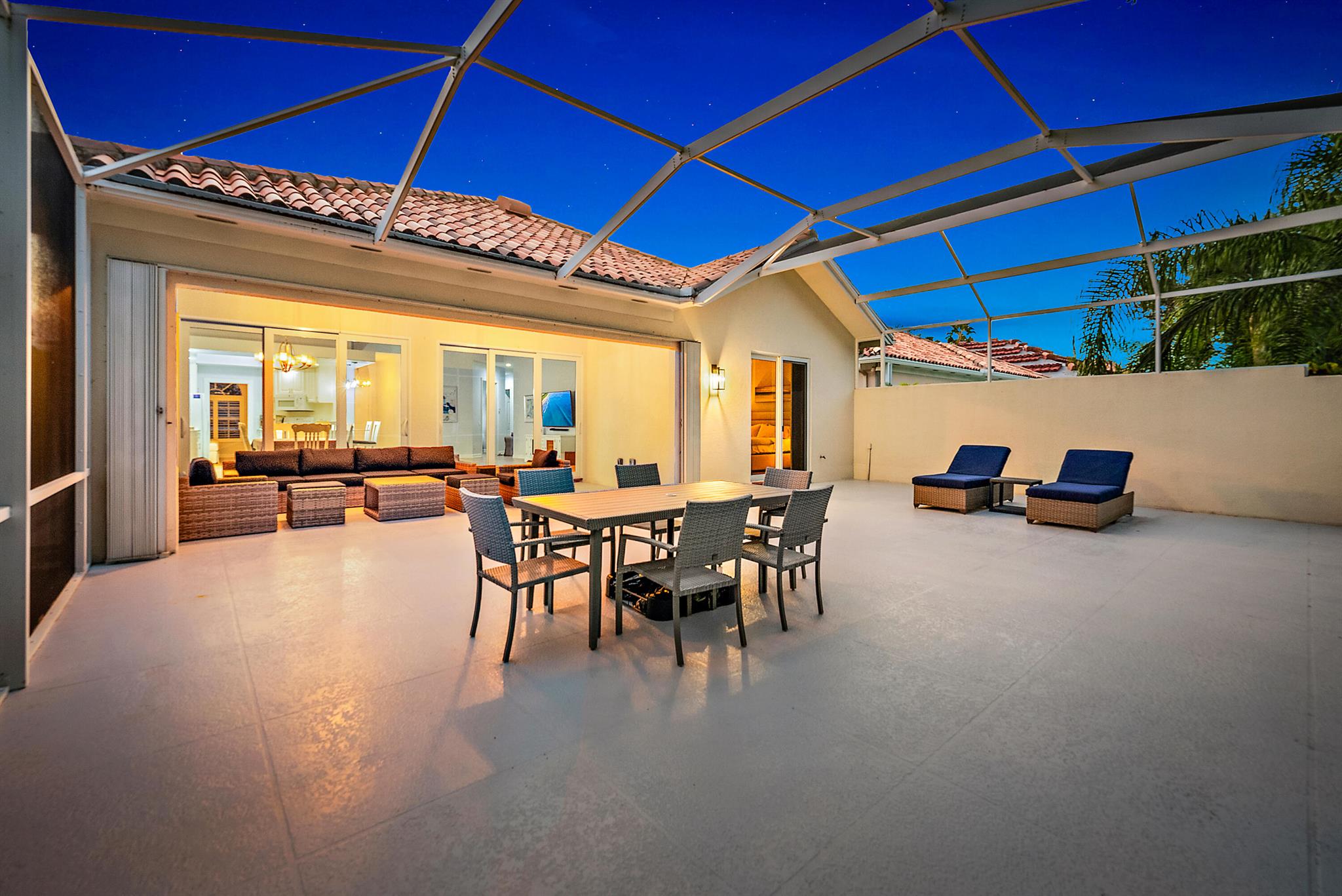 Charming 3BD/3BA Oakmont with bonus studio by Divosta Homes on a private waterfront lot near the cul-de-sac. Features include an oversized screened lanai, 12 ft vaulted ceilings, open kitchen with ample cabinets and counters, and a spacious primary suite with his-and-hers baths, Roman tub, walk-in shower, and generous closet space. Two guest rooms share a full bath. New hurricane impact windows! Comcast internet/cable included in HOA. RiverWalk offers resort-style living with 3 heated pools, 8 tennis courts, pickleball, fitness center, bocce, trails, playground, and on-site dining at ''Centanni'' Italian restaurant. Enjoy a library, salon, post office, and activities like yoga, aqua aerobics, and bridge--all with no high country club fees. Convenient to Turnpike, PBI Airport, downtown WPB!