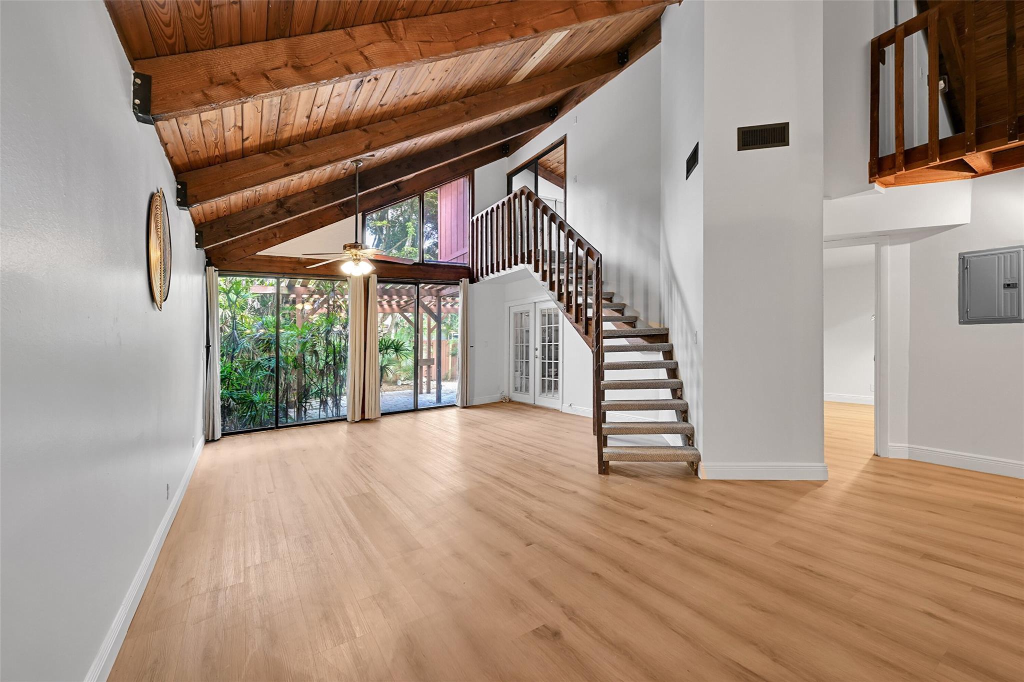 Charming and spacious 3/2, two-story townhome on a corner lot. Features many upgrades throughout, including kitchen and bathrooms, and a new roof. Very low HOA $100/m and prime location close to shopping, beaches, I-95 and Turnpike. Backyard area is private, fenced in and has room for a pool. Property also includes a large attached storage shed and an additional sunroom for your enjoyment.