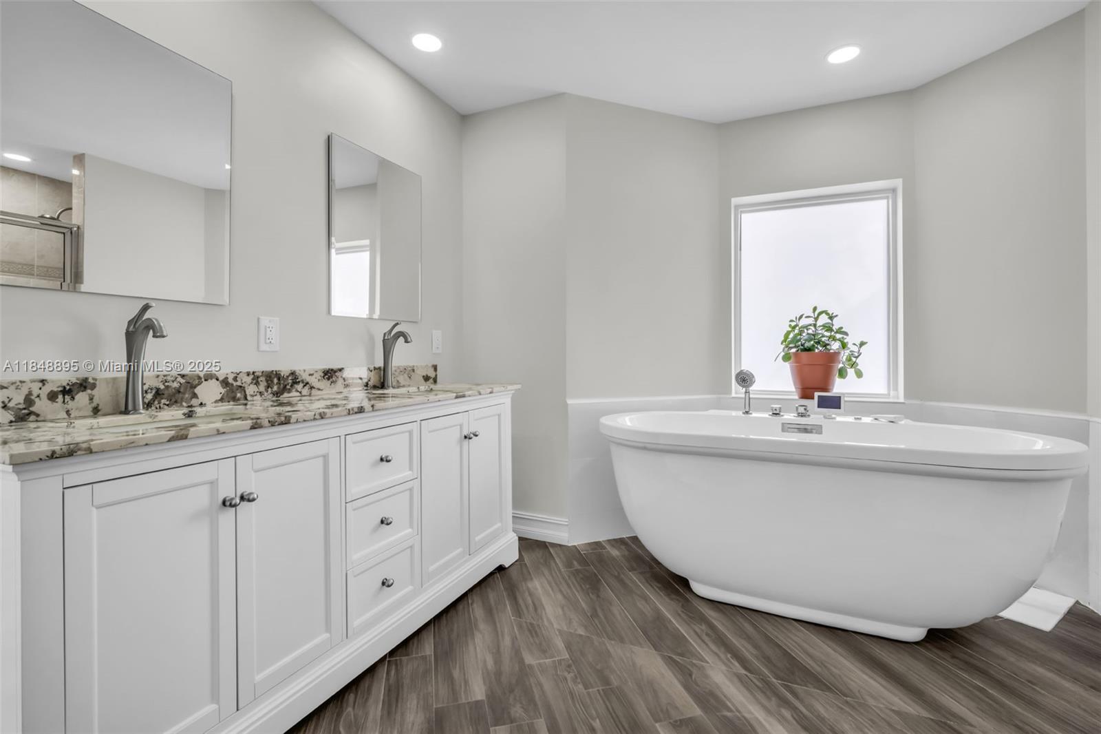 Move-in ready and absolutely stunning! This beautifully renovated 4BR/3.5BA home is located in the exclusive guard gated community of Aventura Lakes. Features include a fully renovated kitchen with stainless appliances, custom cabinetry and marble countertops, renovated bathrooms and finishes throughout. Additional highlights include new impact glass, porcelain wood floors upstairs, marble floors downstairs, custom blinds, a new tankless water heater, upgraded electrical panel, a total water filtration system, water softener, and a 5-ton A/C installed in 2022. Enjoy resort-style amenities including two pools, fitness center, clubhouse, and playground. Walk to schools, Aventura Mall, parks, dining, and houses of worship while enjoying the privacy and security of this pristine community.
