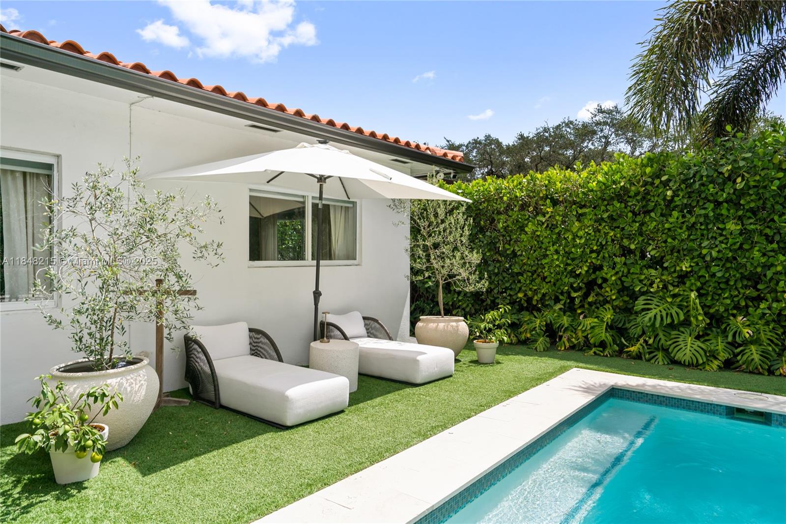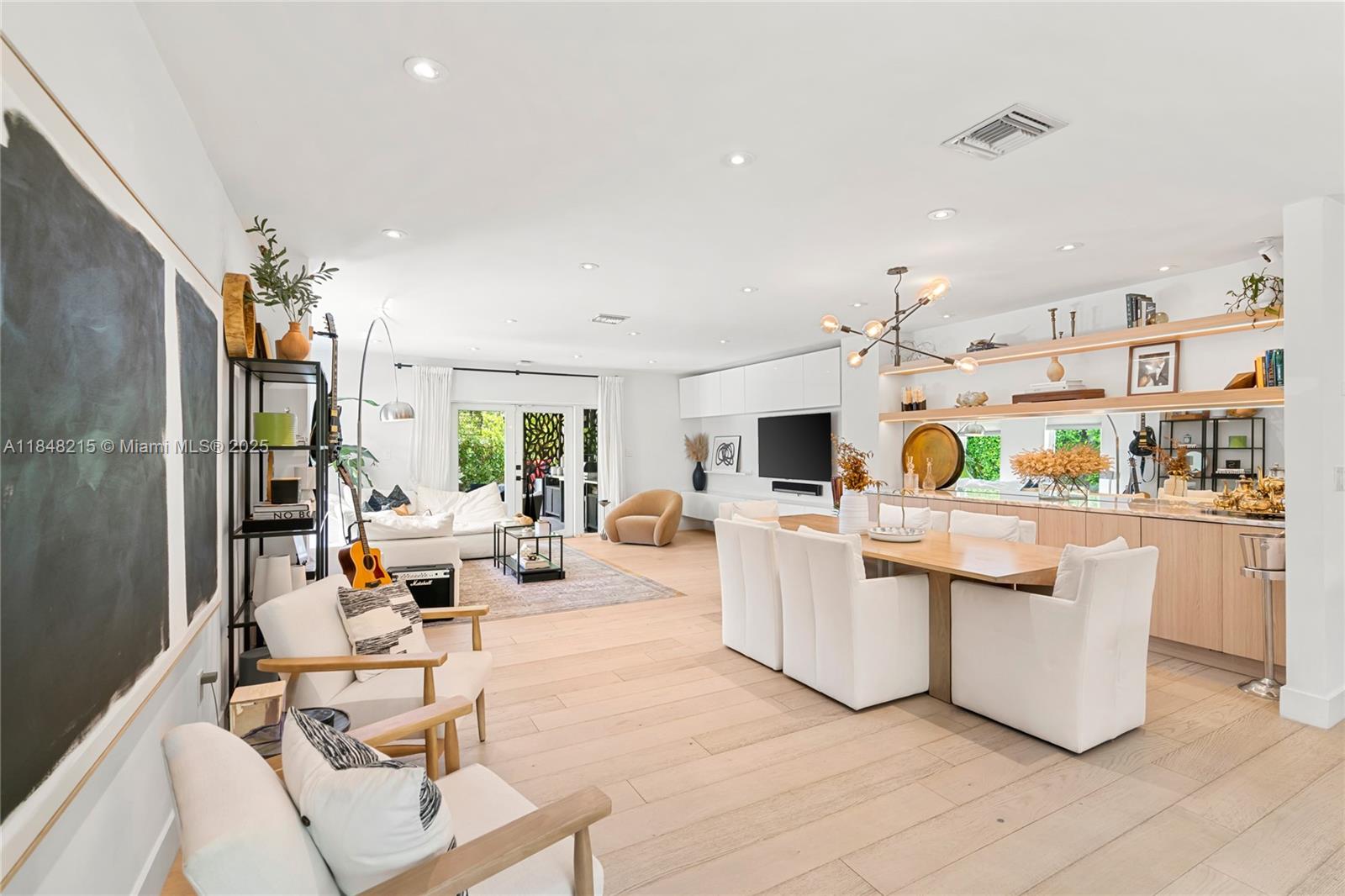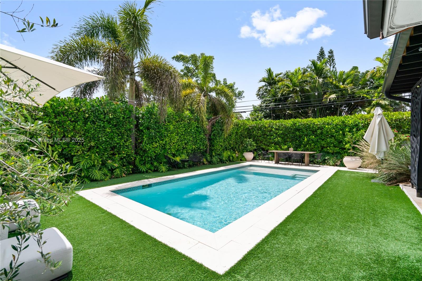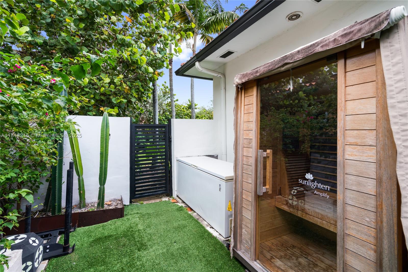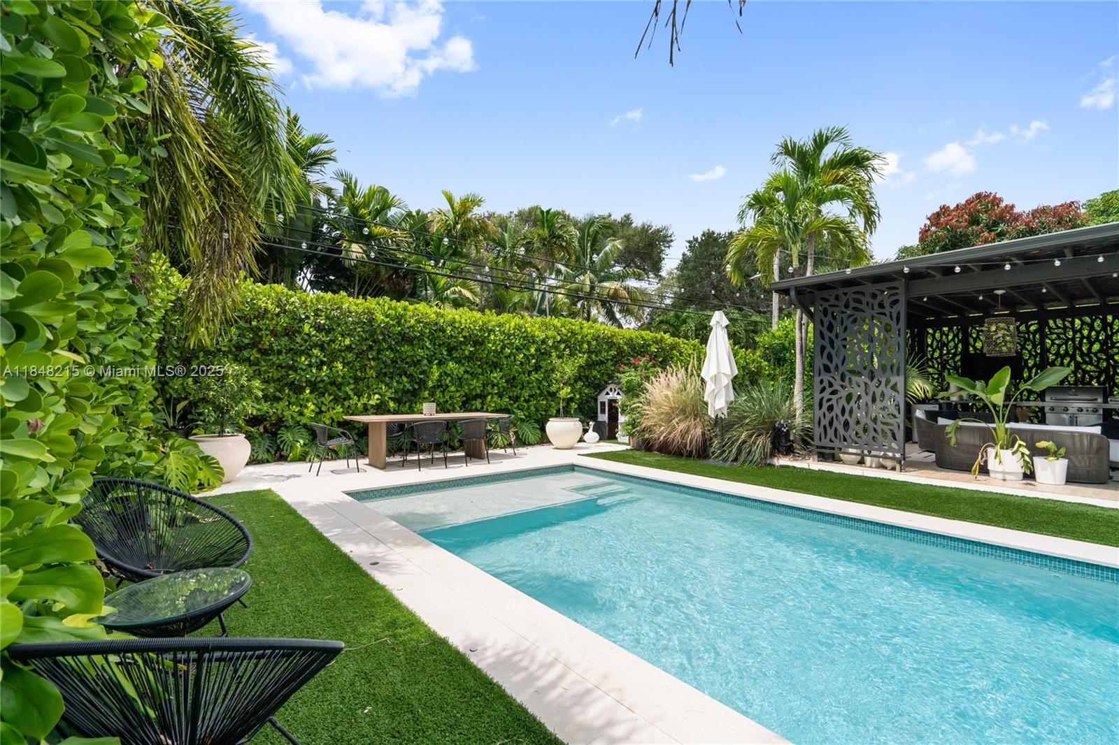Nestled in the highly sought-after Miami Shores neighborhood, this stunning 3Bed/ 2bath contemporary residence seamlessly blends luxury, comfort, & modern design. From the moment you arrive, the home impresses with its lush landscaping, secure gated entry, & exceptional curb appeal. Step inside to discover a light-filled open layout adorned with solid custom doors and exquisite white oak floors throughout. The kitchen is complete with a premium gas range, state-of-the-art appliances, and sleek cabinetry that will inspire culinary creativity. This property boasts an inviting pool, a fully-equipped gym, sauna, cold plunge. An outdoor shower adds to the spa-like experience, while the professionally hardwired backyard sound system creates the perfect ambiance for alfresco gatherings.