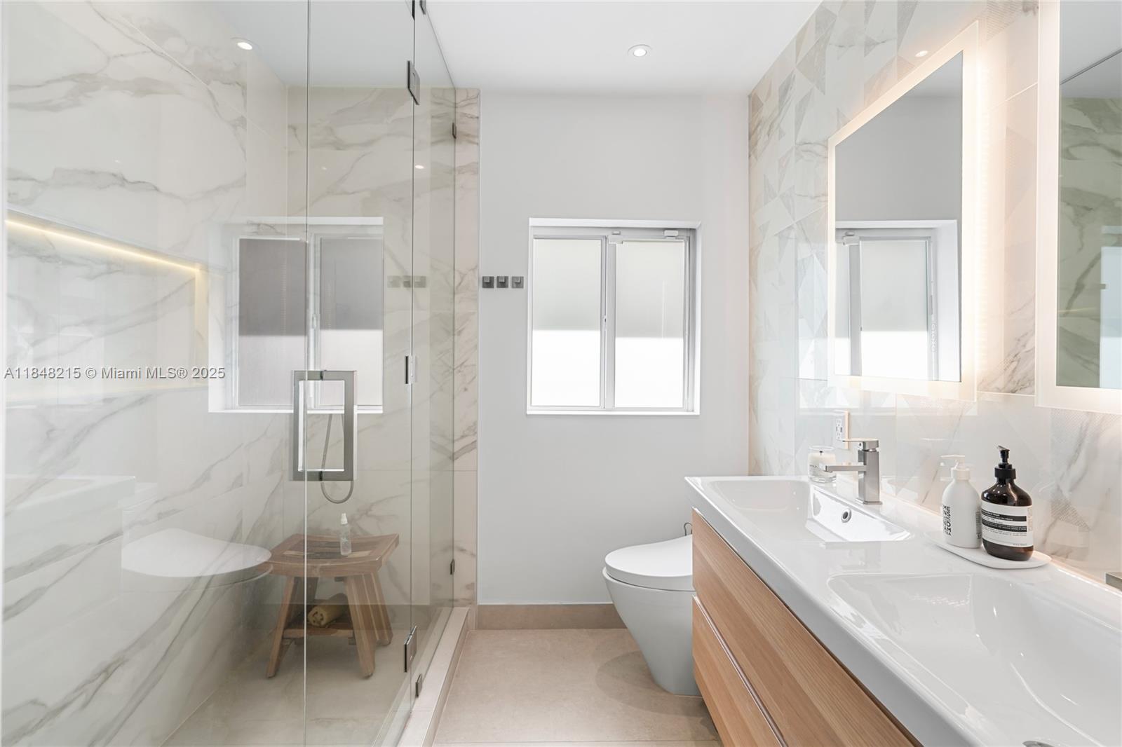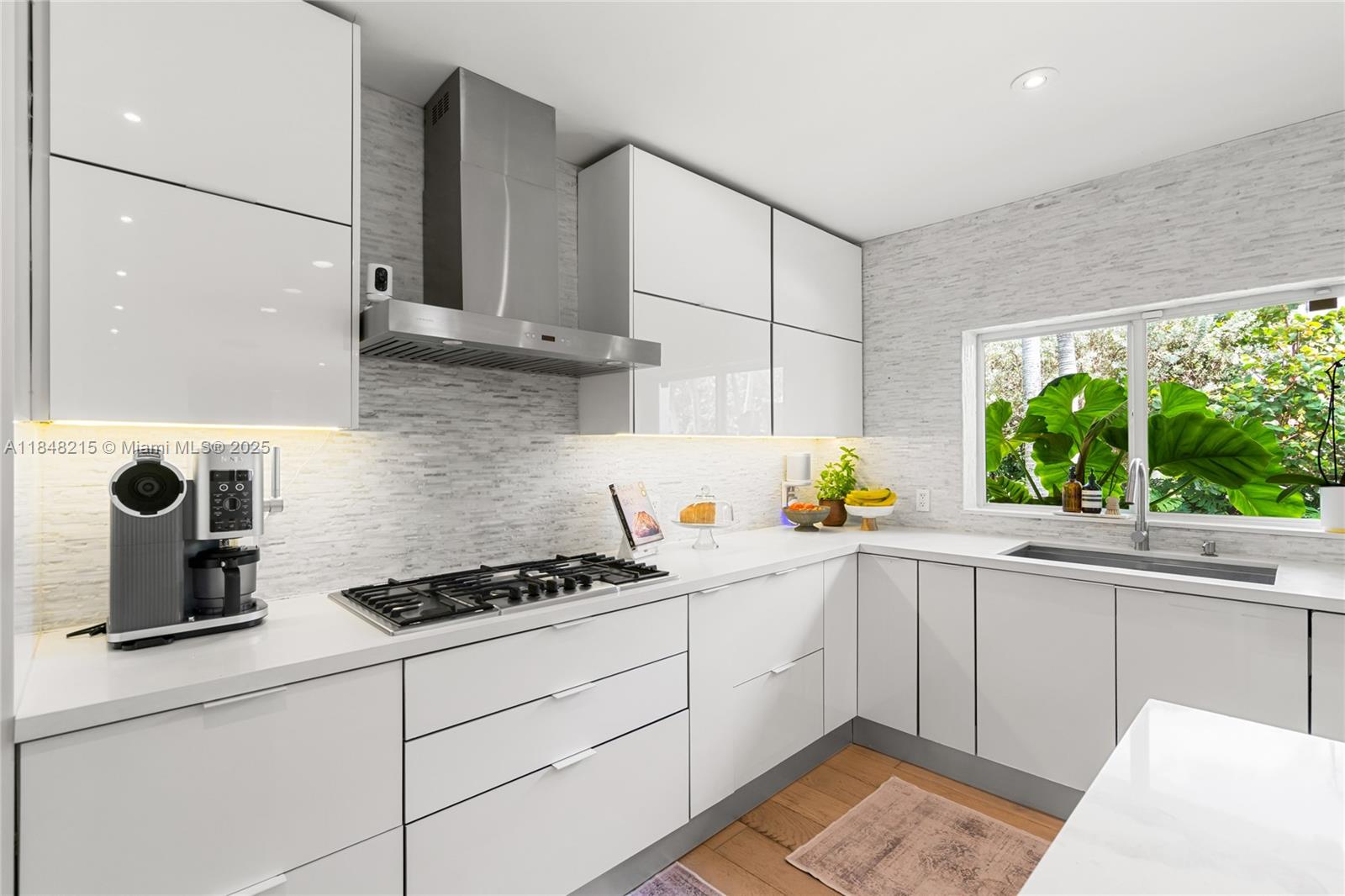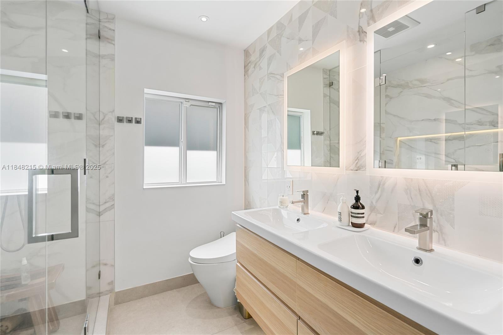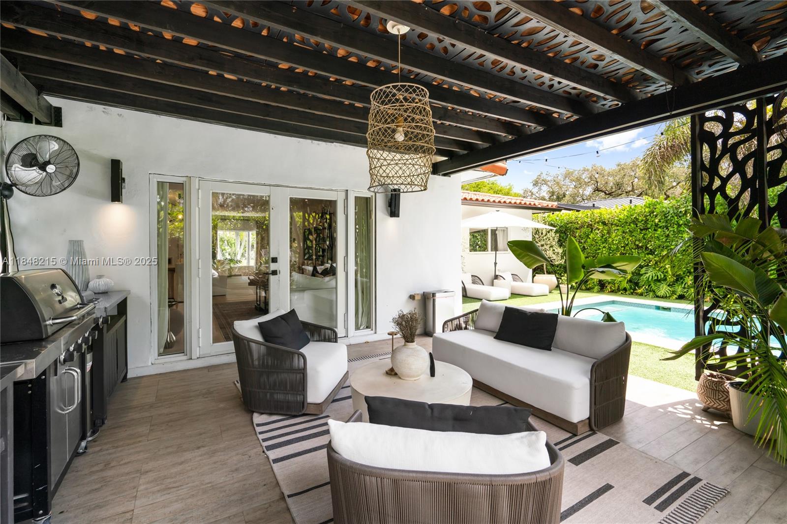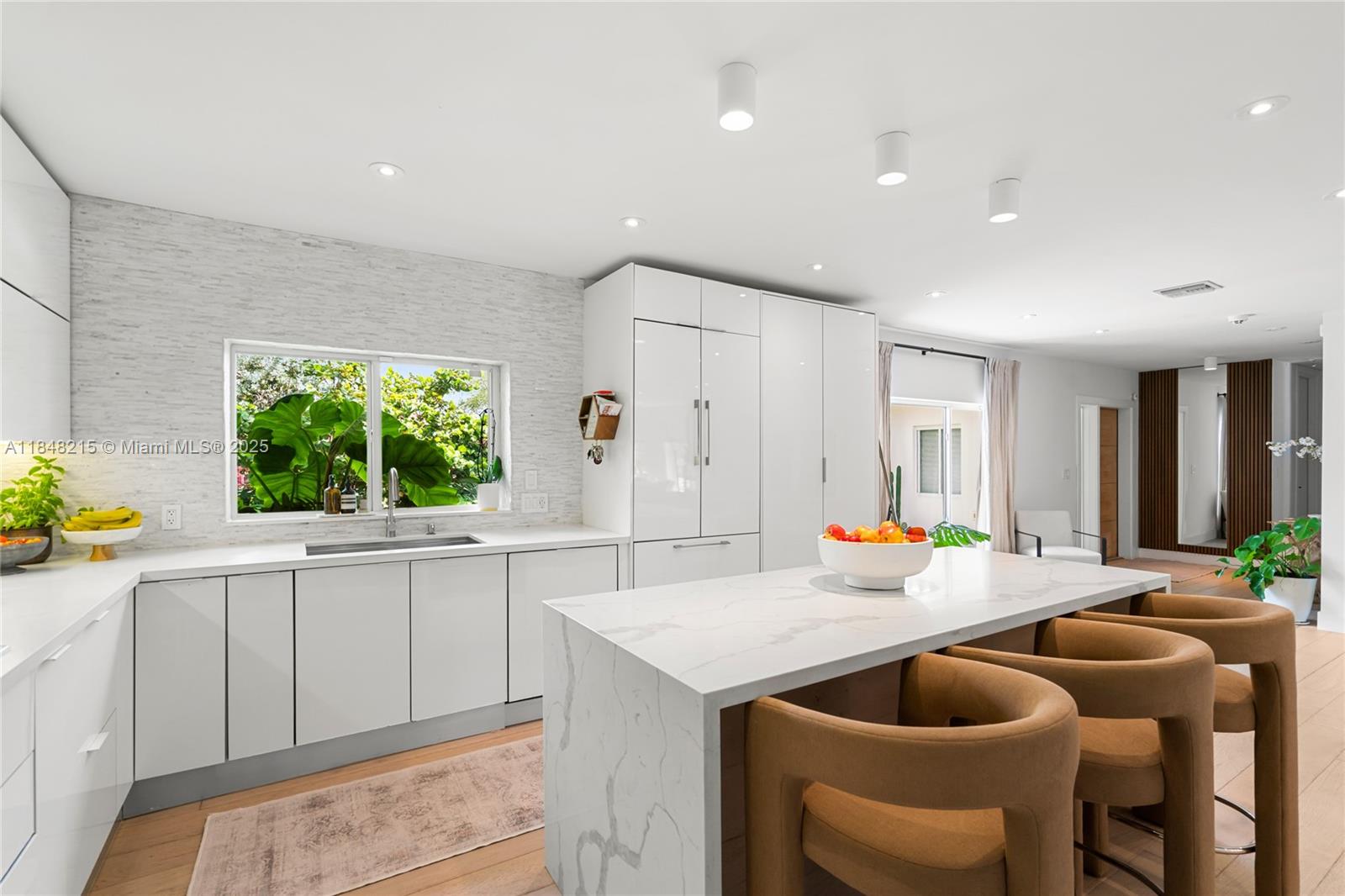Nestled in the highly sought-after Miami Shores neighborhood, this stunning 3Bed/ 2bath contemporary residence seamlessly blends luxury, comfort, & modern design. From the moment you arrive, the home impresses with its lush landscaping, secure gated entry, & exceptional curb appeal. Step inside to discover a light-filled open layout adorned with solid custom doors and exquisite white oak floors throughout. The kitchen is complete with a premium gas range, state-of-the-art appliances, and sleek cabinetry that will inspire culinary creativity. This property boasts an inviting pool, a fully-equipped gym, sauna, cold plunge. An outdoor shower adds to the spa-like experience, while the professionally hardwired backyard sound system creates the perfect ambiance for alfresco gatherings.