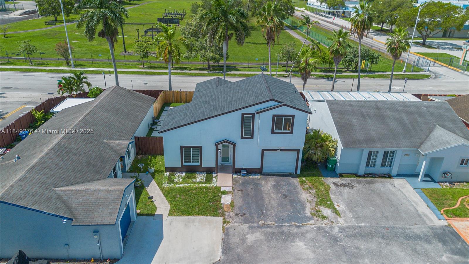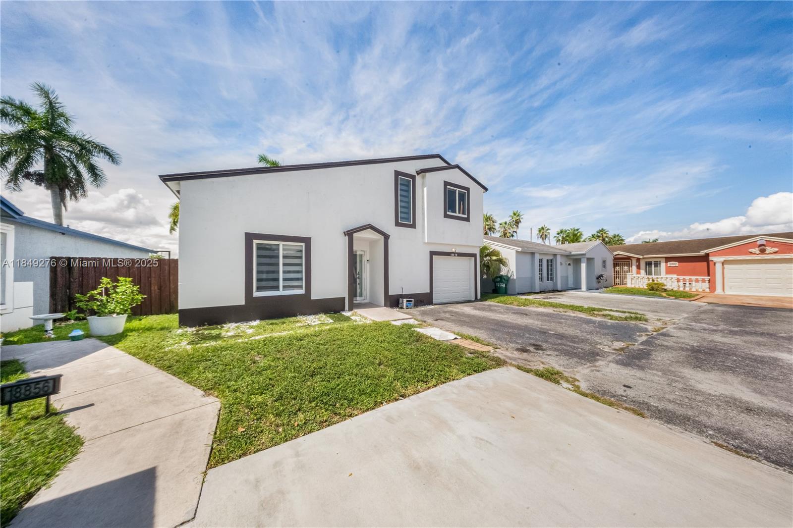 Spacious and beautifully maintained single-family home featuring three bedrooms and 2.5 bathrooms. Enjoy tile flooring throughout, an updated kitchen, and a renovated main bathroom. The primary bedroom is conveniently located on the first floor with a private ensuite, while upstairs offers two bedrooms connected by a Jack-and-Jill bathroom. The garage has been converted into an additional room with a private entrance, perfect for guests, an office, or in-laws. Impact windows provide peace of mind. Step outside to a lovely terrace and a fully cemented, fenced backyard ideal for entertaining and low-maintenance living.