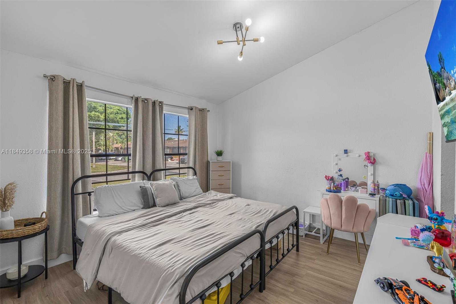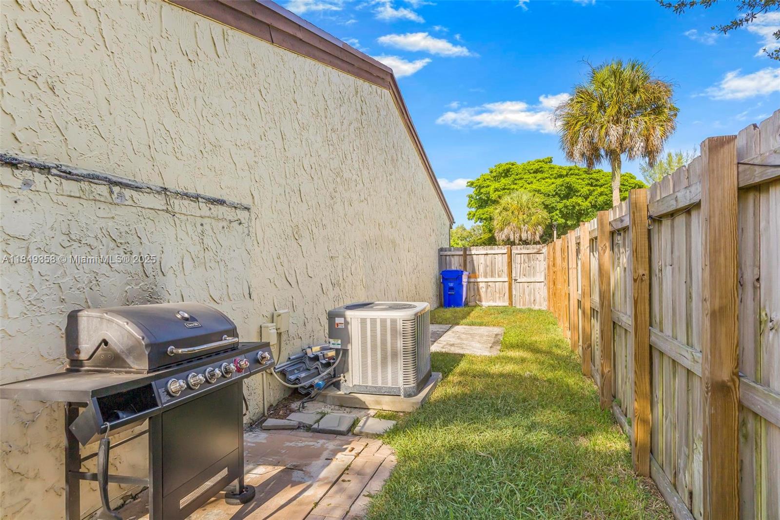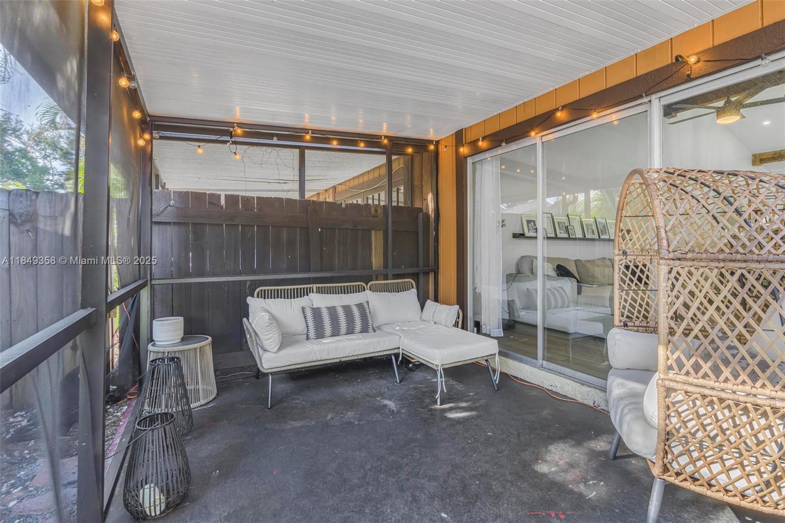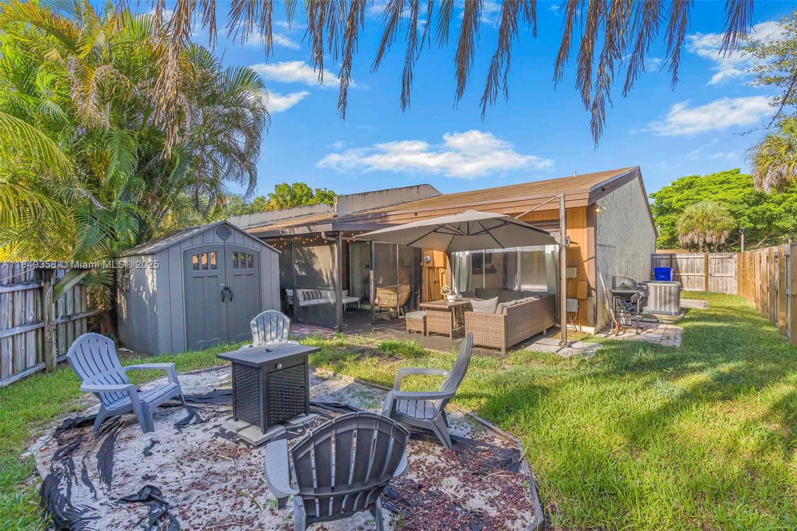 Exquisite 2-bedroom, 2-bath home in the highly desirable Cedarwoods at Pembroke Lakes. This stunning corner unit boasts soaring vaulted ceilings with exposed wood beams, a modern open-concept layout, and warm natural light throughout. The sleek kitchen features white cabinetry, quartz countertops, stainless steel appliances, and a large island that flows seamlessly into the spacious living and dining areas. The primary bedroom includes a walk-in closet and a beautifully updated en-suite bath. Enjoy a private fenced yard with a screened patio, outdoor seating areas, and lush landscaping. Centrally located near shopping, dining, CB Smith Park, top-rated schools, and major highways, this turn-key home offers the perfect balance of comfort, design, and location.