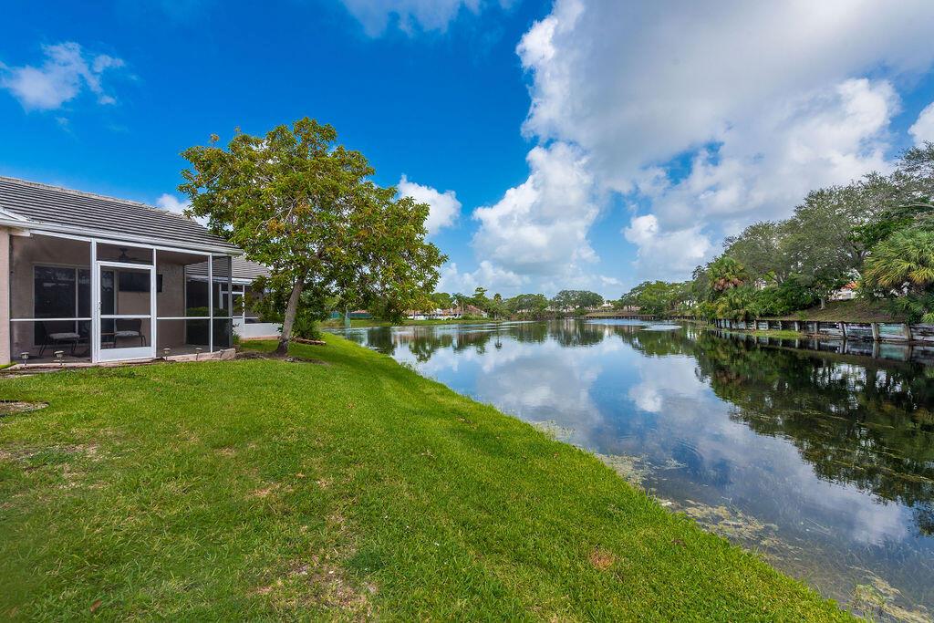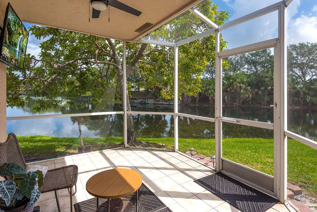 Welcome to your new home! The perfect lakefront Villa in the resort style community of River Bridge. It's the home you've been waiting for. This spacious 2 bedroom, 2 bathroom home features a great layout with an eat in kitchen & combined dining/family room space, offering breathtaking lake views and a serene atmosphere from the covered and screen patio, perfect for relaxing evenings. Recent updates, including a newer roof 2022, updated kitchen with stainless appliances, quartz countertops, hot water heater, updated in 2022, freshly painted in 2024 inside and out, tile flooring throughout. Enjoy the many of the amenities River Bridge has to offer. Tennis courts, clubhouse, pool, fitness room and more.