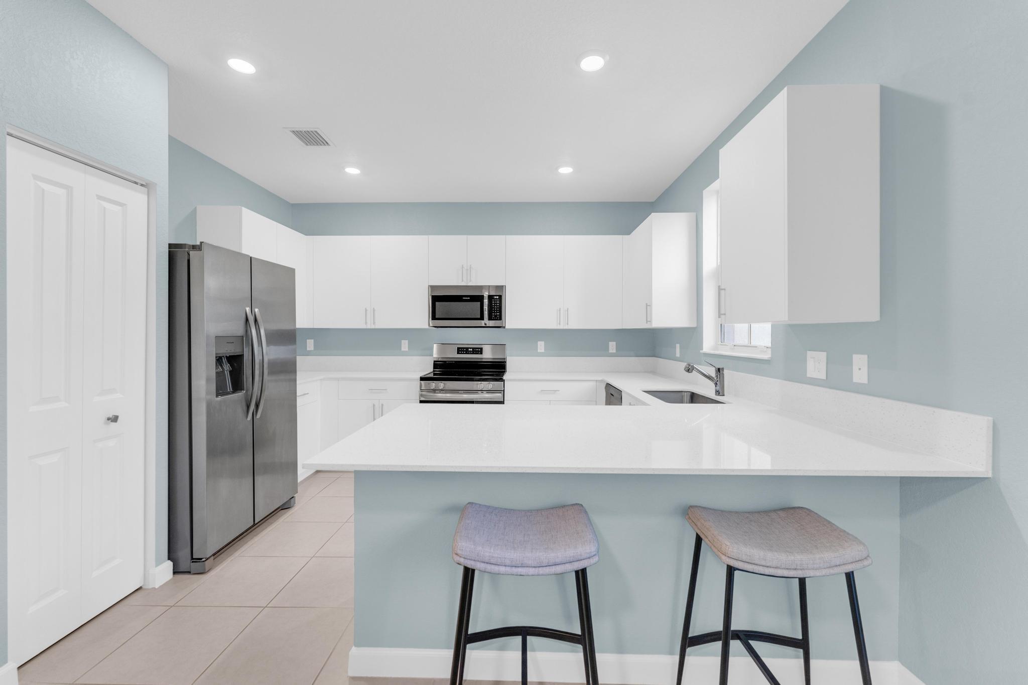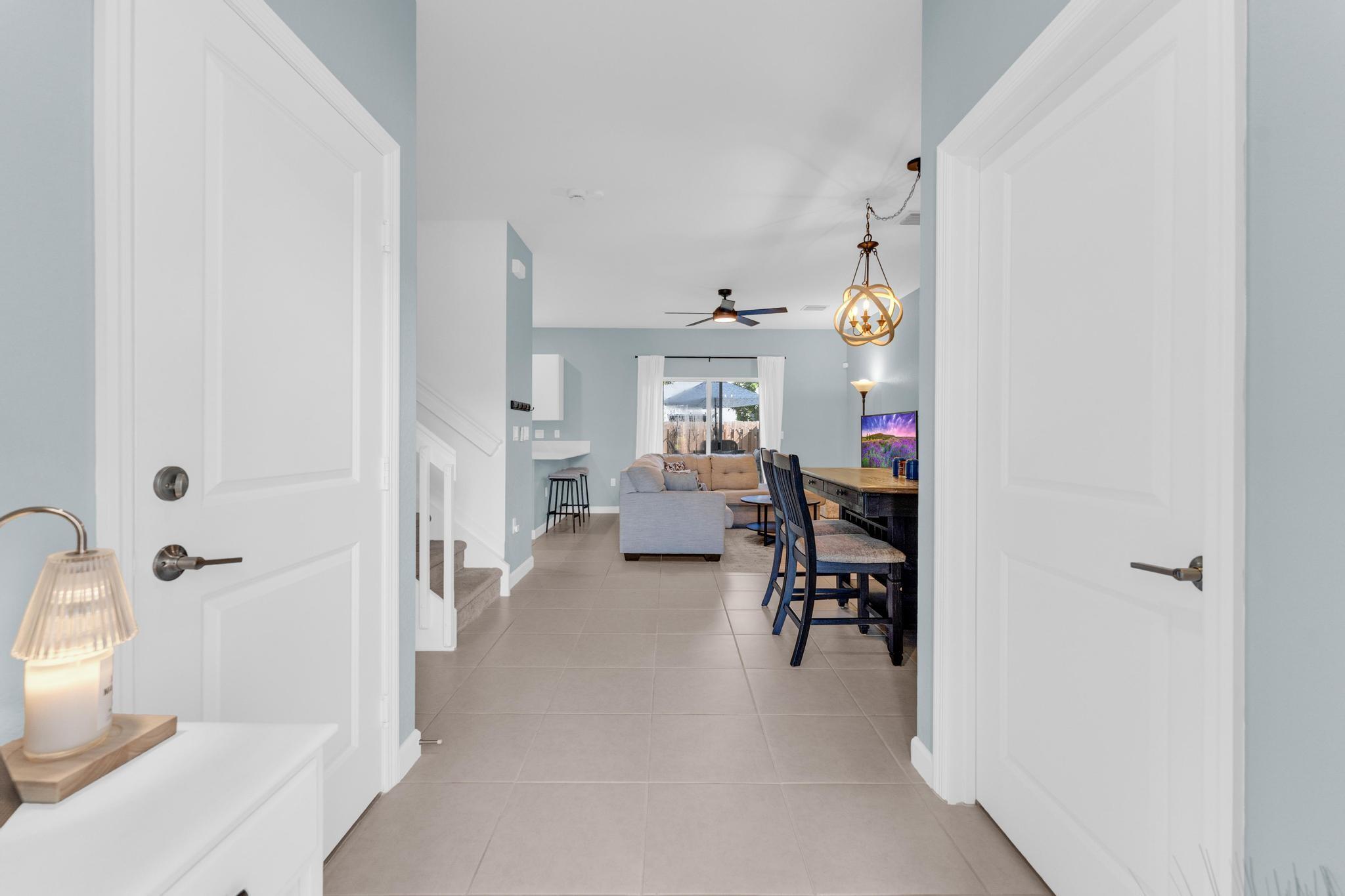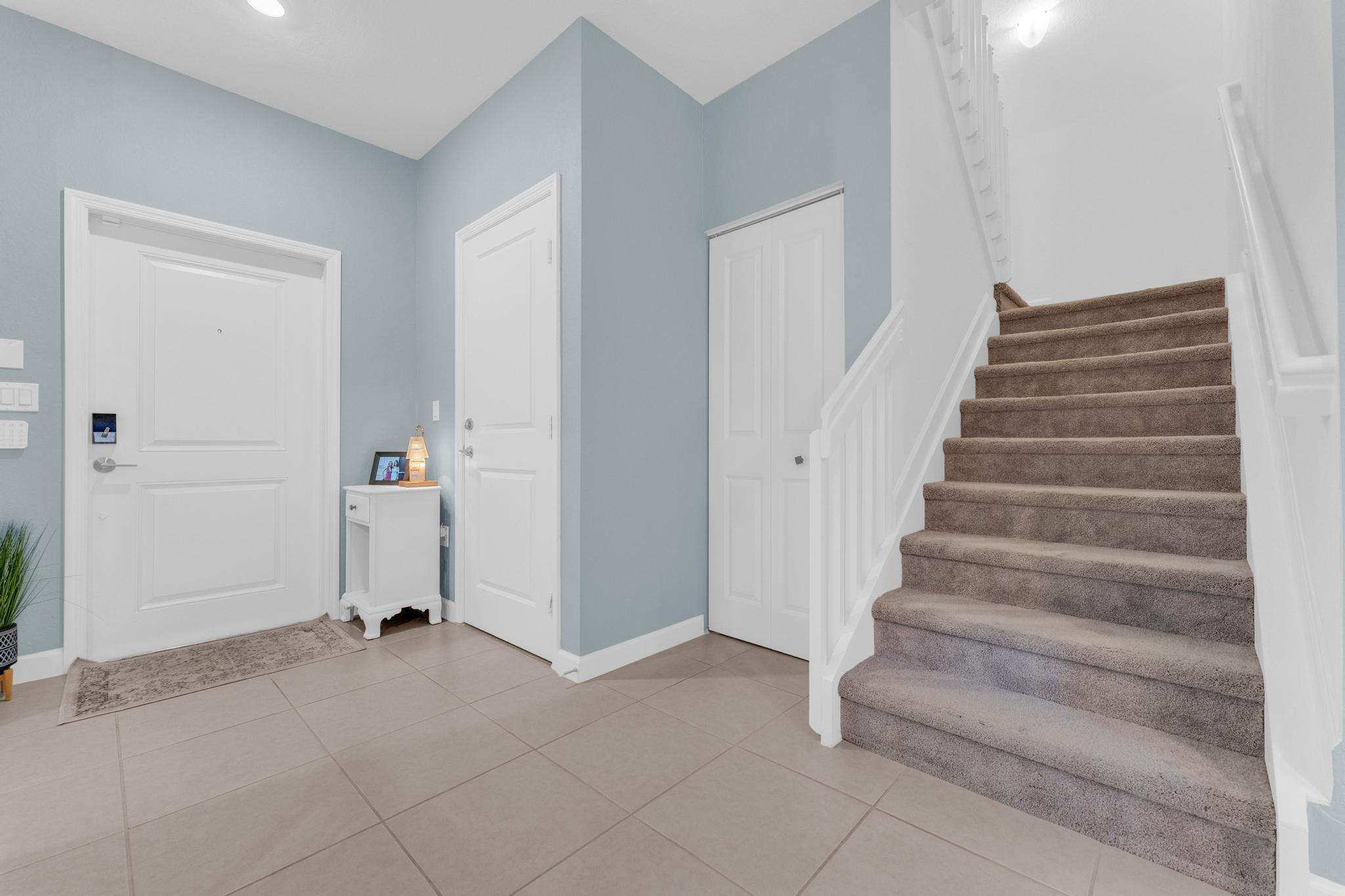 Welcome to gated newer construction Sunset Trails! Neutral tile floors on the main level. Designer powder room upgraded to accommodate your guests! Modern kitchen w white cabinetry, quartz counters, stainless steel appliances, breakfast bar & a pantry! Motivated sellers made lots of improvements from the basic builder package. Light fixtures, fans, bathroom fixtures/hardware, etc. Primary bedroom features walk in closet with custom cabinetry to allow full use of this great space! Full size washer/dryer! Private fenced in backyard upgraded w pavers! Community features pool, spa, playground, & gated entry. Enjoy peace of mind of newer construction! All impact windows/doors. Lower insurance premium! Low monthly HOA! Virtual tour link is a full video tour!