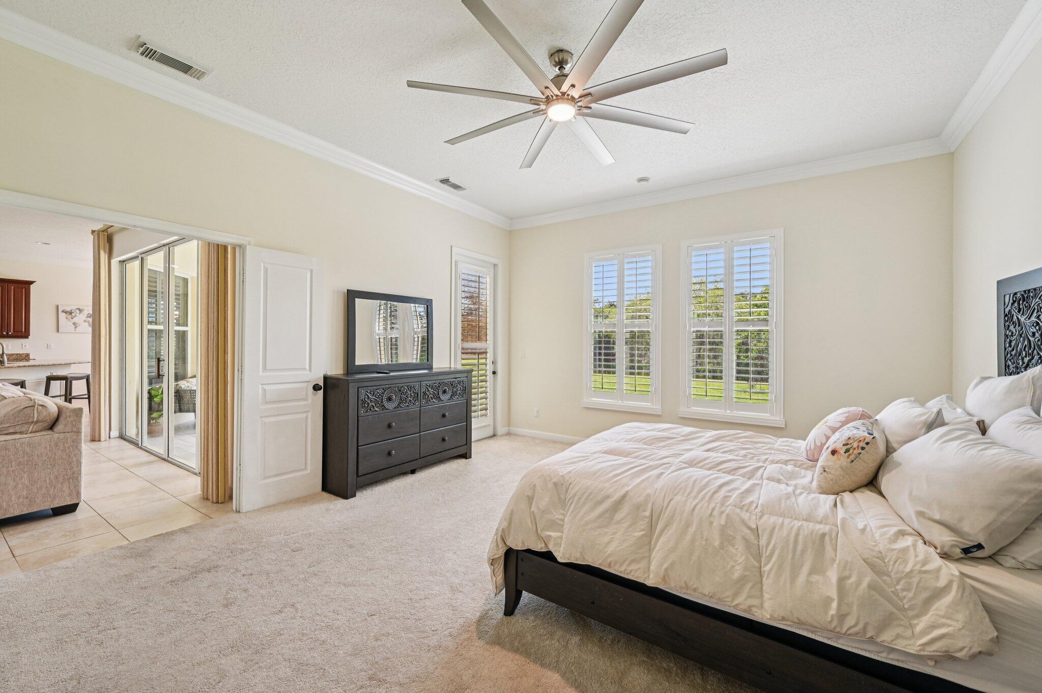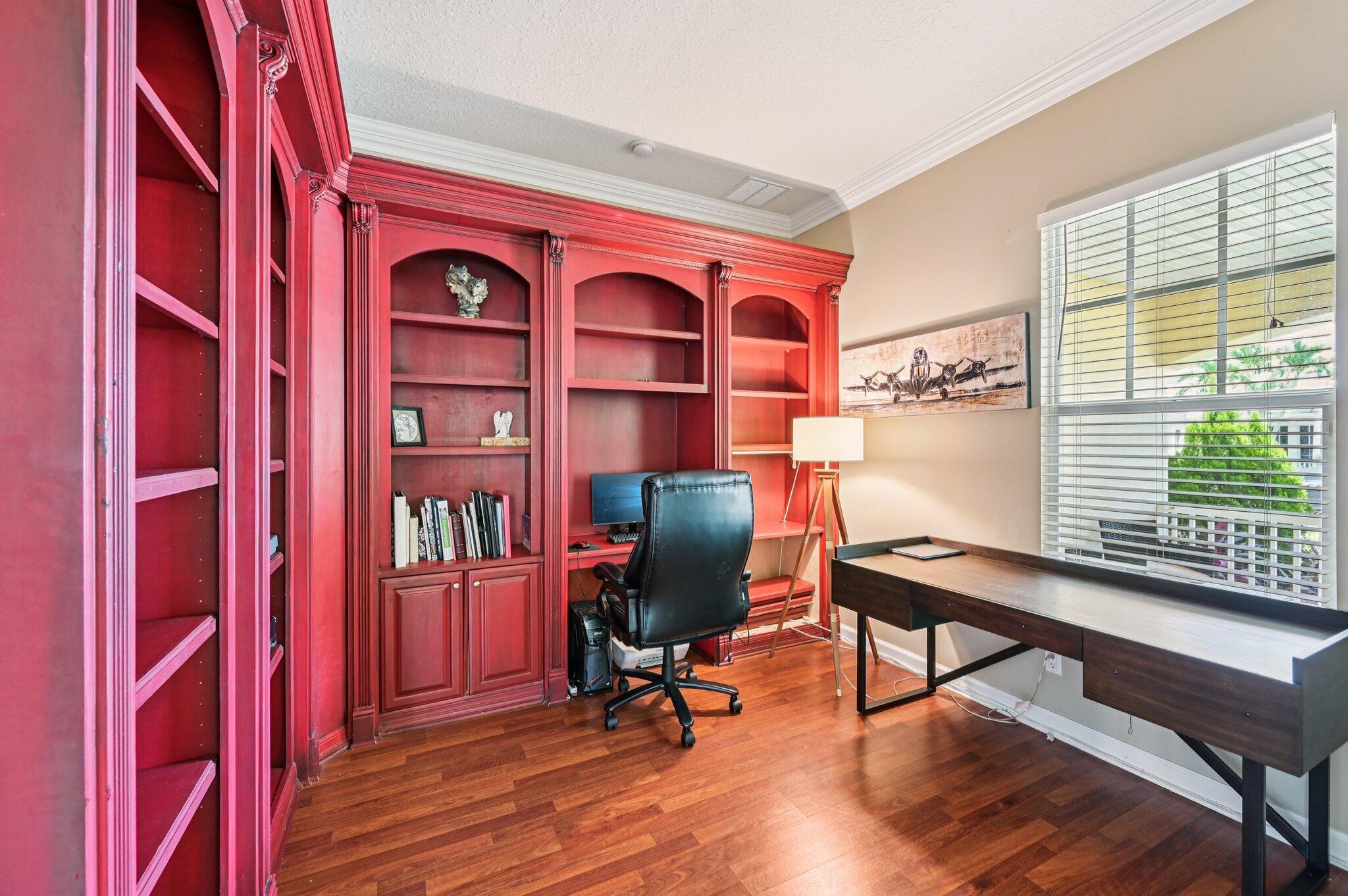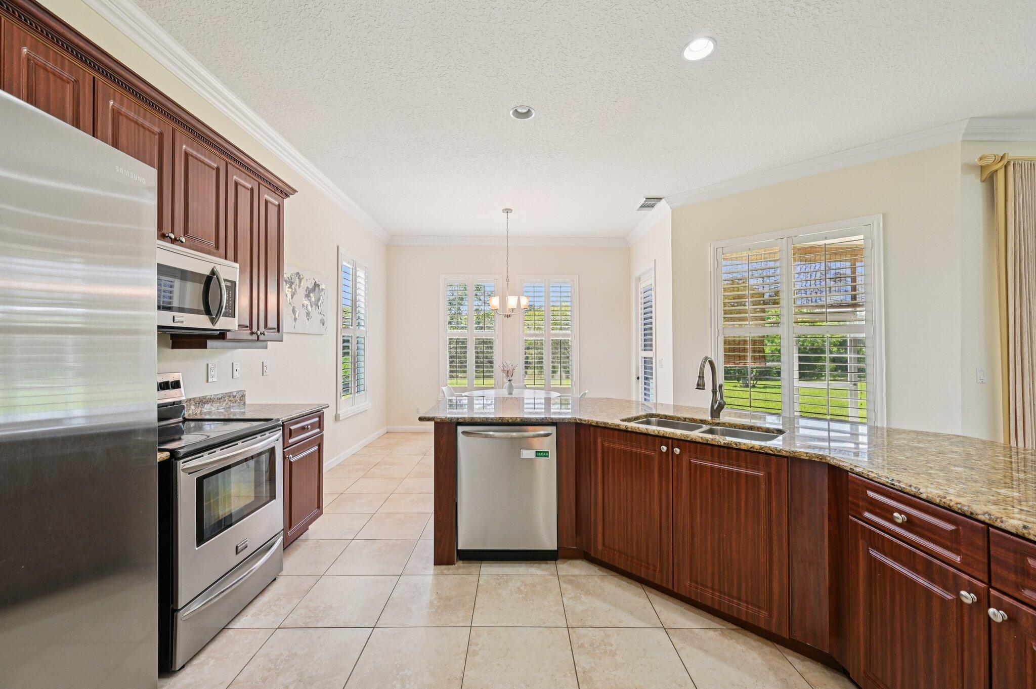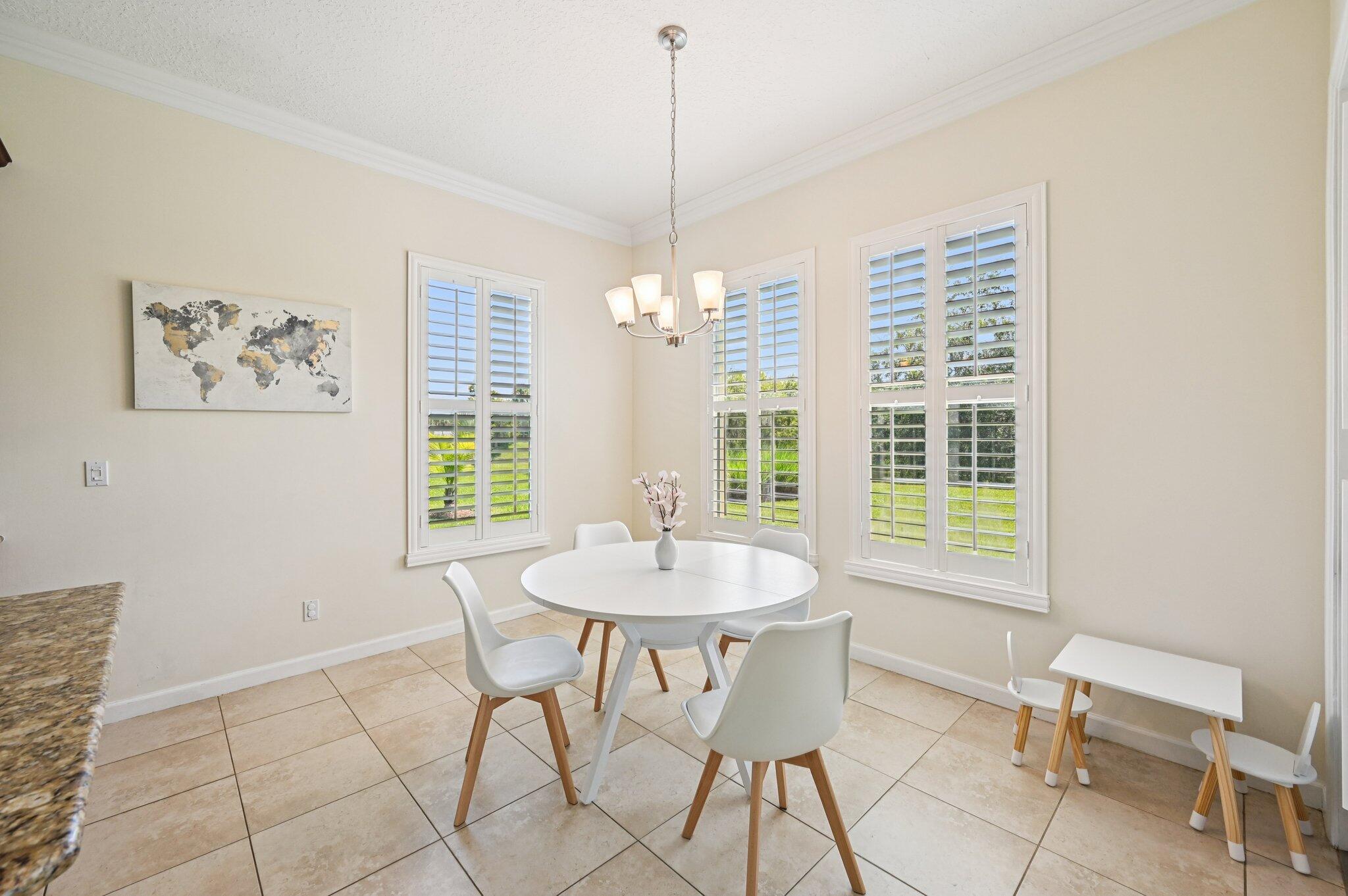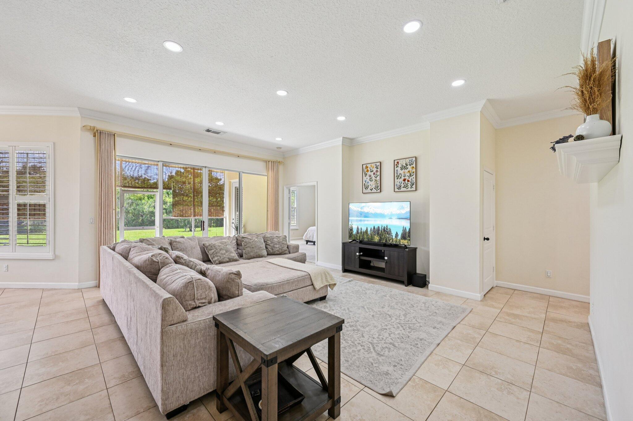 Charming Curb Appeal with Spacious Interior & Resort-Style Living! This inviting home captures attention with its eye-catching curb appeal, featuring three architectural dormers and a spacious front porch that sets the tone for relaxed Florida living. Just inside, you'll be drawn in by the spacious open floor plan, featuring a large family room and tile flooring throughout the main living areas. A custom-built bar area adds the perfect touch for entertaining guests. The dedicated office includes built-in shelving for ample storage, and the formal dining room impresses with coved ceilings and detailed wainscoting. The expansive kitchen offers granite countertops, stainless steel appliances, a large pantry, center island seating, and a breakfast area -