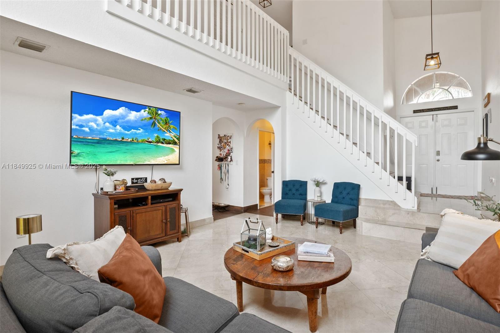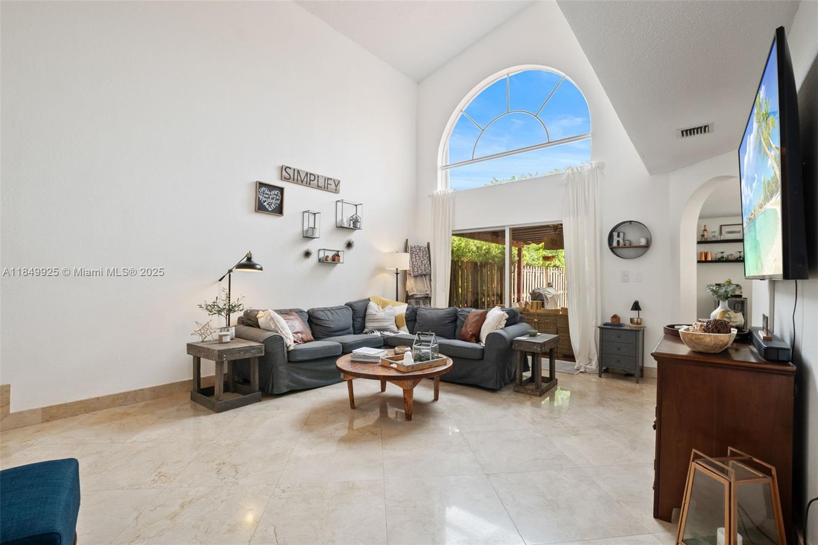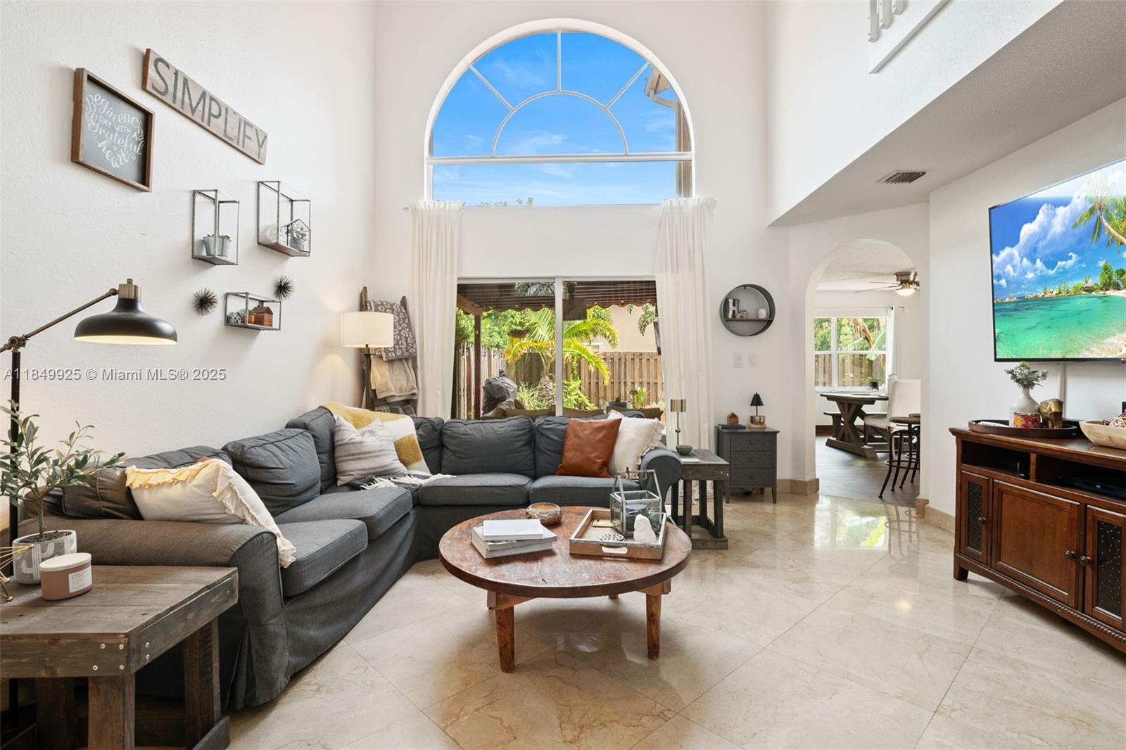 MULTIPLE OFFER SITUATION!! Beautifully updated 4 bedroom, 2 1/2 bath, 2 car garage Single Family Home located in the very desirable & gated community of Doral Landings East. Grand foyer & spacious living area featuring cathedral ceilings, porcelain tile & loads of natural light. Large open-concept kitchen w/ SS app, granite counters & plenty of room for entertaining. Office/den/5th bedroom. New Luxury Vinyl Plank floors throughout the upstairs. Impressive Master Suite w/fully remodeled en-suite bathroom, large shower, soaking tub & walk-in closets. Accordion shutters. Large backyard w/covered patio & lush green space for family gatherings/BBQ. Room for a pool. Peaceful & Gated community, 24/7 security, private clubhouse & pool. A+ Schools, Golf, Restaurants, Shopping, Parks, & more…