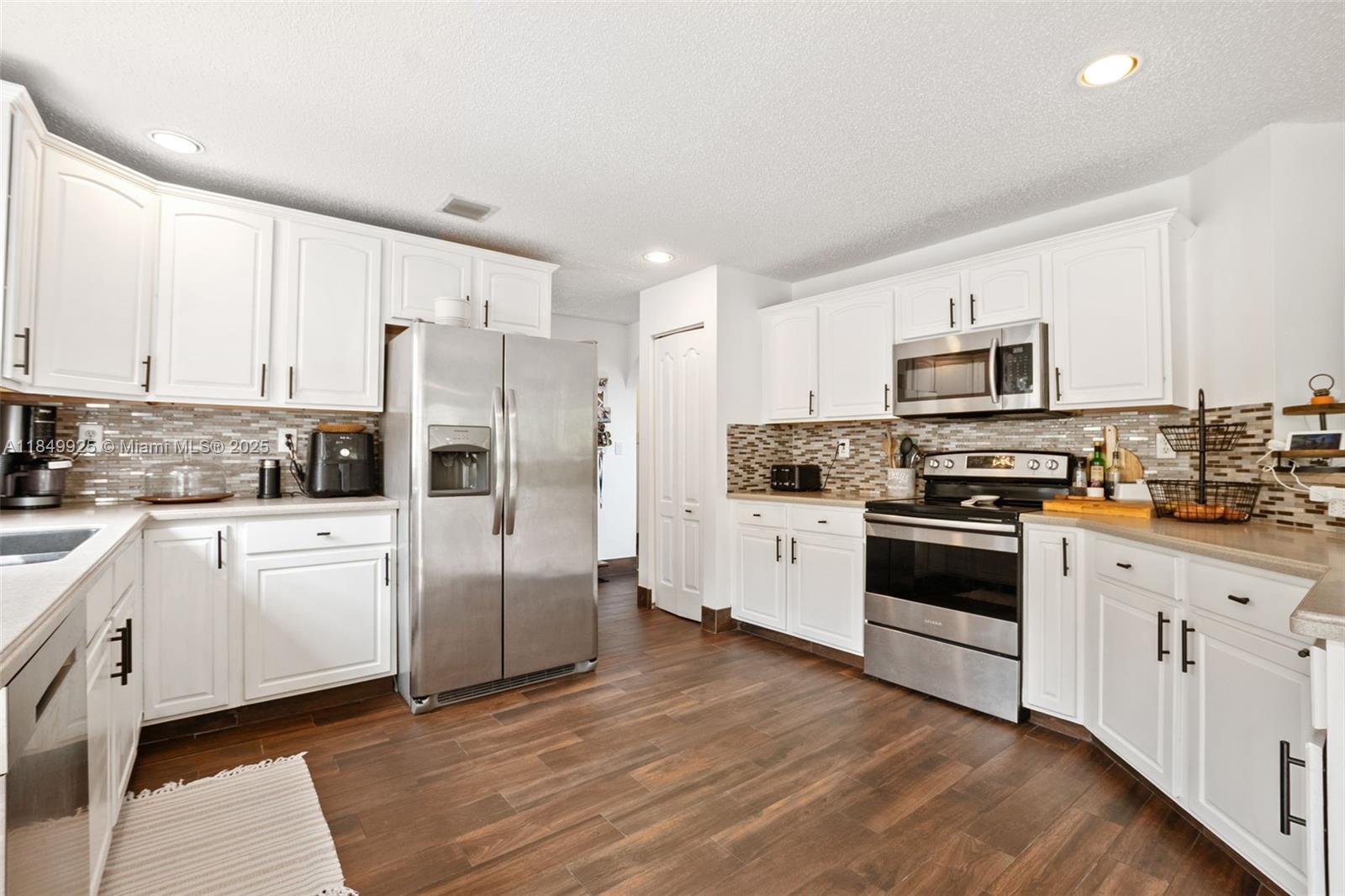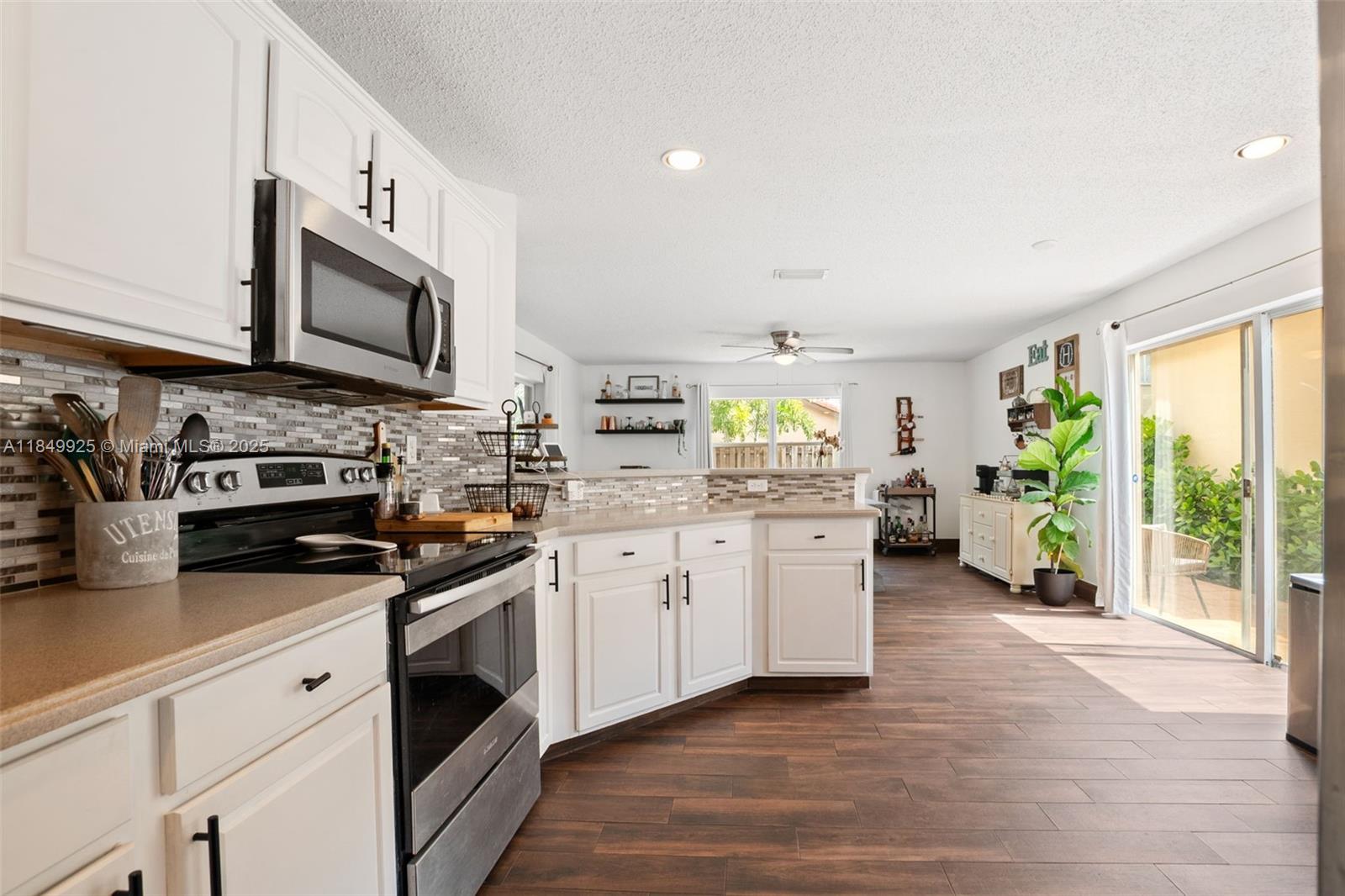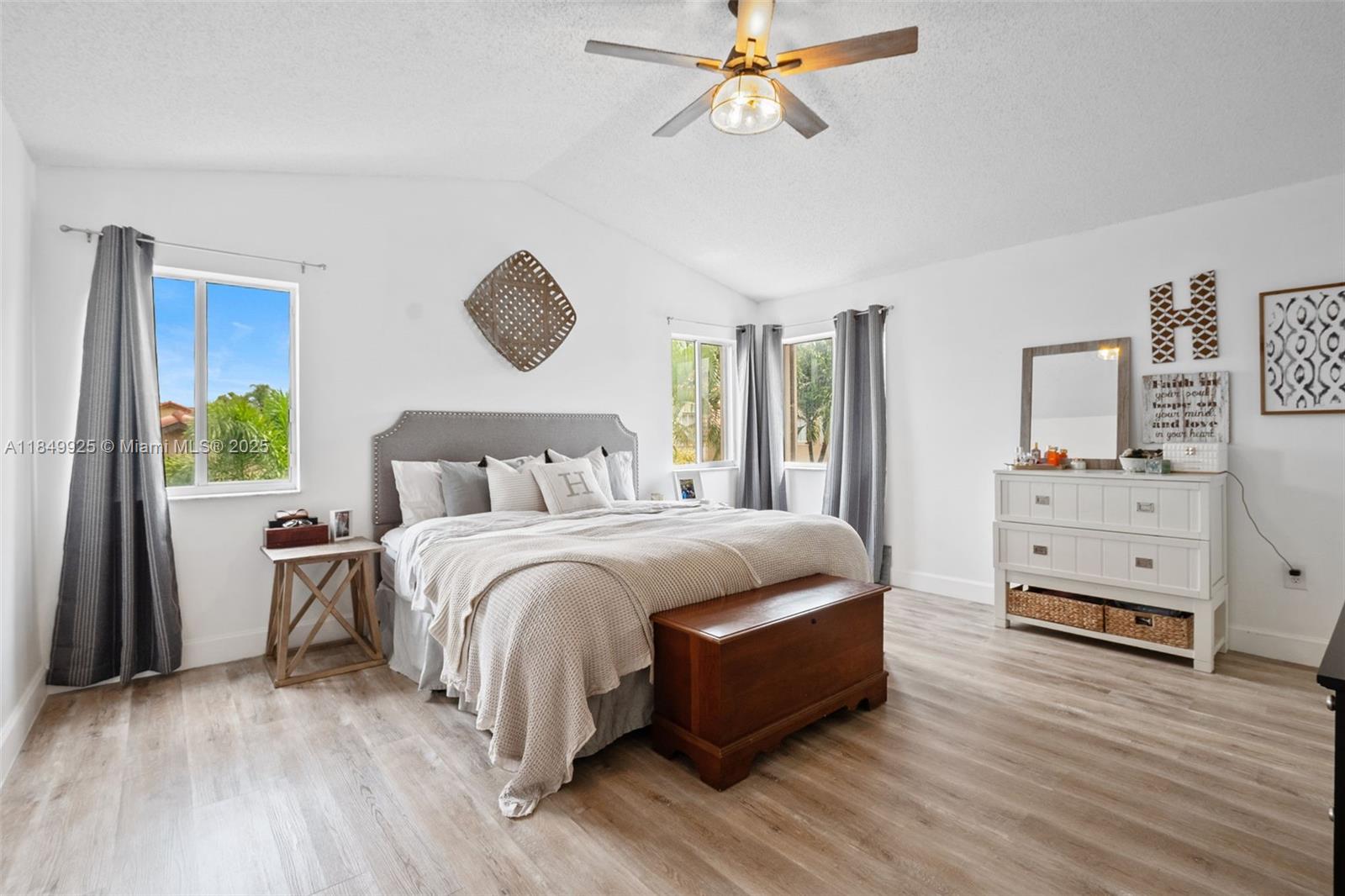 MULTIPLE OFFER SITUATION!! Beautifully updated 4 bedroom, 2 1/2 bath, 2 car garage Single Family Home located in the very desirable & gated community of Doral Landings East. Grand foyer & spacious living area featuring cathedral ceilings, porcelain tile & loads of natural light. Large open-concept kitchen w/ SS app, granite counters & plenty of room for entertaining. Office/den/5th bedroom. New Luxury Vinyl Plank floors throughout the upstairs. Impressive Master Suite w/fully remodeled en-suite bathroom, large shower, soaking tub & walk-in closets. Accordion shutters. Large backyard w/covered patio & lush green space for family gatherings/BBQ. Room for a pool. Peaceful & Gated community, 24/7 security, private clubhouse & pool. A+ Schools, Golf, Restaurants, Shopping, Parks, & more…
