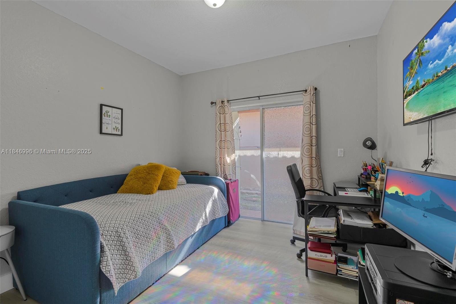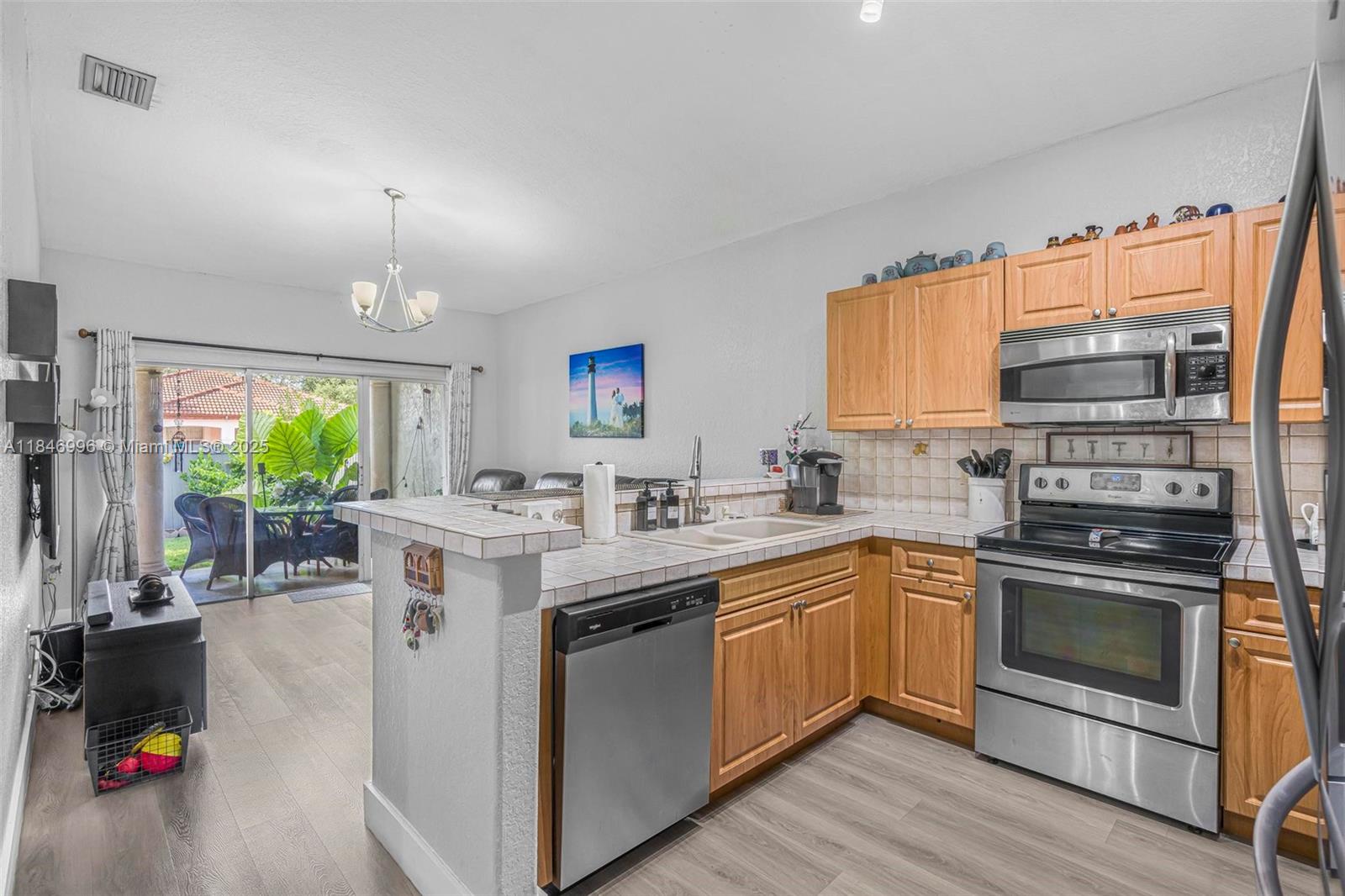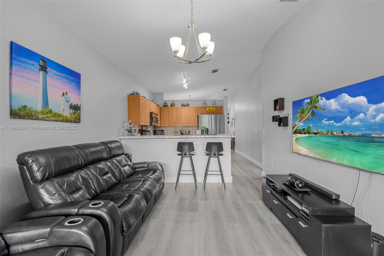 Spacious and well-maintained 4-bedroom, 2-bath single-family home featuring vaulted ceilings, energy-saving solar panels, and laminate flooring throughout. Enjoy a bright open layout, a 1-car garage, and a large covered terrace with beautiful wood ceilings and crown molding—perfect for outdoor living. The backyard has ample space for a pool and includes an exterior storage closet. Centrally located near top-rated schools, shopping, dining, and major highways for an easy commute. No HOA, giving you flexibility and freedom. This home is move-in ready with great curb appeal, nestled in a desirable, quiet neighborhood. A perfect blend of comfort, convenience, and value—ideal for families or anyone looking to enjoy the South Florida lifestyle.