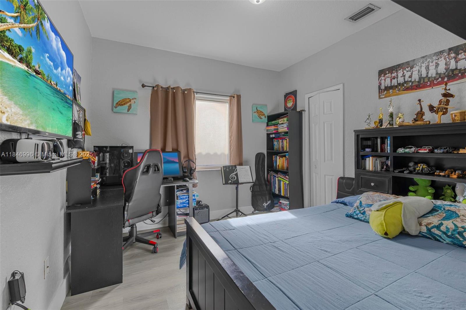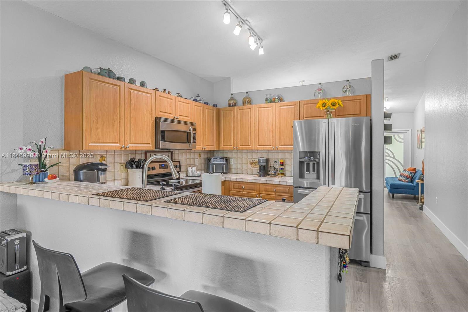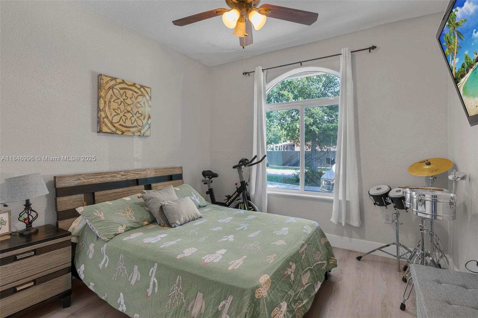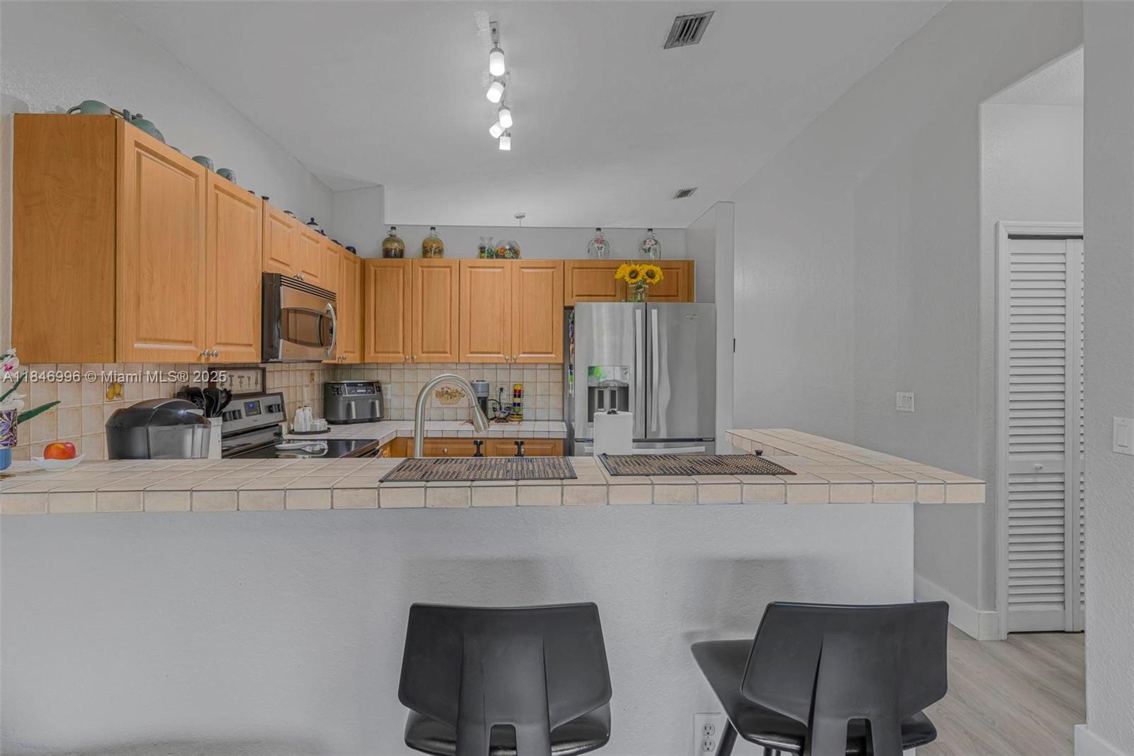Spacious and well-maintained 4-bedroom, 2-bath single-family home featuring vaulted ceilings, energy-saving solar panels, and laminate flooring throughout. Enjoy a bright open layout, a 1-car garage, and a large covered terrace with beautiful wood ceilings and crown molding—perfect for outdoor living. The backyard has ample space for a pool and includes an exterior storage closet. Centrally located near top-rated schools, shopping, dining, and major highways for an easy commute. No HOA, giving you flexibility and freedom. This home is move-in ready with great curb appeal, nestled in a desirable, quiet neighborhood. A perfect blend of comfort, convenience, and value—ideal for families or anyone looking to enjoy the South Florida lifestyle.