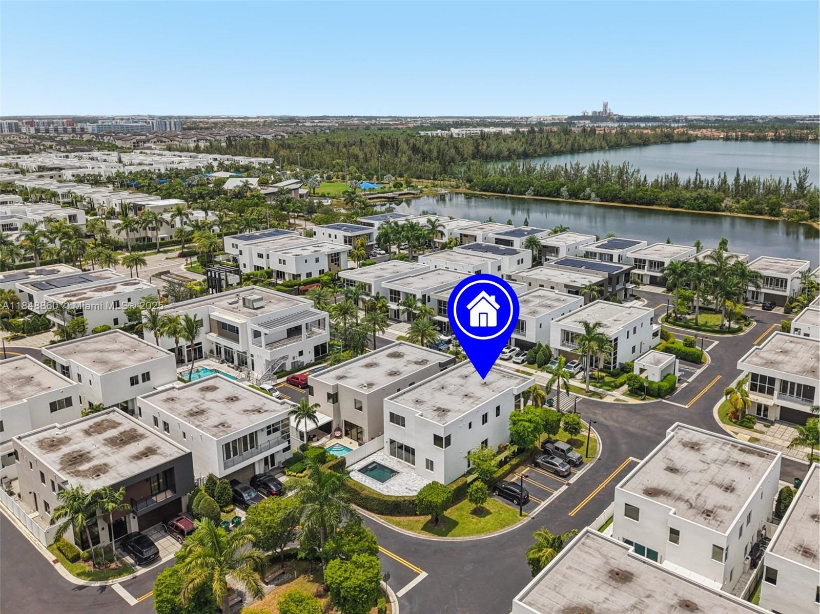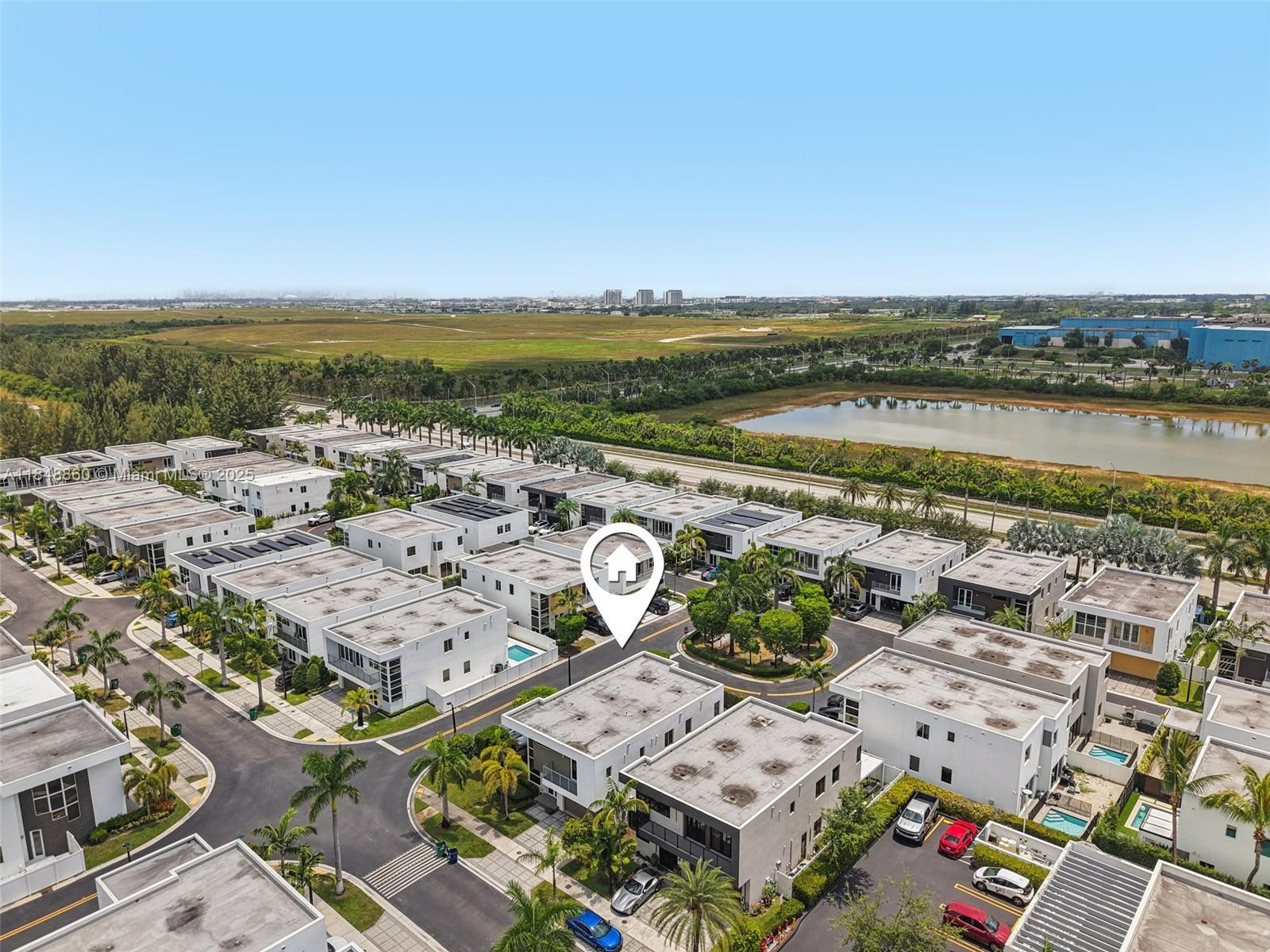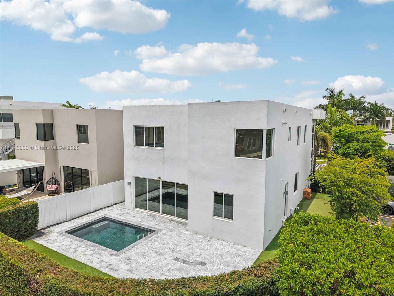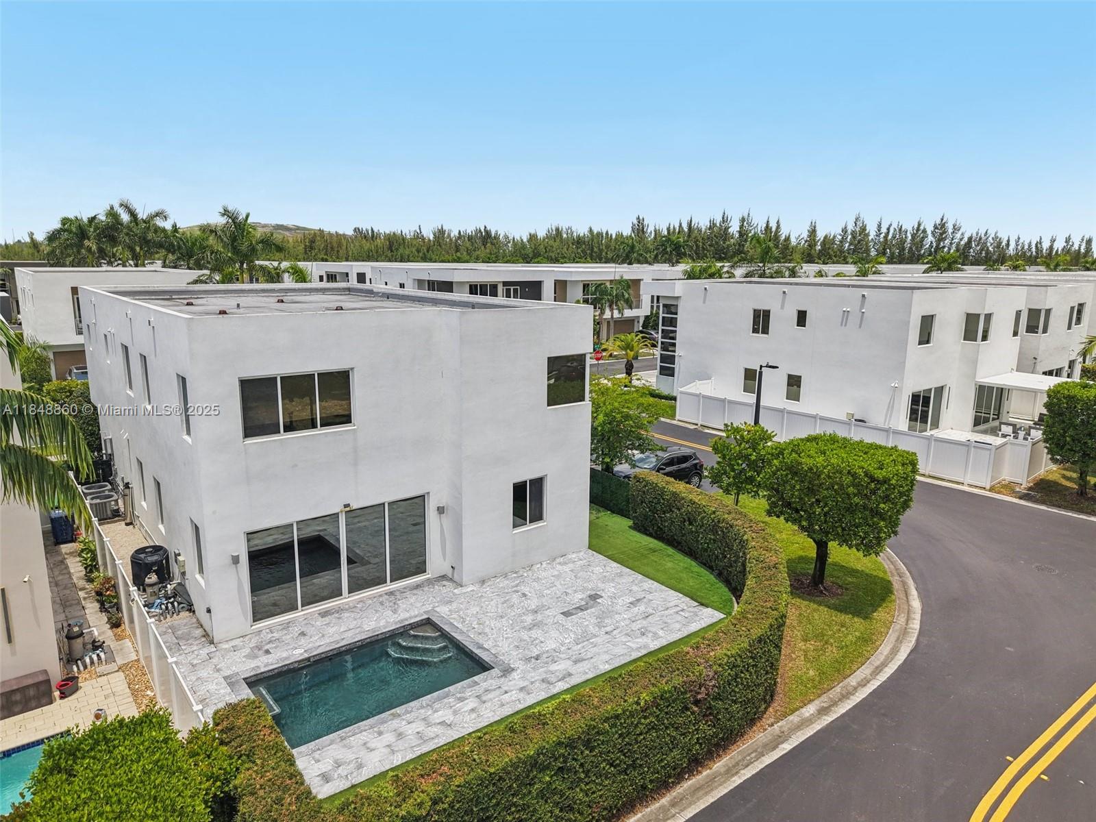 Modern Single Family House with 5 Bedrooms & 5 Bathrooms located in a prime corner lot at Modern45 -Doral. This house features open living spaces, an Italian-style open kitchen with a quartz countertop, and Bosh Appliances. The Entry is on the first floor, offering a full bedroom and a full bathroom. The first floor has Porcelain throughout, the second level has a wood floor and, includes 4 bedrooms, each with a private bathroom and a Laundry room. The large patio with a private pool is the center for your family to enjoy. Furniture is for sale. EASY TO SHOW !!