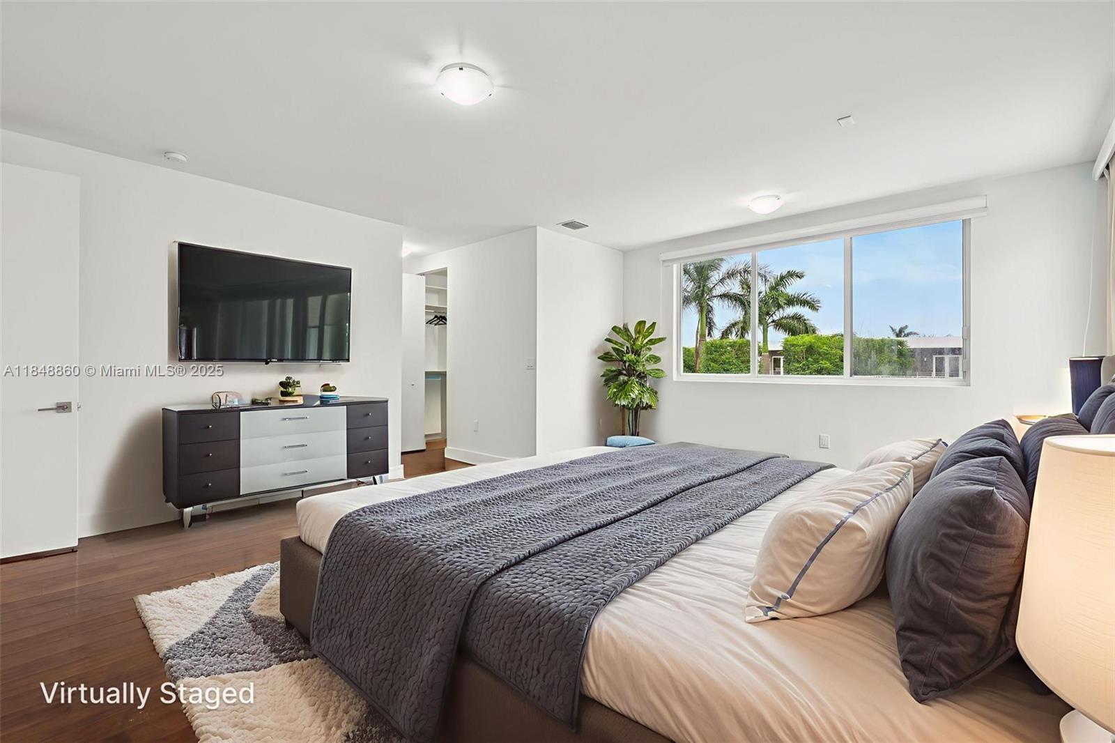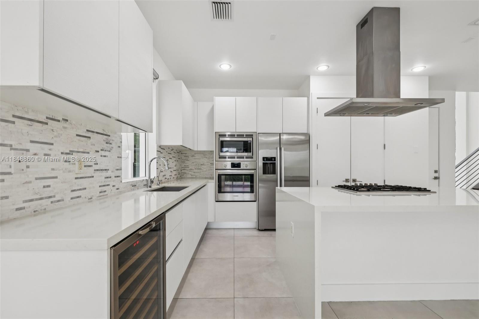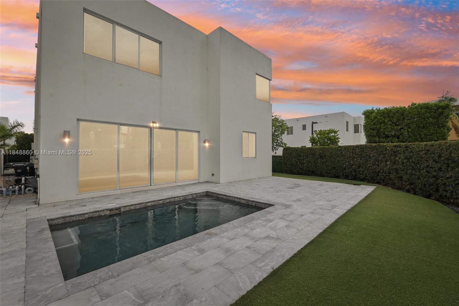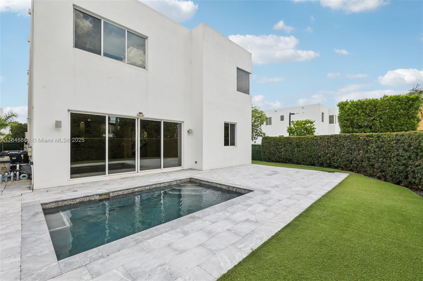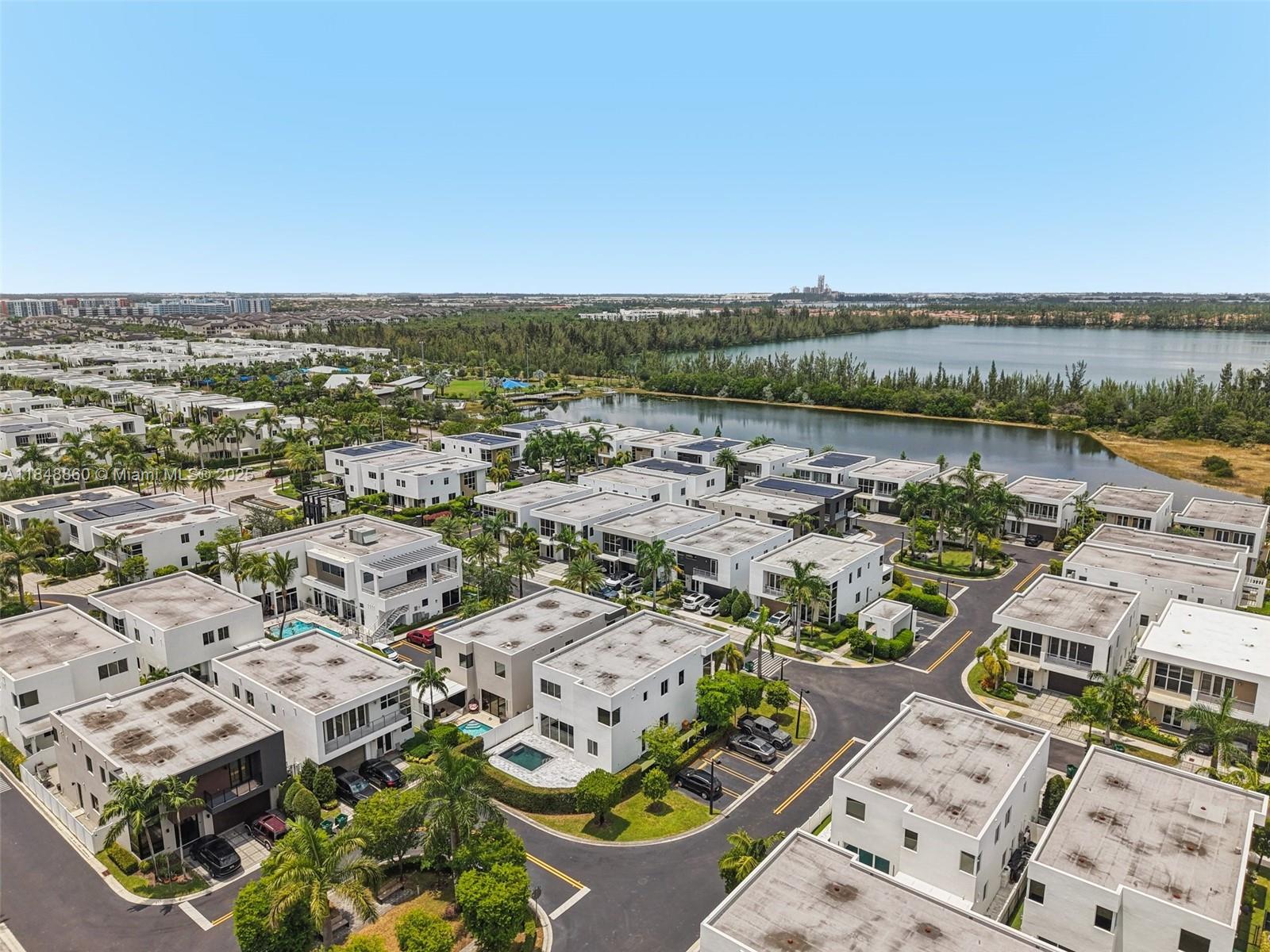 Modern Single Family House with 5 Bedrooms & 5 Bathrooms located in a prime corner lot at Modern45 -Doral. This house features open living spaces, an Italian-style open kitchen with a quartz countertop, and Bosh Appliances. The Entry is on the first floor, offering a full bedroom and a full bathroom. The first floor has Porcelain throughout, the second level has a wood floor and, includes 4 bedrooms, each with a private bathroom and a Laundry room. The large patio with a private pool is the center for your family to enjoy. Furniture is for sale. EASY TO SHOW !!