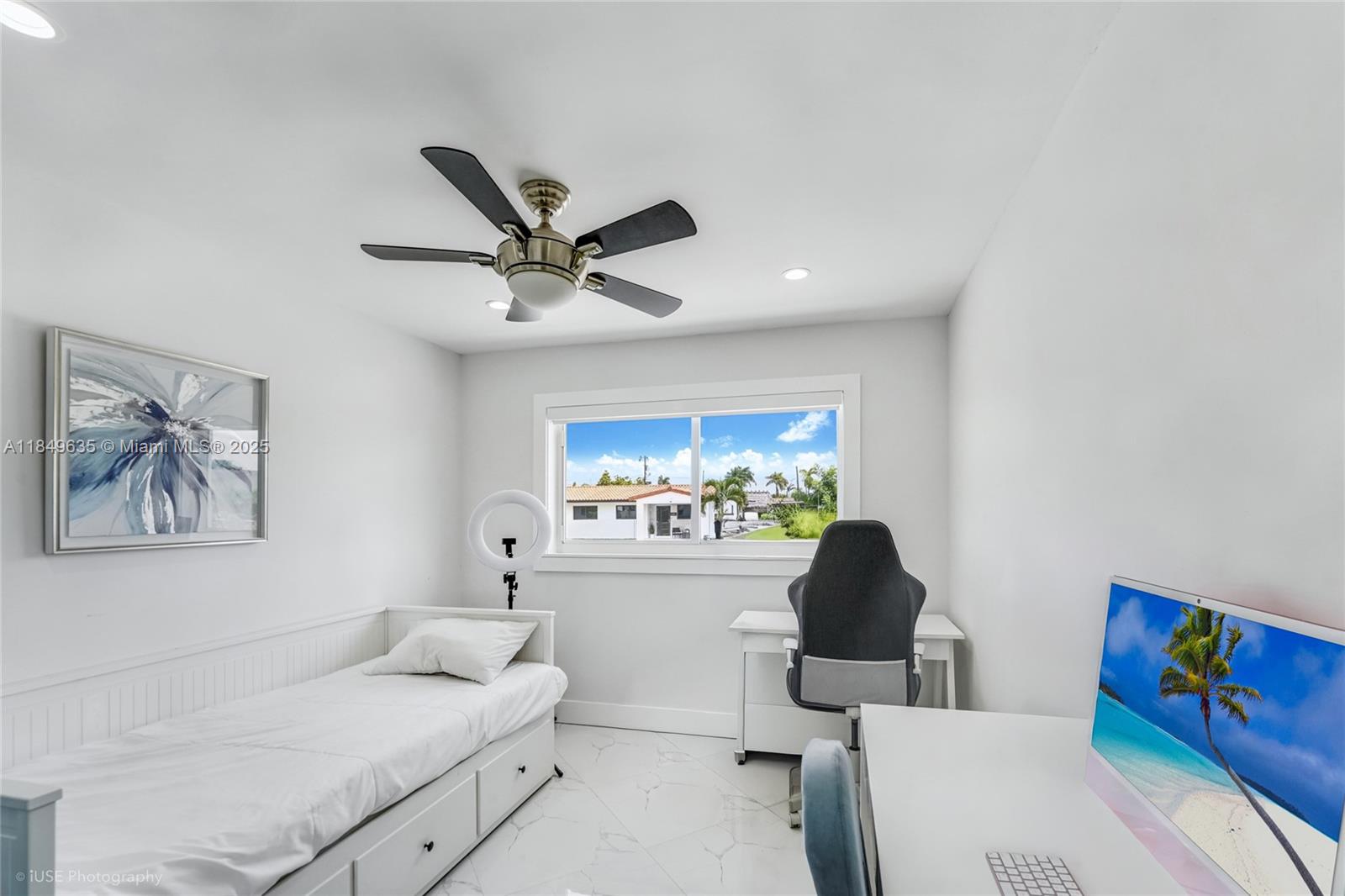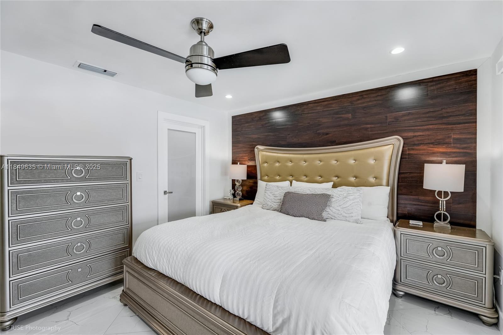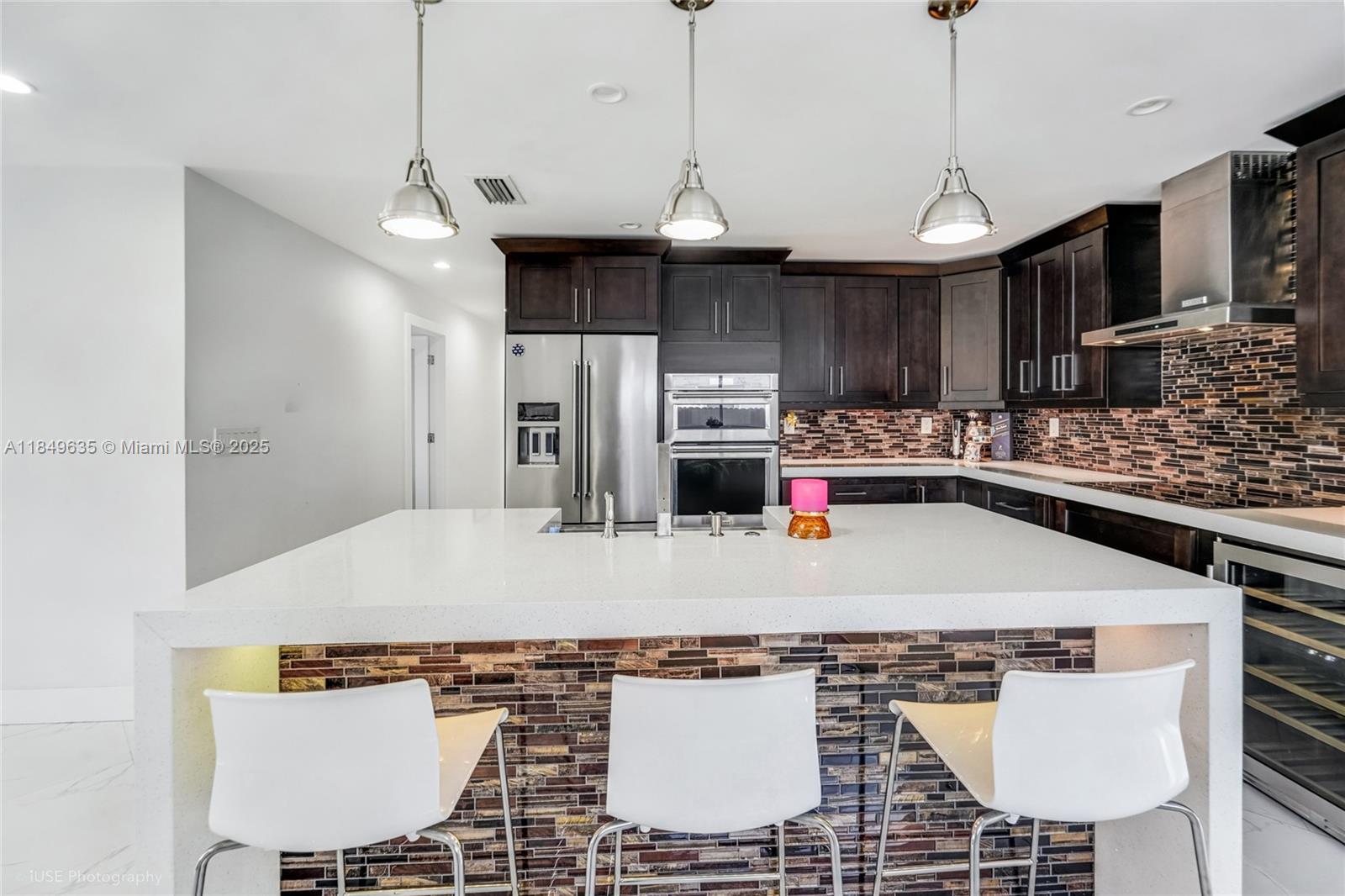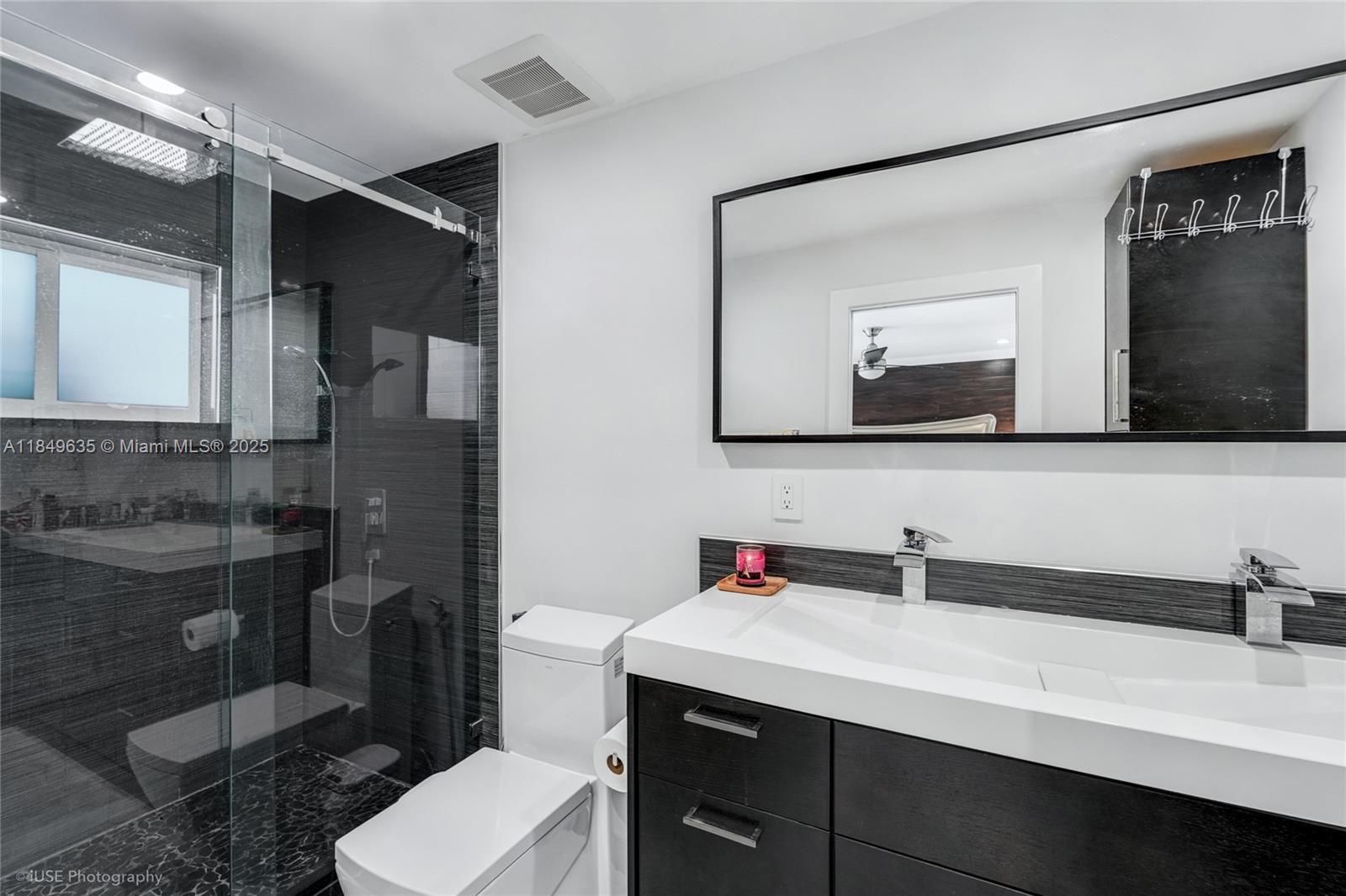 Sophisticated 4-bed, 2 bath home with sleek modern finishes, advanced automation, and resort-style outdoor living. Open-concept layout features polished porcelain tile floors and abundant natural light. Gourmet kitchen includes quartz counters, stainless steel appliances, and custom cabinetry. Private primary suite offers walk-in closet and spa-style bath. Smart home controls lighting, temperature, security, and audio. Hurricane-proof windows with automated blackout and sheer shades. Backyard oasis boasts pool, waterslide, lounge deck, covered patio, summer kitchen, and tropical landscaping. Prime location near top schools, shopping, dining, and major expressways.
