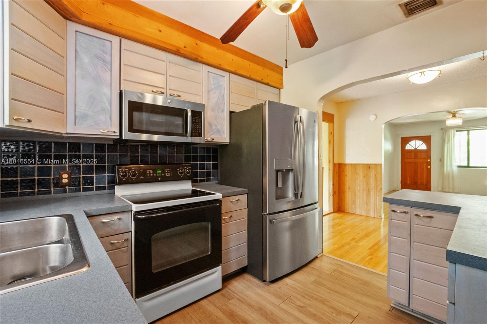 Welcome to your perfect starter home nestled on a serene, oak-lined street! This well-maintained 3-bedroom, 2-bath residence offers both comfort and peace of mind. Enjoy a spacious backyard ideal for gatherings or gardening, complete with a terrace and mature fruit trees for a touch of nature right at home. The property features a durable metal roof, impact windows, and added security with accordion shutters—bringing peace of mind year-round. Whether you're starting out or looking to downsize, this home blends function, beauty, and safety in a sought-after neighborhood. Don't miss this opportunity!