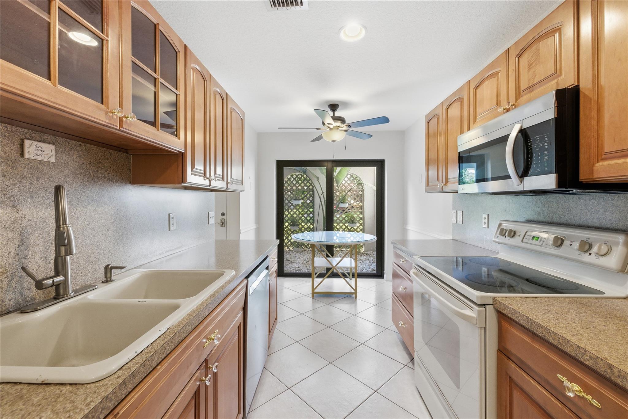 Receive up to 1,500 lender credit with seller's preferred lender. This upgraded townhome presents an exceptional opportunity to experience the comfort & seclusion of townhome living at pricing comparable to area condos. Situated in a secure gated enclave, this residence boasts newly installed impact-resistant windows & sliding glass doors, an AC system & water heater (4 years young), & received fresh interior paint w/ contemporary lighting upgrades just 1.5 years back. Features include Ring motion-activated lighting & surveillance cameras at front & rear entries, plus tranquil water views facing the clubhouse & pool area. HOA covers internet service, cable TV, security monitoring, lawn maintenance, ext. pest management, & additional services. Country club & golf memberships are optional.