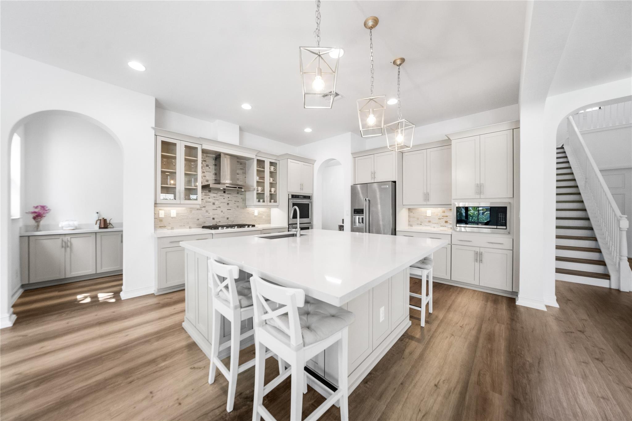 Former Builder Ashby Expanded Builder Model w/Over $117K In Improvements, 5 Full Beds + Loft, 4.5 Baths Waterfront Home w/3-Car Garage! Turnkey Dream Home w/Approx 4,000 SqFt Under Living, Open Floor Plan w/Luxury Vinyl Plan Flooring Throughout 1st & 2nd Floors, Gorgeous Large Chef's Updated Kitchen w/Quartz Counters & Huge Island, Updated KitchenAid Appliances, Double Oven, Newer Light Fixtures & Pendants, Full Bed & On-Suite Bath Downstairs Ideal For In-Law's Or Guests, Primary Bed Upstairs, Walk-In Closets, Spacious Primary Bath w/Separate Tub & Shower, Dual Sinks, Another Full Bed & On-Suite Bath Upstairs, Grand Loft Area Ideal For Your Children! Expanded Pavered Patio w/Fenced In-Yard Perfect For The Entire Family, Resort-Style Clubhouse Amenities, 24-Hour Guard Gated, & A+ Schools.