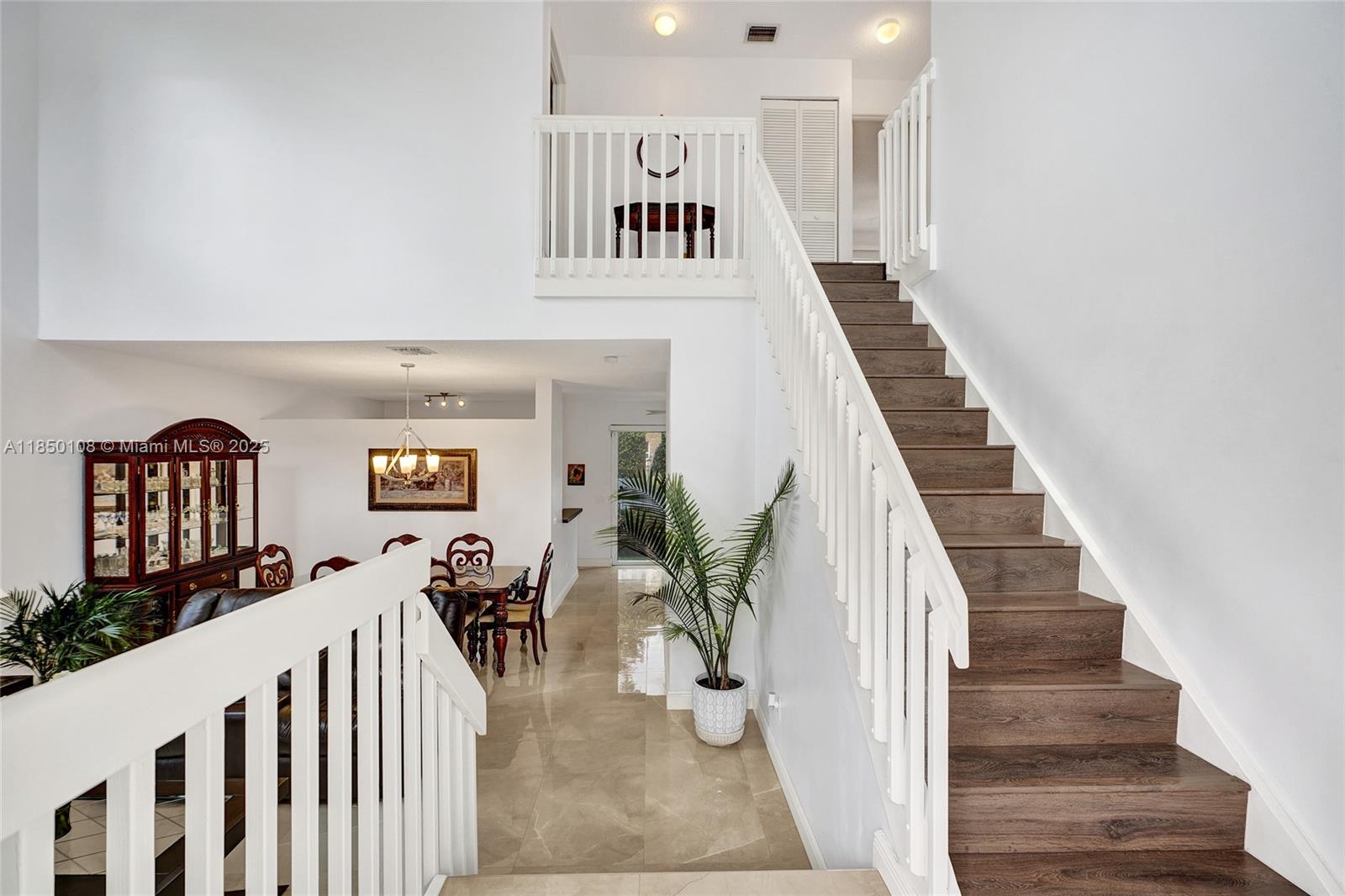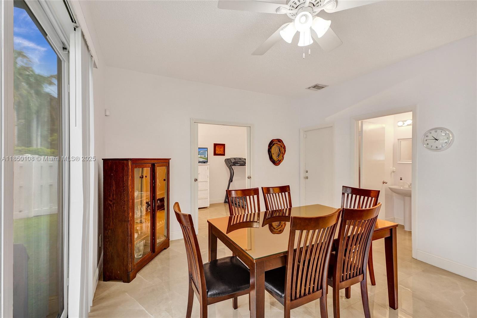 Welcome to this beautifully updated and energy-efficient 3 bedroom, 2.5 bathroom home featuring a flexible den perfect for a home office, playroom, or guest space. Step inside to find new flooring throughout, an open-concept kitchen with stainless steel appliances, and a spacious primary suite complete with a walk-in closet and double sinks. Major upgrades include impact windows and doors, new A/C (2021), new roof (2018), new water heater (2024), and a fully replaced duct system in 2024, all designed for long-term comfort and savings. Enjoy peace and privacy in the fenced backyard with lush garden views, ideal for relaxing or entertaining. Tucked within a quiet, secure community with 24/7 gated access, this home is move-in ready, don’t miss your chance to make it yours.