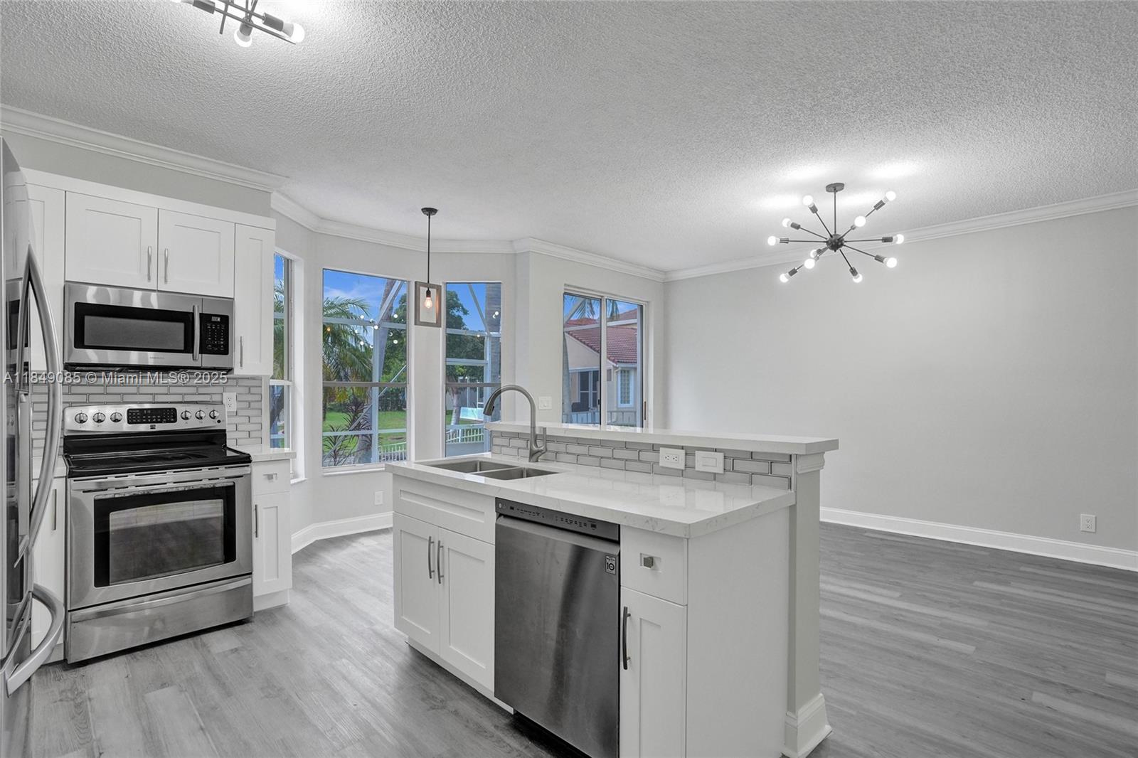 Move right in! This beautifully renovated home offers modern living in the desirable gated community of Eagle Creek in Wyndham Lakes. Downstairs boasts a BRAND NEW kitchen with new cabinets, lighting, and flooring, a living room with vaulted ceiling, family room, dining room, convenient half bath, and laundry room. Stay cool with a NEW A/C. Enjoy the outdoors on your enormous 40-foot screened patio, overlooking a serene pond and shaded, fenced-in yard. Upstairs features laminate wood flooring throughout, spacious loft easily converted to a 4th bedroom, master suite with ample space for a king-sized bed and furnishings, and an extra room perfect for an office or nursery. Guest rooms share an updated bathroom with a luxurious waterfall shower. Seller will offer a CREDIT FOR ROOF REPLACEMENT