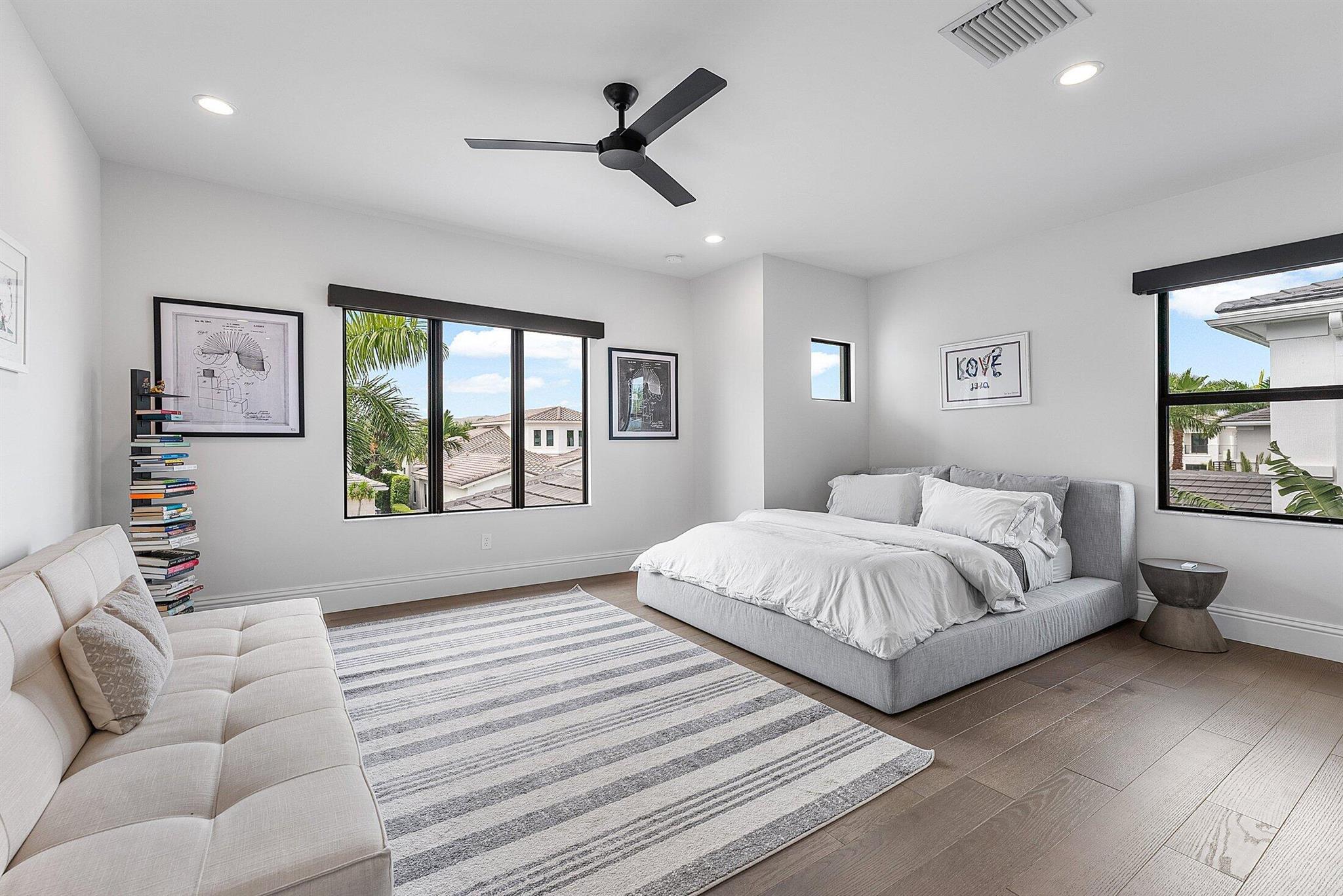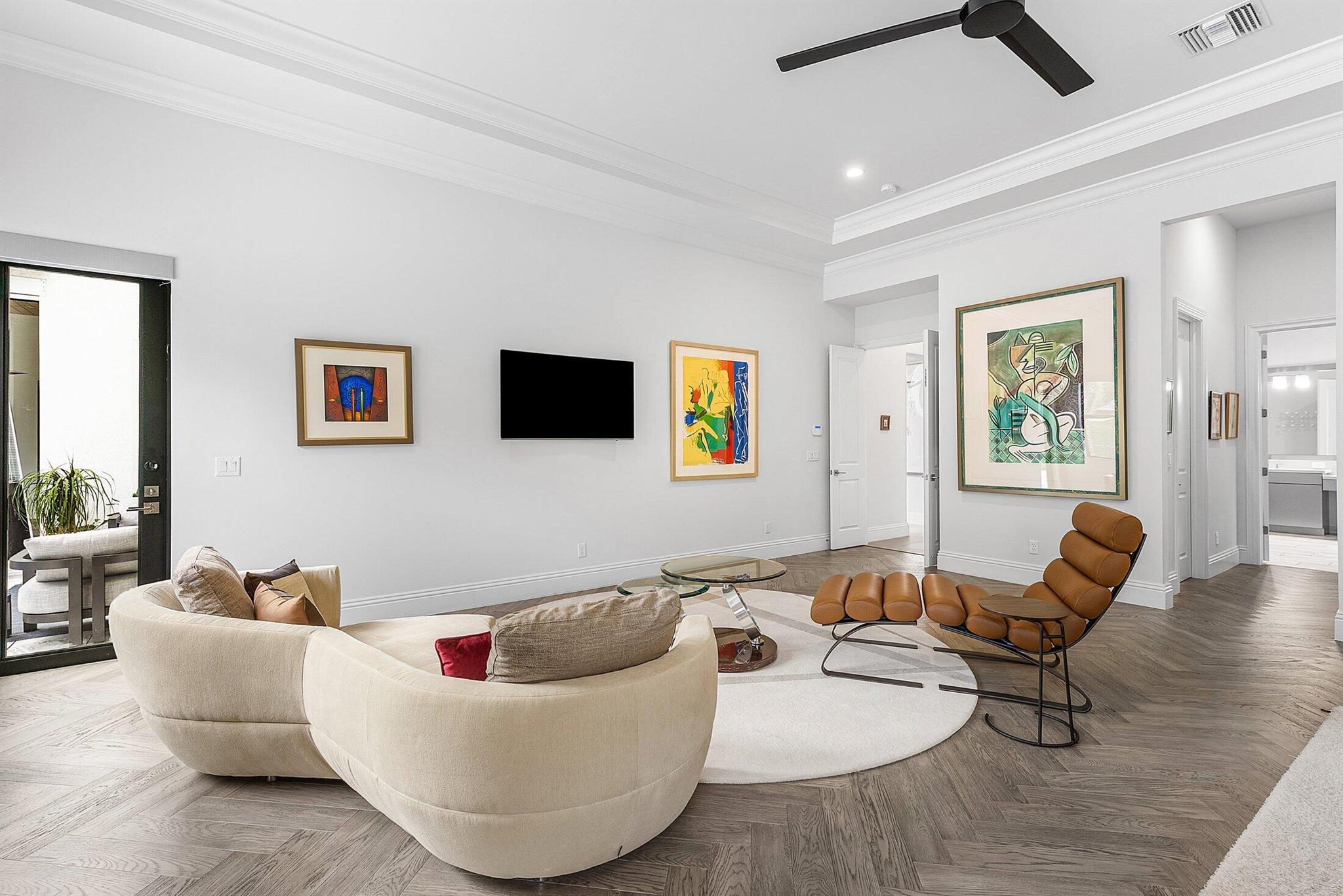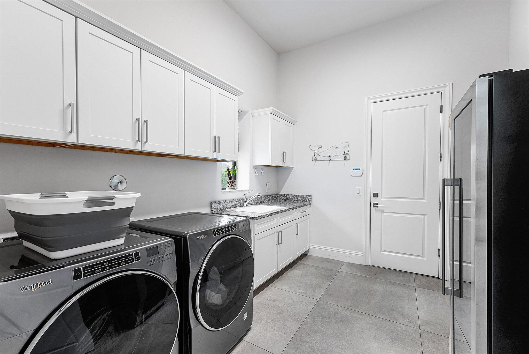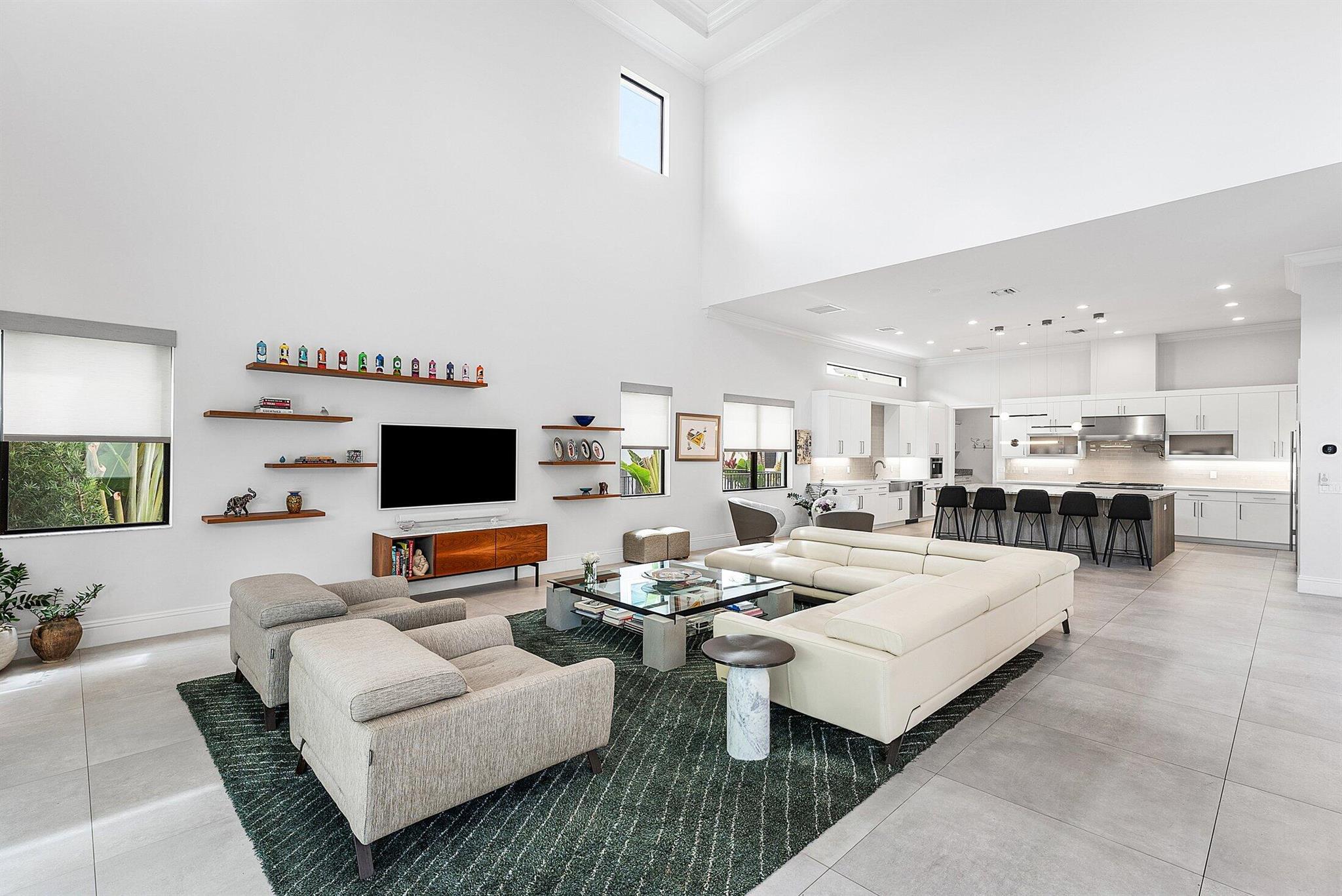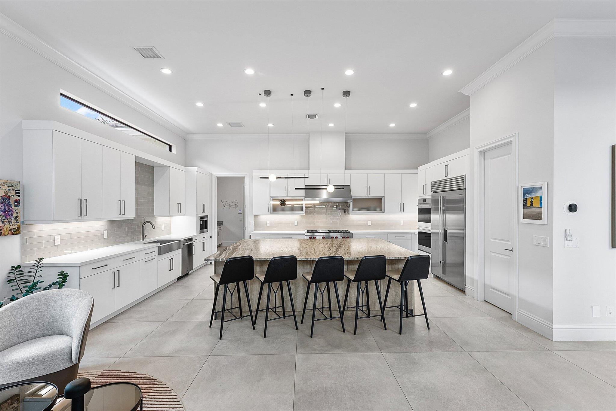 Welcome to 2707 NW 75th Street, a newly built 2022 residence, located in the heart of Boca Raton's exclusive Royal Palm Polo. This stunning home, thoughtfully crafted with high-end finishes and exceptional details, offers the ultimate in luxury living with sophisticated design and well-planned spaces both inside and out. Upon entry, a dramatic double wrought iron staircase sets the stage for the grand interior. Thirty-six-inch porcelain tile floors flow through the main living areas, complemented by custom light fixtures, impact glass, and architectural millwork.The chef's kitchen is a showpiece with leathered quartzite countertops, Wolf appliances, a Sub-Zero refrigerator, built-in coffee machine, pot filler, wine fridge, and a spacious walk-in pantry.The first floor hosts an