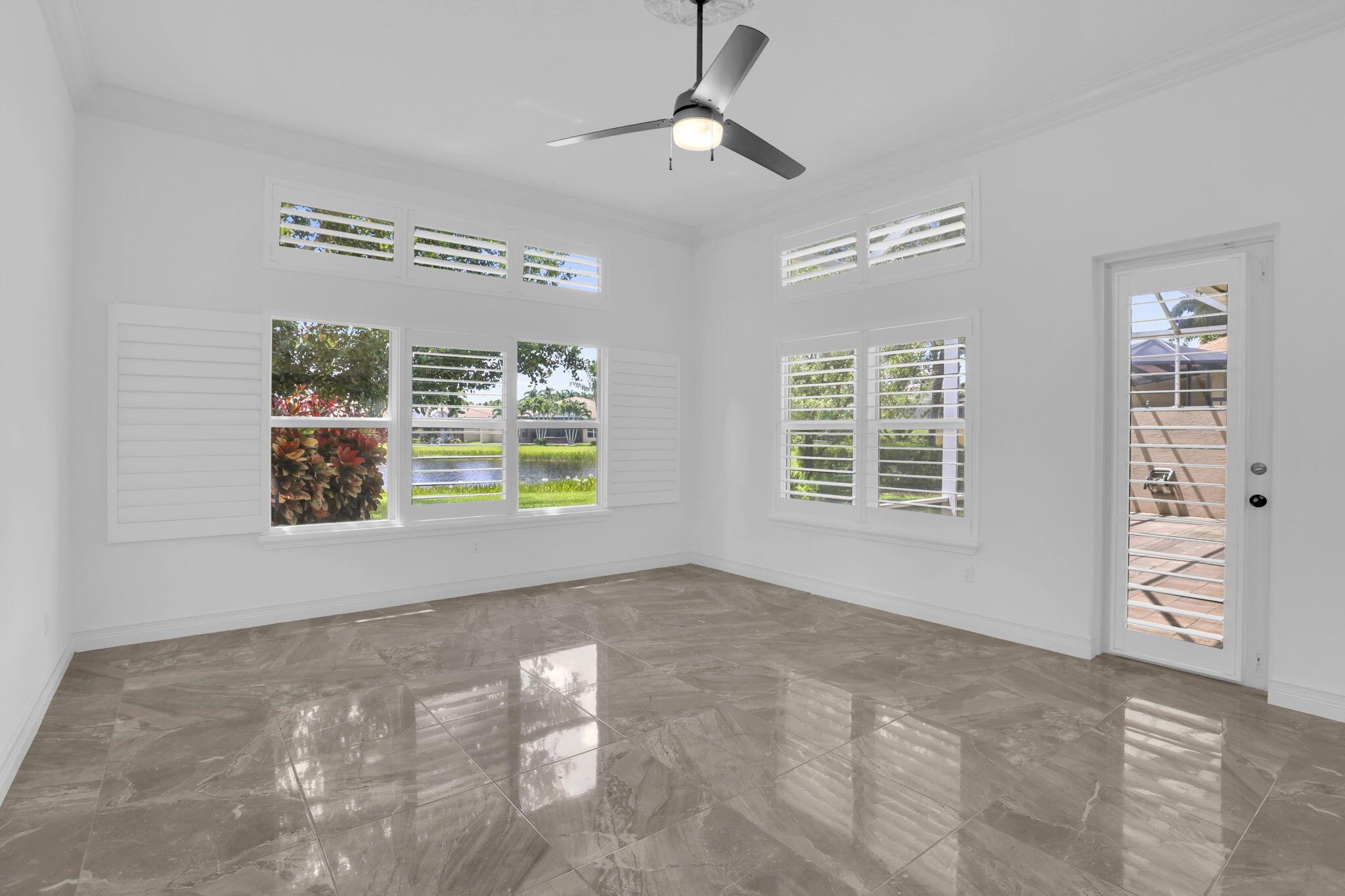 CLICK VIDEO TAB to view narrated video!4 Bedroom, 3 Bath 'Lydia' model with over $100K in Upgrades! Situated on a Builder's Premium Oversized Pie-Shaped Lakefront lot offering a widened driveway, walkway & Extended 2CG with Epoxy flooring! Boasting a Newly Painted Interior, Crown molding, Coffered ceilings, abundance of hi-hat lighting, Italian Tile flooring, Wood flooring in bedrooms, Central vacuum, Custom Plantation Shutters, French doors & Designer light fixtures! The Granite kitchen features stainless steel appliances, custom Espresso cabinetry with under cabinet Vent Hood, and center Island! An open floor plan designed for easy entertaining. The family room is open to the kitchen. Formal living and dining rooms. The master suite features custom built-out walk-in closets, upgraded