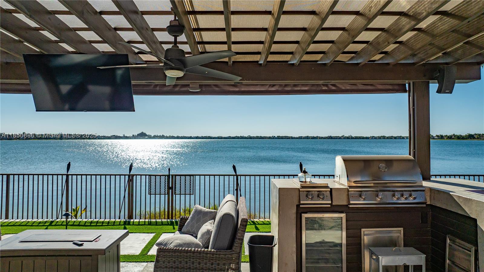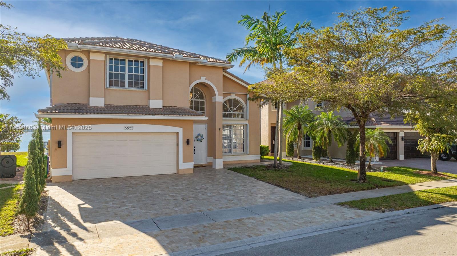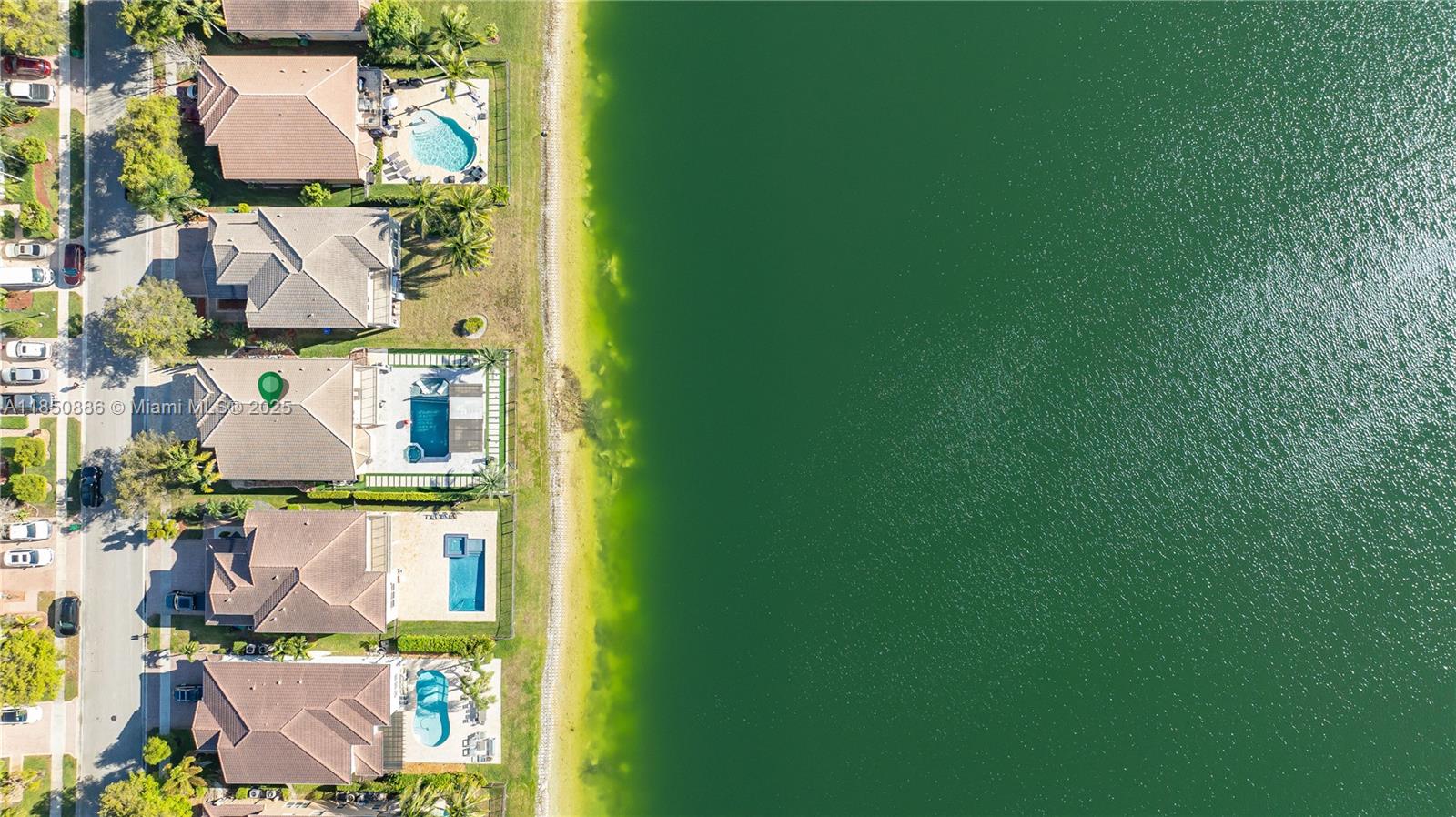 Welcome to your gorgeous new home with unparalleled lake view that looks out for miles in each direction. New porcelain floors & laminate upstairs. Kitchen updated Feb 2025, everything new from the Samsung appliances to the cabinets & quartz island. Beautiful lighting throughout both natural and from the chandeliers including a 6ft one hanging in the foyer. 2 car garage with 3 car paver driveway installed this month, plenty of space to park. Primary bedroom has dual primary bath with shared shower & baloney view of lake & backyard. Large format closets. The backyard is like no other. Enjoy the most incredible view & sunsets that will make everyone envious. Heated salt water pool with sun deck, fountain & hot tub. Pergola with drop down tv, built in bbq and sink. Truly one of a kind.