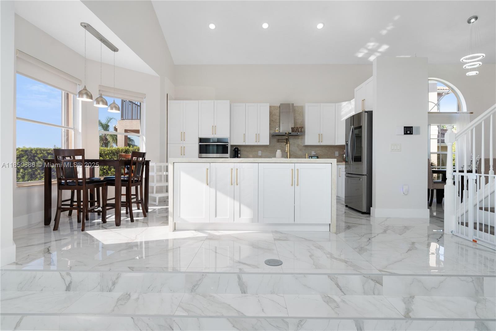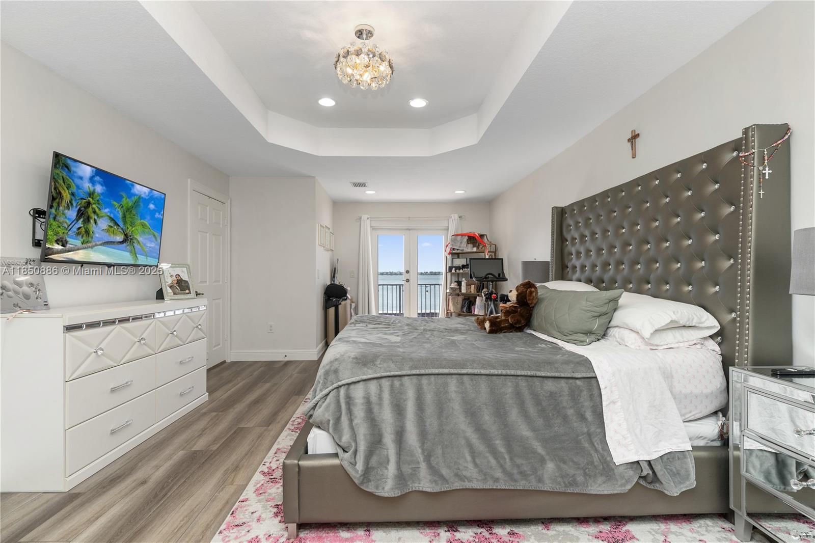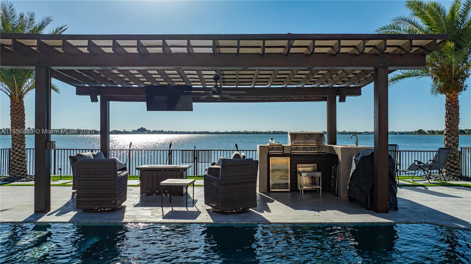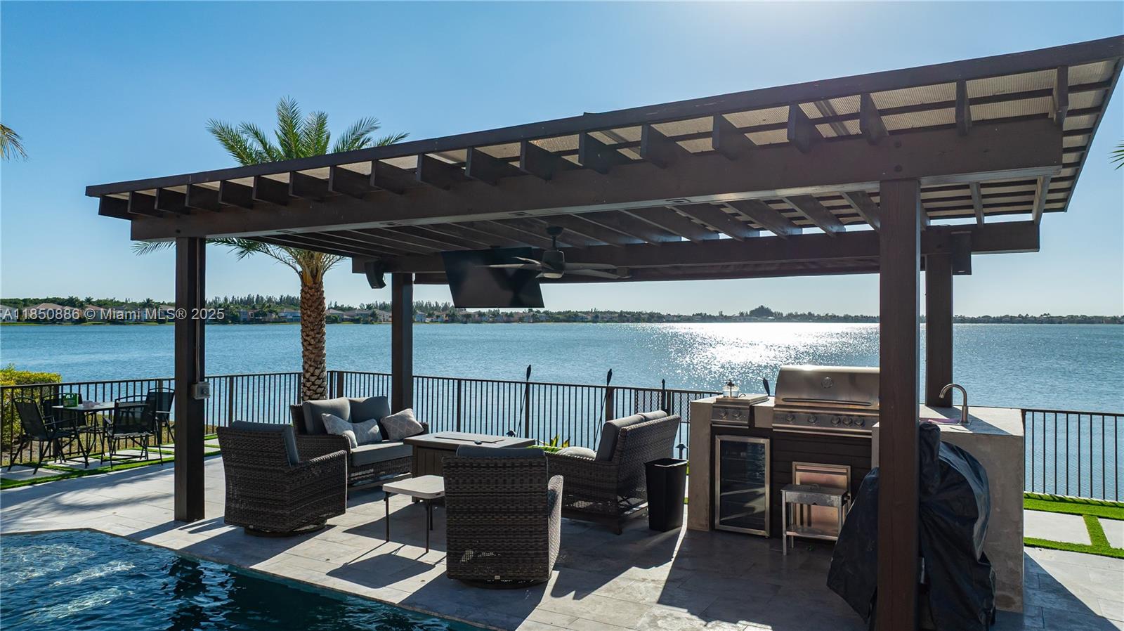 Welcome to your gorgeous new home with unparalleled lake view that looks out for miles in each direction. New porcelain floors & laminate upstairs. Kitchen updated Feb 2025, everything new from the Samsung appliances to the cabinets & quartz island. Beautiful lighting throughout both natural and from the chandeliers including a 6ft one hanging in the foyer. 2 car garage with 3 car paver driveway installed this month, plenty of space to park. Primary bedroom has dual primary bath with shared shower & baloney view of lake & backyard. Large format closets. The backyard is like no other. Enjoy the most incredible view & sunsets that will make everyone envious. Heated salt water pool with sun deck, fountain & hot tub. Pergola with drop down tv, built in bbq and sink. Truly one of a kind.