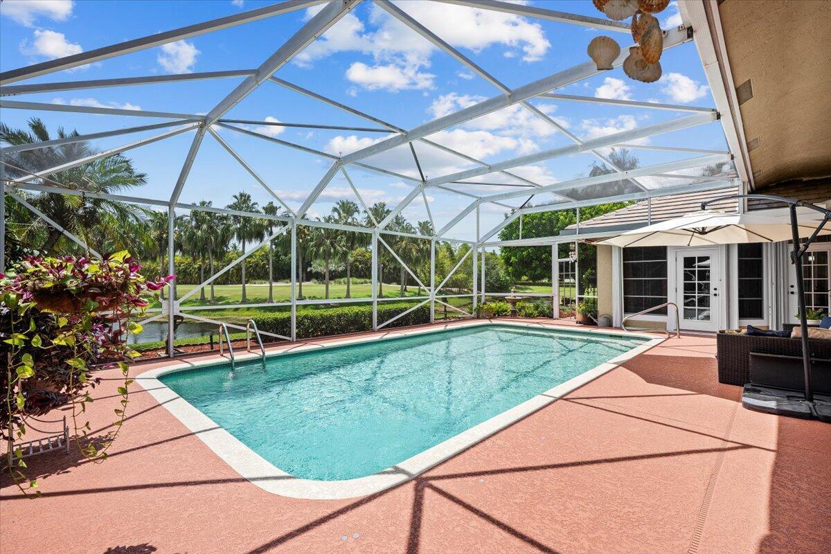 Experience modern luxury & exceptional design in this recently updated home located in the prestigious gated community of Lakefield West. This single-story residence offers 3 spacious bedrooms, each with its own ensuite full bathroom, plus a versatile 4th room that can serve as an office or an additional bedroom.Enjoy breathtaking views of the golf course and tranquil pond from your screened-in patio and sparkling inground pool.No detail was overlooked in the recent renovation, which includes: a new roof (2024), new flooring throughout, brand-new kitchen, beautifully updated bathrooms, new A/C, pool pump, lighting fixtures, and fresh interior paint.Additional features include expansive living and family rooms for privacy and flow. The home is zoned for top-rated Wellington schools.
