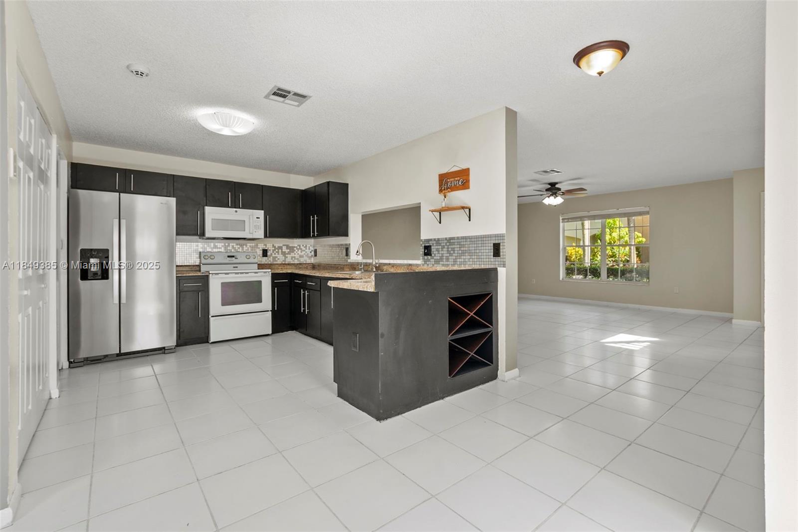 Courtyard-style corner unit townhome featuring foyer entrance, open living and dining area, a spacious kitchen with breakfast area and laundry closet and updated bathrooms. Tile on the first floor, carpet upstairs, and high ceilings on the second level with generously sized bedrooms. Roof is approx. 1.5 years old; appliances and water heater under 5 years. Enjoy a private backyard and separate storage room. Pet-friendly community with pool and playground. One Assigned Parking Space with plenty of additional parking. Prime location near Pembroke Lakes Mall, Memorial West Hospital, Restaurants, Shopping Centers, A+ Schools, major highways, and I-75.