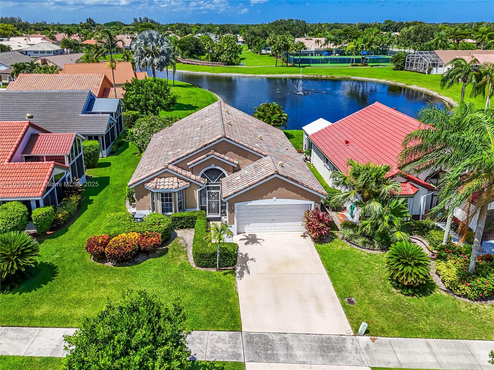 Great Location! Stunning home located in the heart of Delray Beach, a quiet gated community! This beautiful property is located in a fabulous location! With a back patio that has a lovely lake view. With 4 bedrooms and 3 full bathrooms, everything is in excellent condition. The bathrooms have been upgraded, and the kitchen is charming, offering plenty of cabinet space. Equipped with accordion shutters and beautiful tile flooring throughout the home, it boasts excellent natural light , a split floor plan, and vaulted ceilings. Delight in the low HOA fees, which covers lawn care and access to fantastic amenities, close to restaurants, shopping, beaches, cultural attractions, the turnpike and I-95.
