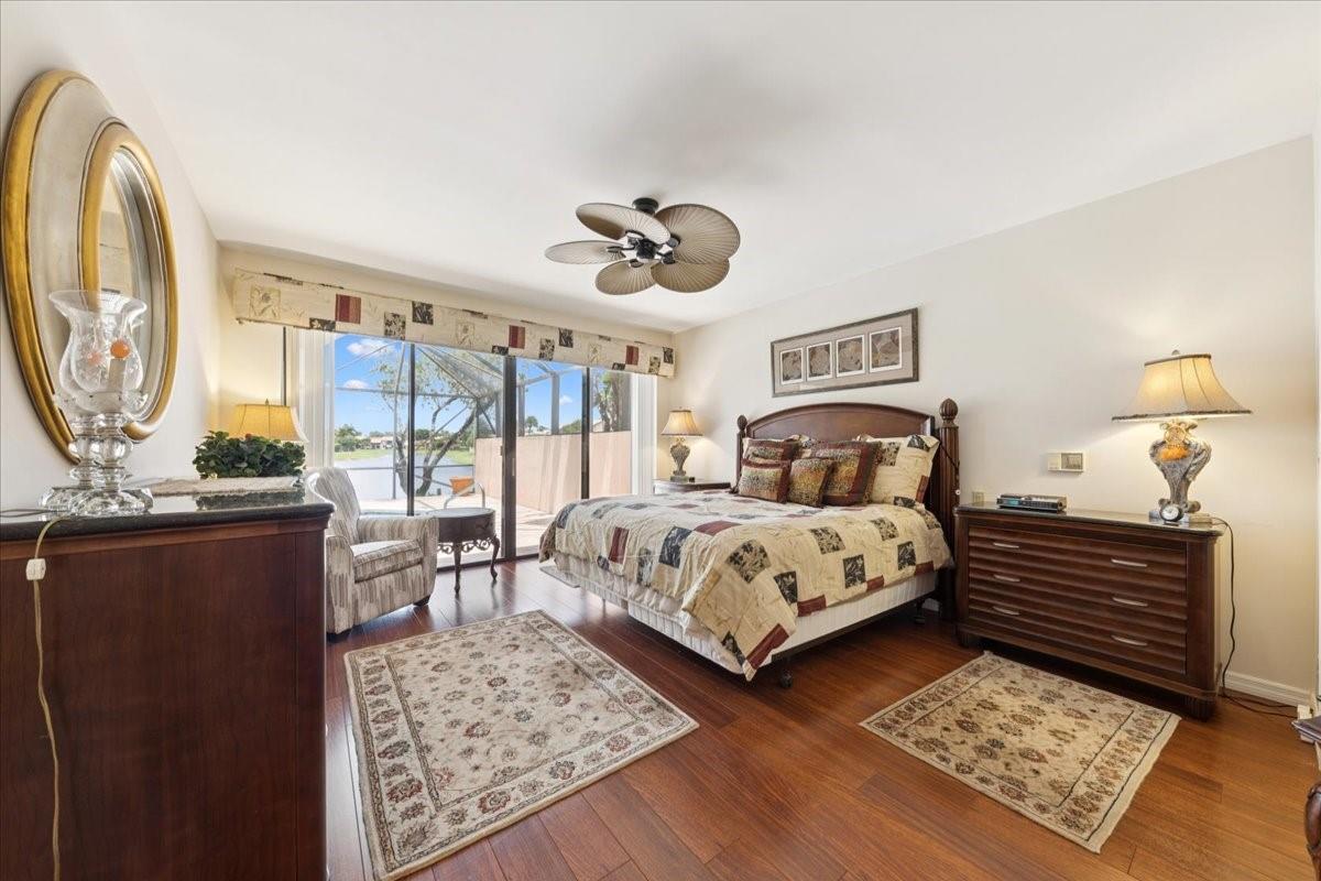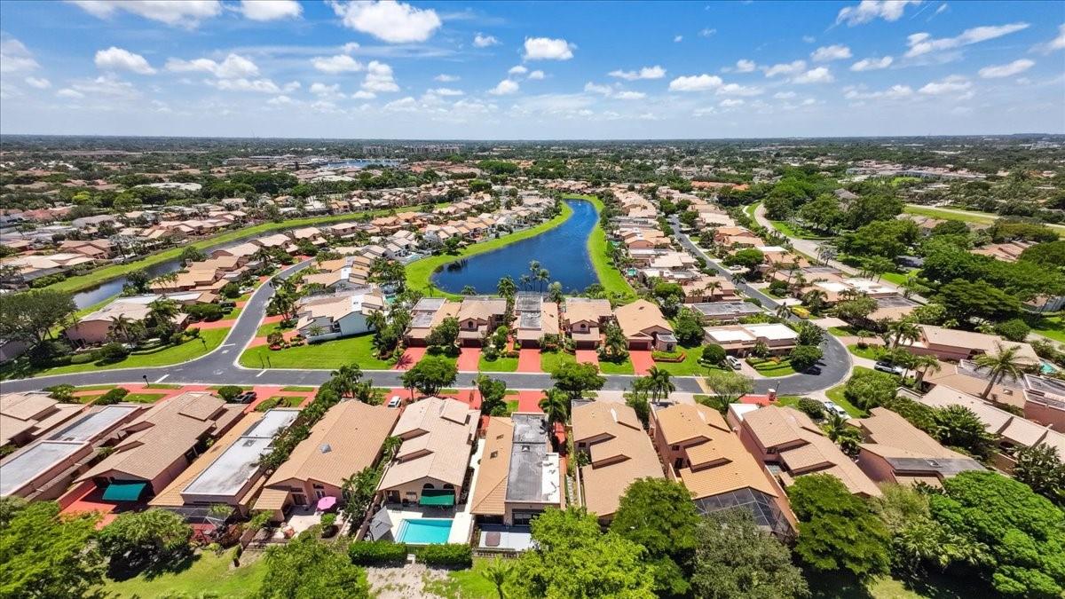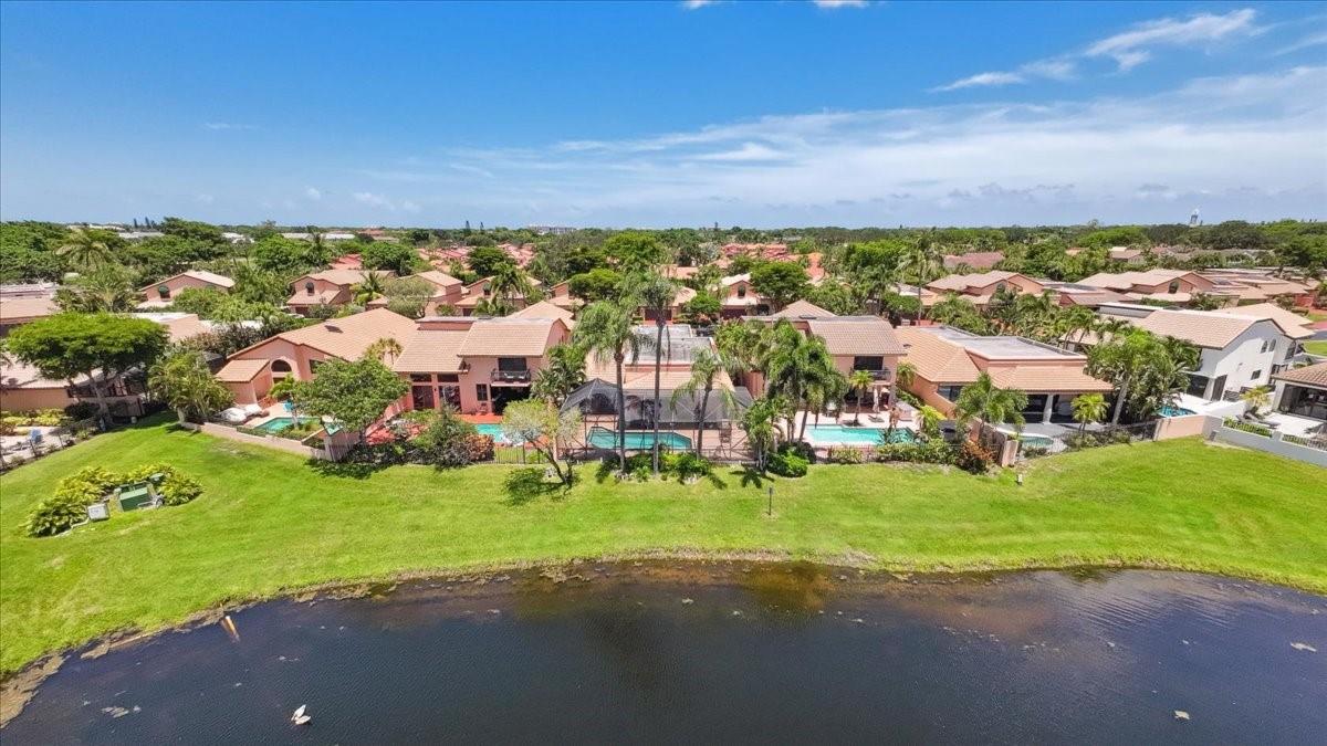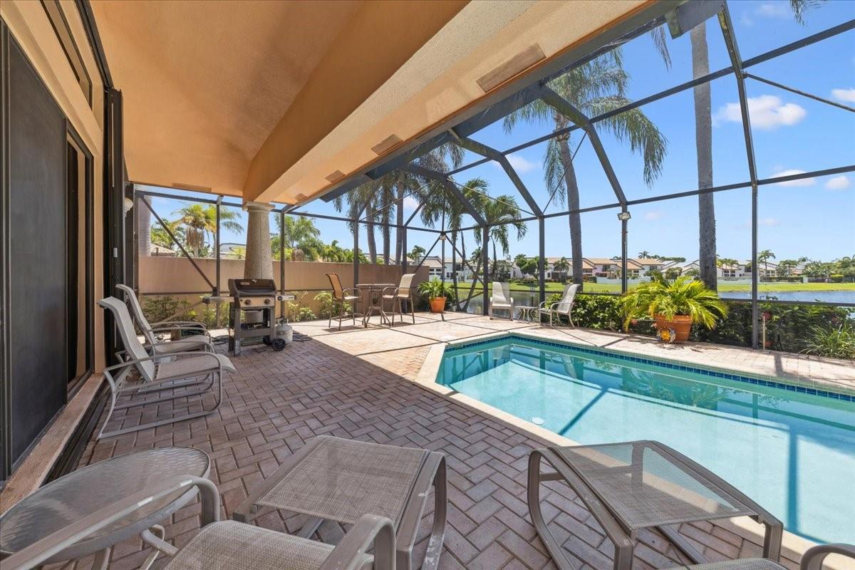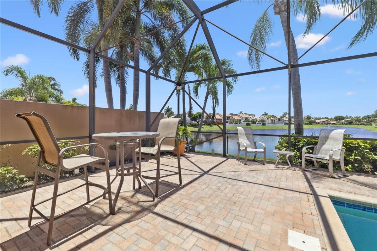 Discover this stunning, light-filled single story home in the highly sought-after Boca Pointe community! Boasting of magnificent long lake views...a beautiful pool/patio area... an open and airy floor plan...a spacious kitchen w/large island perfect for informal gatherings or buffet style entertaining. The first-floor primary suite is a private retreat, offering engineered laminate floors, custom walk-in closets with built-in shelving, and a spa-like bath with granite countertops and a luxurious shower. Residents enjoy resort-style amenities including pool, and 24/7 security with roving patrols. Optional golf and tennis country club memberships are available