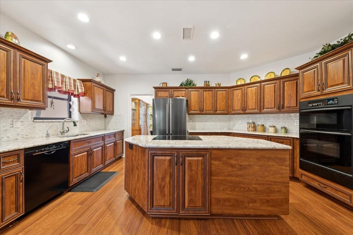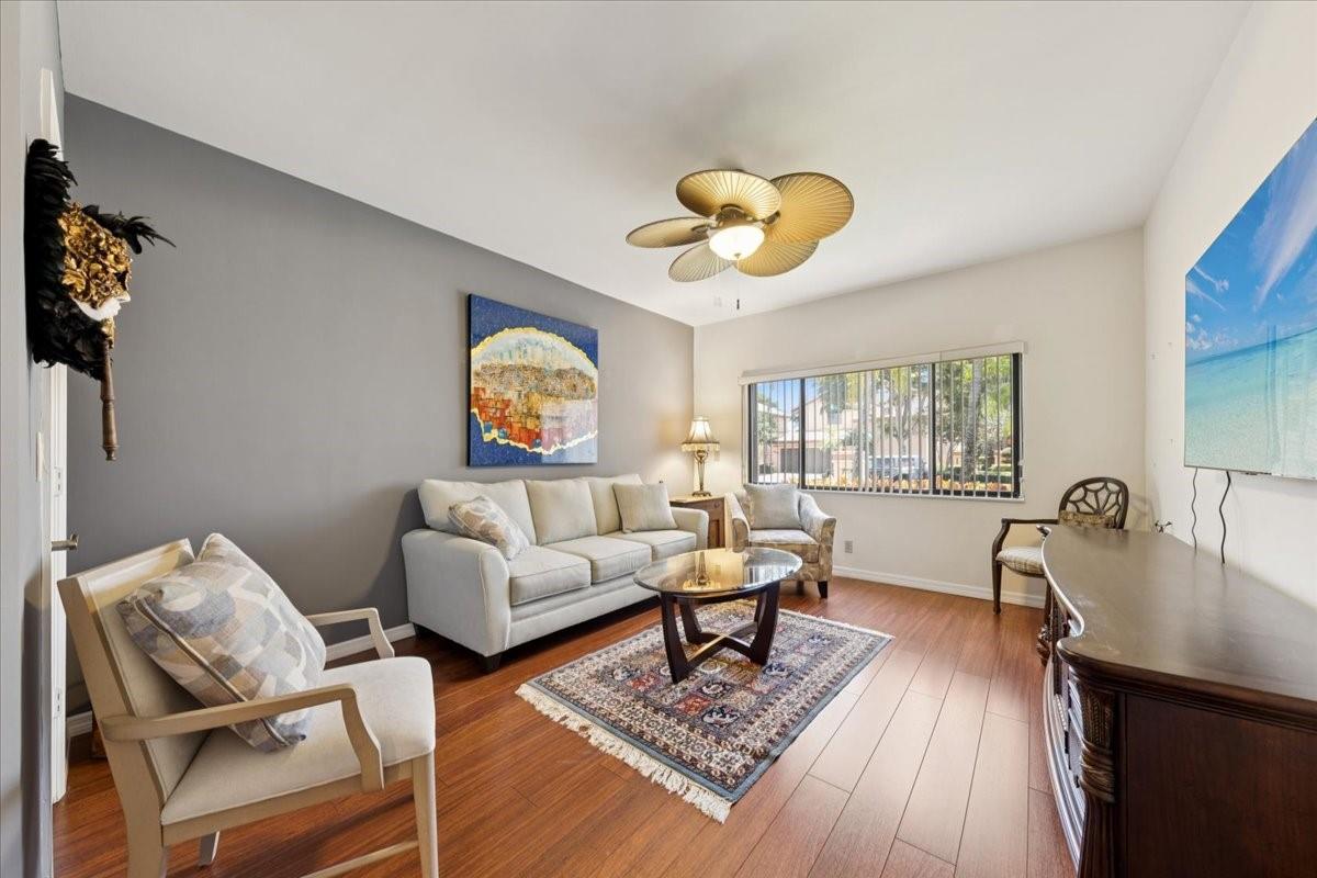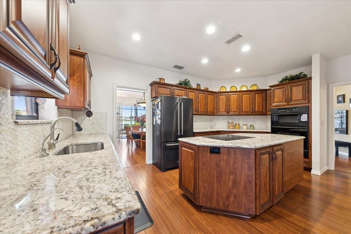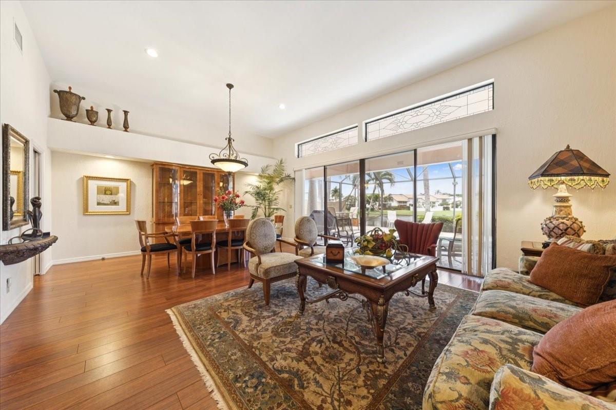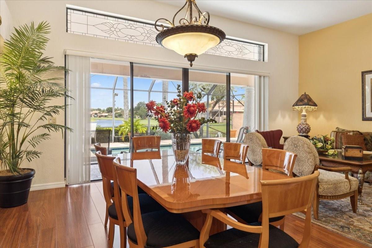 Discover this stunning, light-filled single story home in the highly sought-after Boca Pointe community! Boasting of magnificent long lake views...a beautiful pool/patio area... an open and airy floor plan...a spacious kitchen w/large island perfect for informal gatherings or buffet style entertaining. The first-floor primary suite is a private retreat, offering engineered laminate floors, custom walk-in closets with built-in shelving, and a spa-like bath with granite countertops and a luxurious shower. Residents enjoy resort-style amenities including pool, and 24/7 security with roving patrols. Optional golf and tennis country club memberships are available