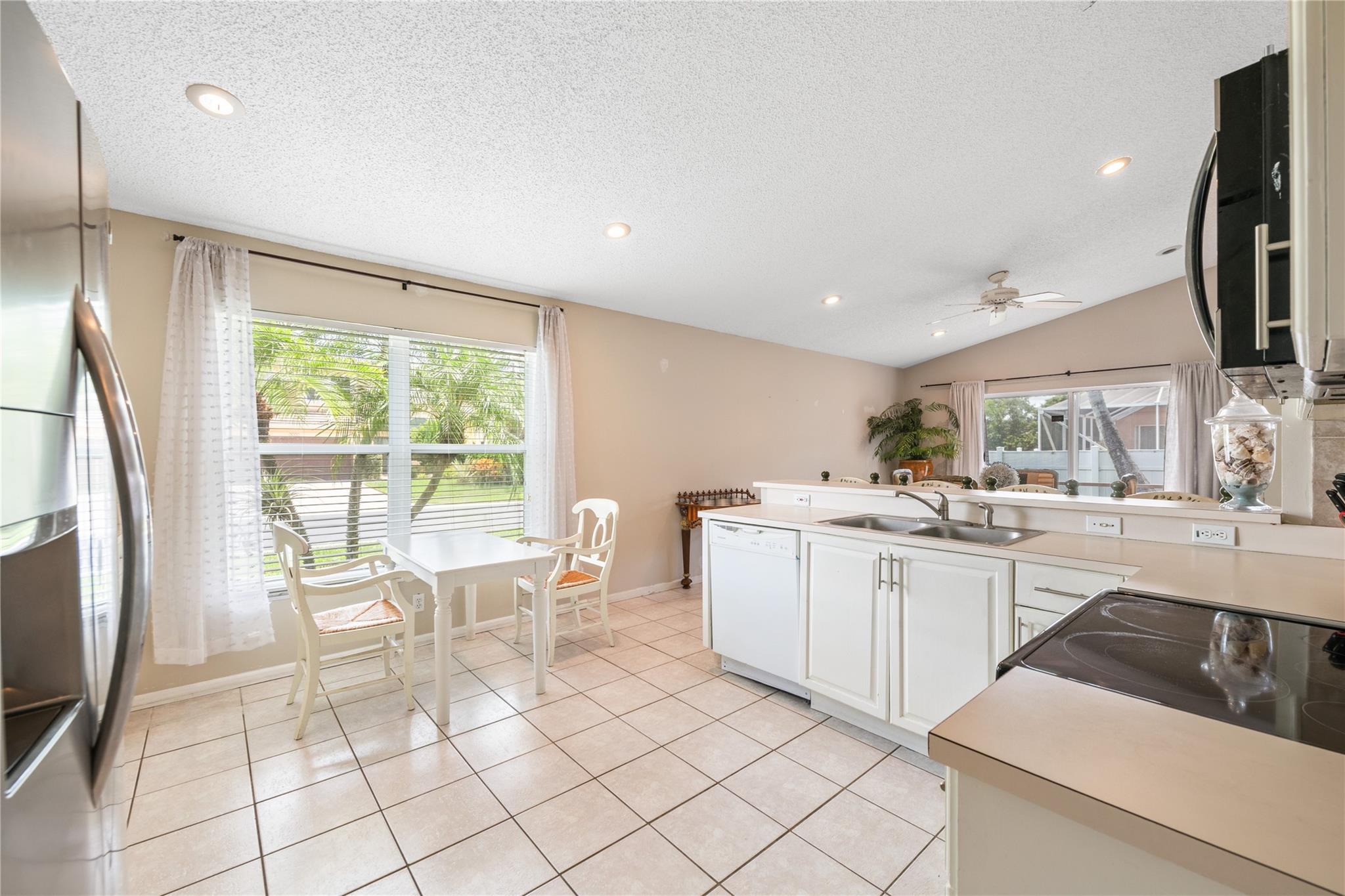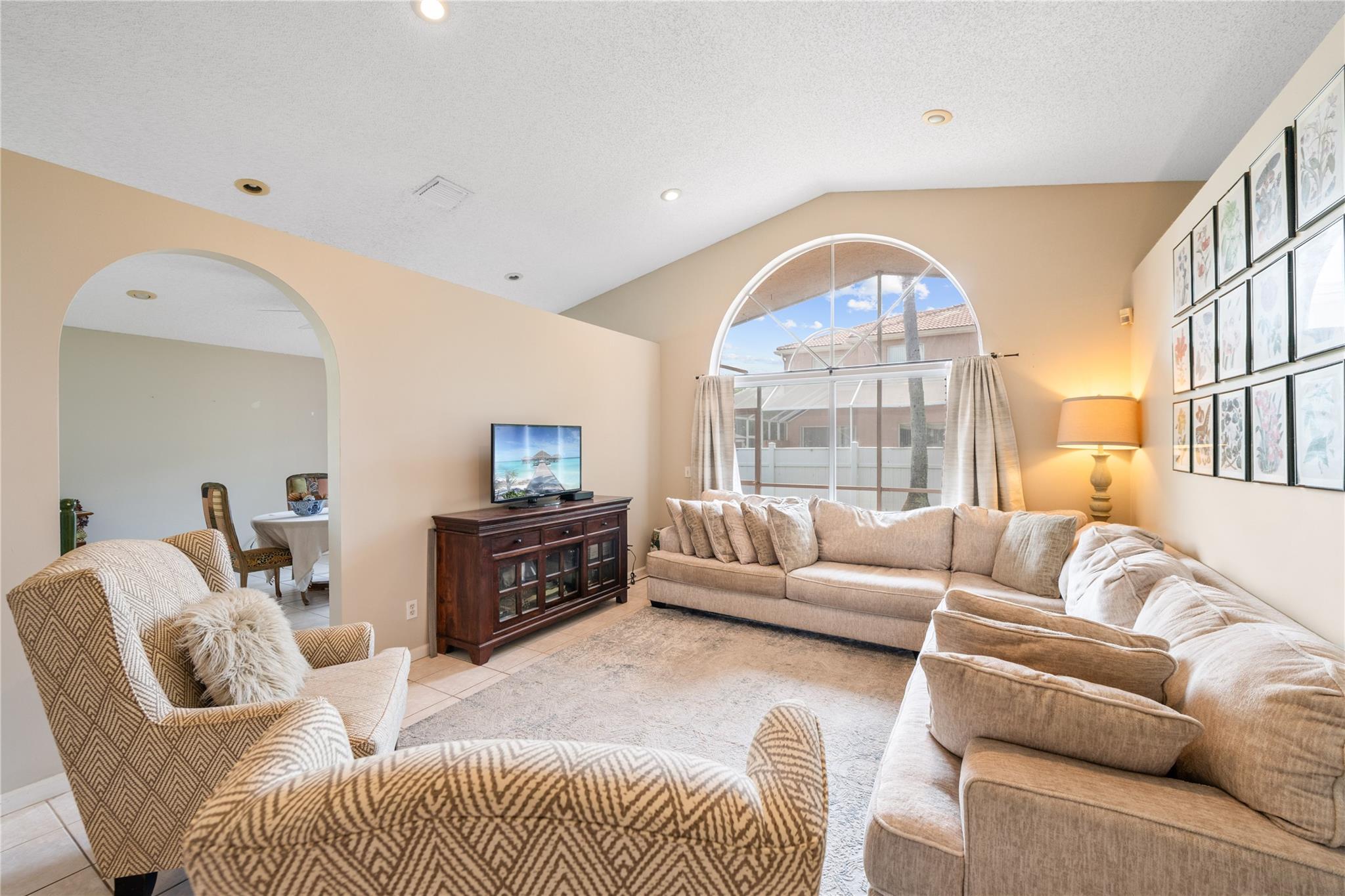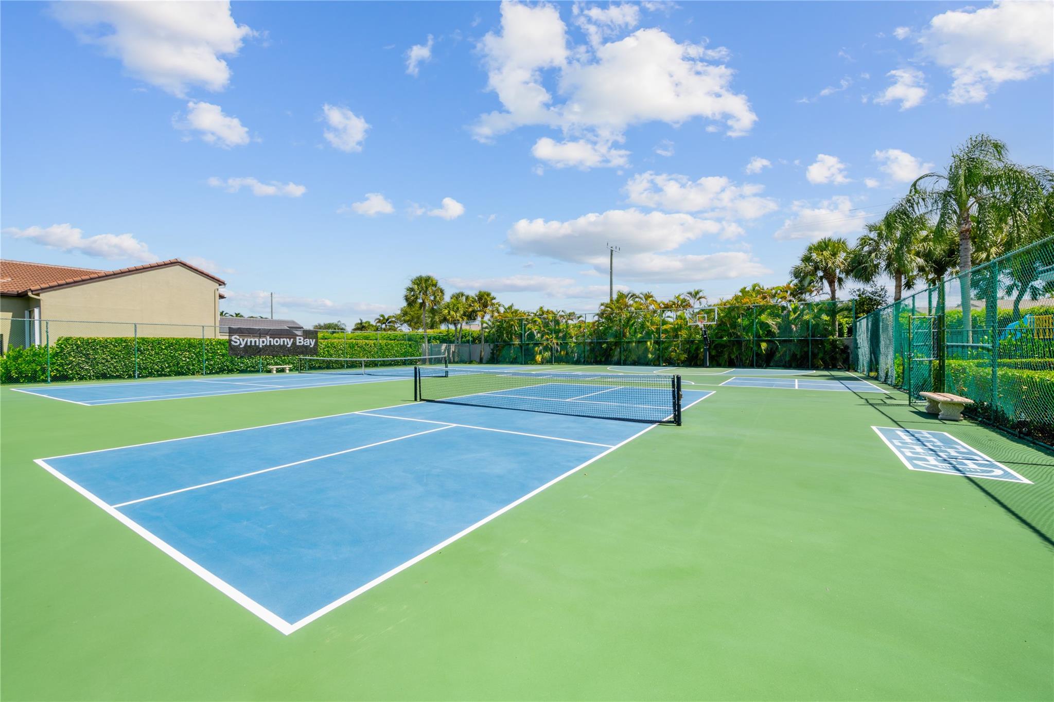 Well-Maintained Home in the Beautiful Gated Community of Symphony Bay! This immaculate home is in excellent condition and located on a desirable corner lot. It features a split floor plan, vaulted ceilings, and a spacious kitchen, perfect for both everyday living and entertaining. The primary suite offers a generous layout, complete with a sitting area, a walk-in closet, and a well-appointed en-suite bathroom with dual sinks, a soaking tub, and a separate shower. Enjoy indoor-outdoor living w/ a private screened patio accessible from both the family and living rooms—ideal for relaxing or hosting guests. Community amenities include: Gated access for added security, tennis, basketball, and pickleball courts, pool and clubhouse, children's playground and fitness center. Low HOA fees! Low HOA