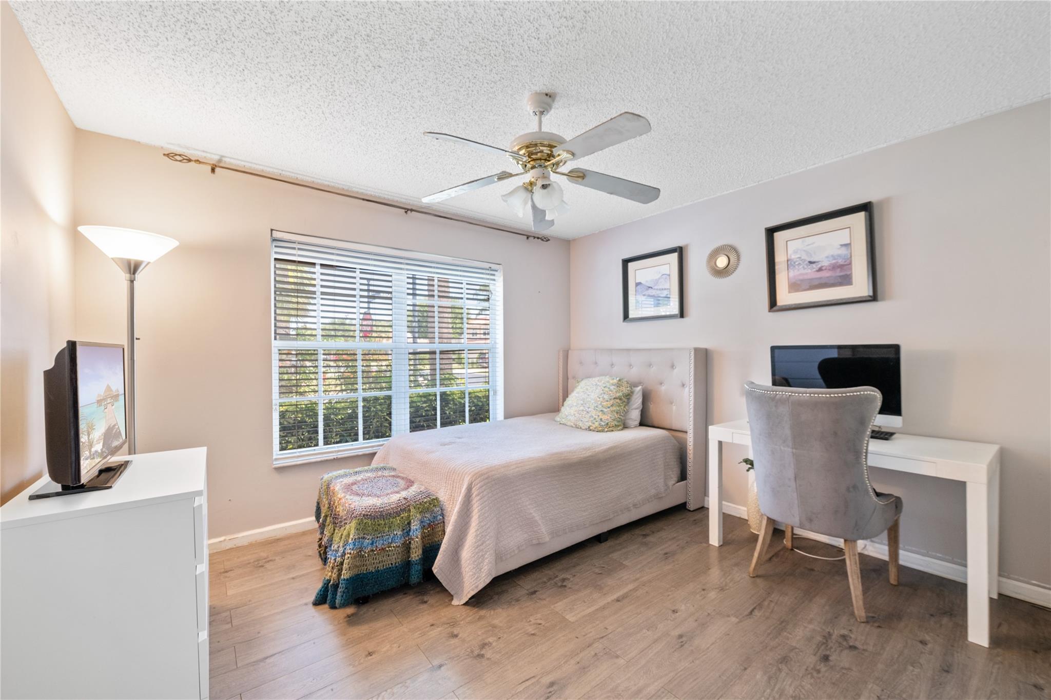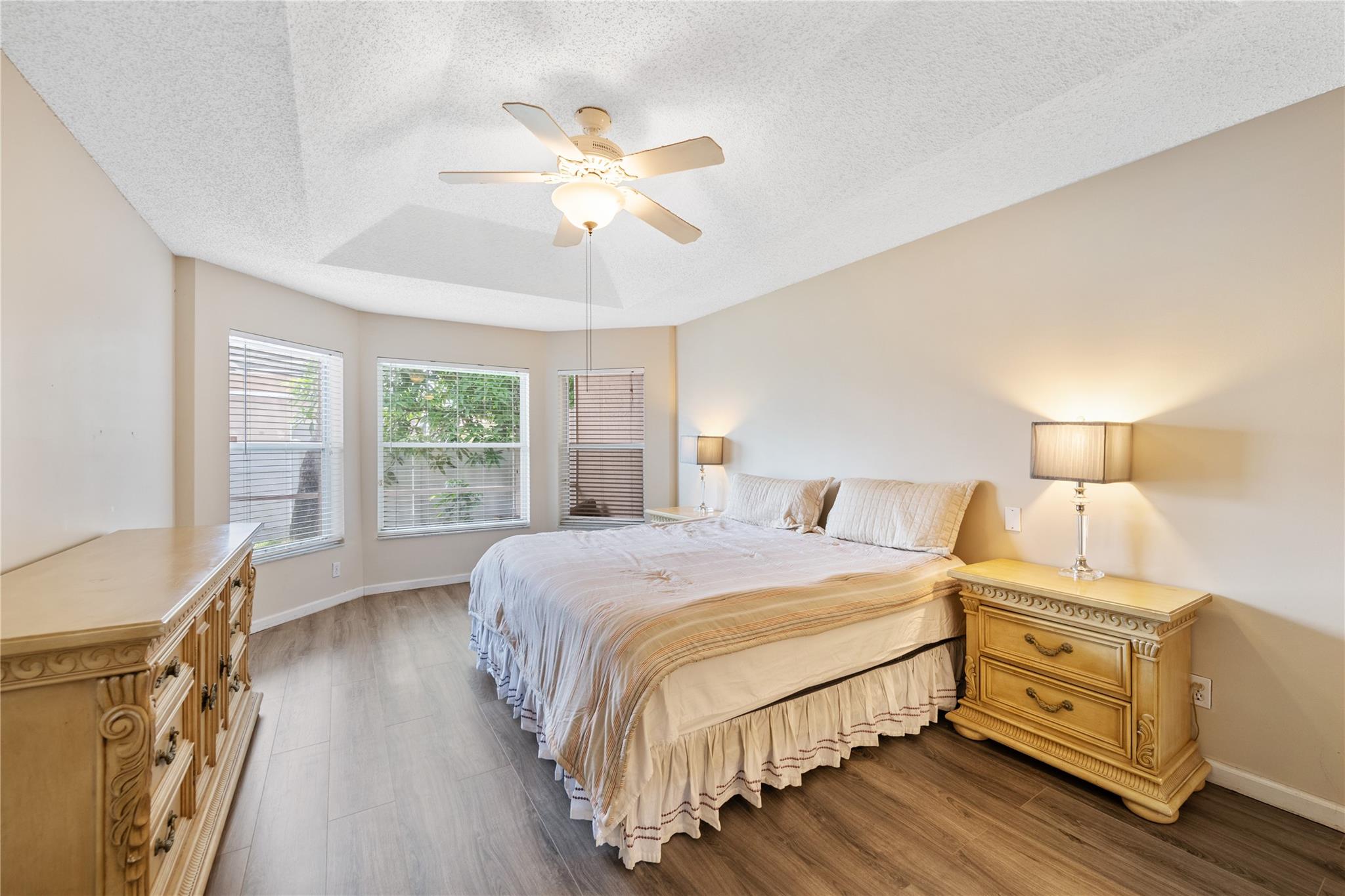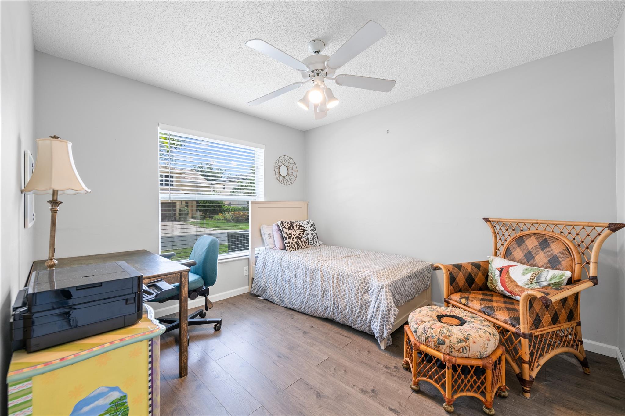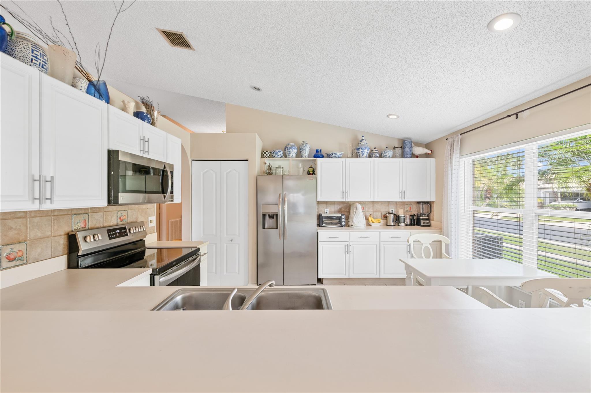 Well-Maintained Home in the Beautiful Gated Community of Symphony Bay! This immaculate home is in excellent condition and located on a desirable corner lot. It features a split floor plan, vaulted ceilings, and a spacious kitchen, perfect for both everyday living and entertaining. The primary suite offers a generous layout, complete with a sitting area, a walk-in closet, and a well-appointed en-suite bathroom with dual sinks, a soaking tub, and a separate shower. Enjoy indoor-outdoor living w/ a private screened patio accessible from both the family and living rooms—ideal for relaxing or hosting guests. Community amenities include: Gated access for added security, tennis, basketball, and pickleball courts, pool and clubhouse, children's playground and fitness center. Low HOA fees! Low HOA