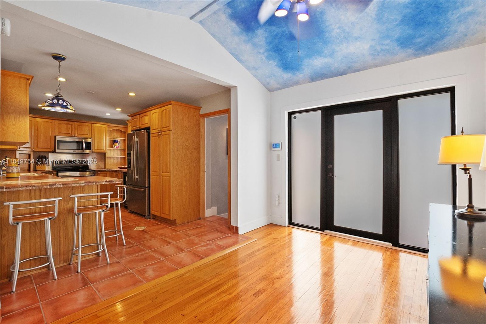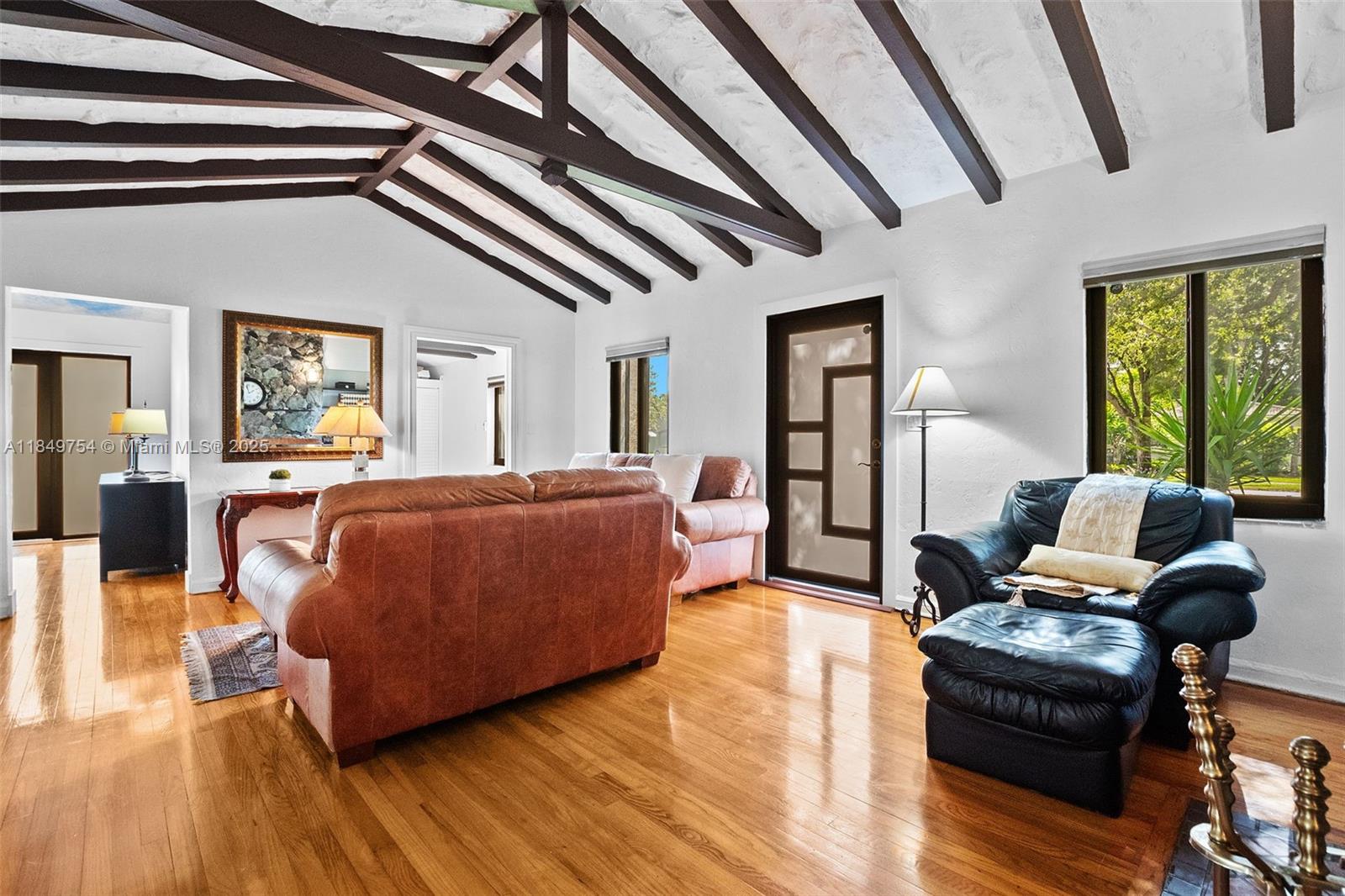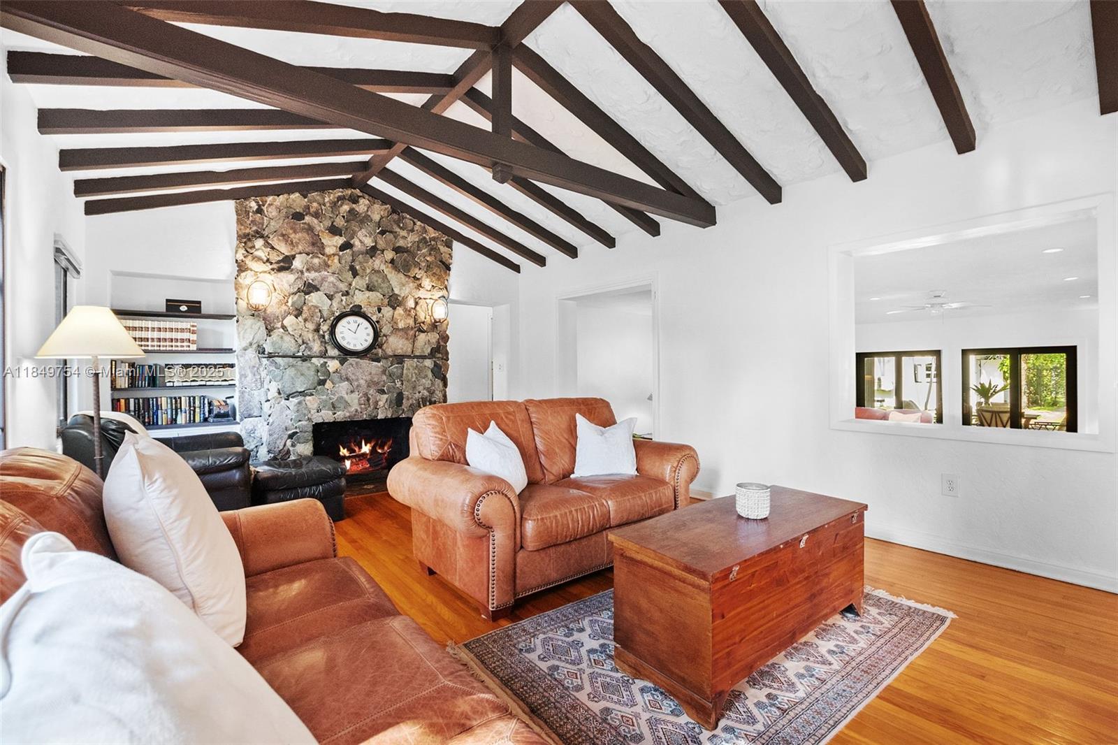 This ultra-rare, multi-family property at 500 South Dr offers 3,898 square feet on a 19,312-square-foot lot. The main house features 4 bedrooms, 3 bathrooms, including a master and en-suite, hardwood floors, high ceilings with wood beam work, and a granite-accented fireplace. The kitchen has real wood cabinets and pull-out drawers. A new metal roof, impact windows, and 2 AC units ensure efficiency. The property includes a separate 2-bedroom, 1-bath unit with a separate meter and another separate 1-bedroom, 1-bath unit, both ideal for multi-generational families. A covered patio, mature avocado, mango, palms, and a metered gate with private driveway parking complete the lot. Miami Springs is a family-friendly community with top-rated schools and tree-lined streets.