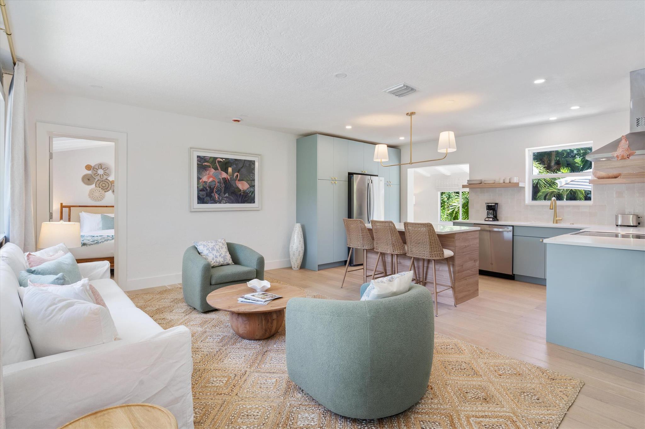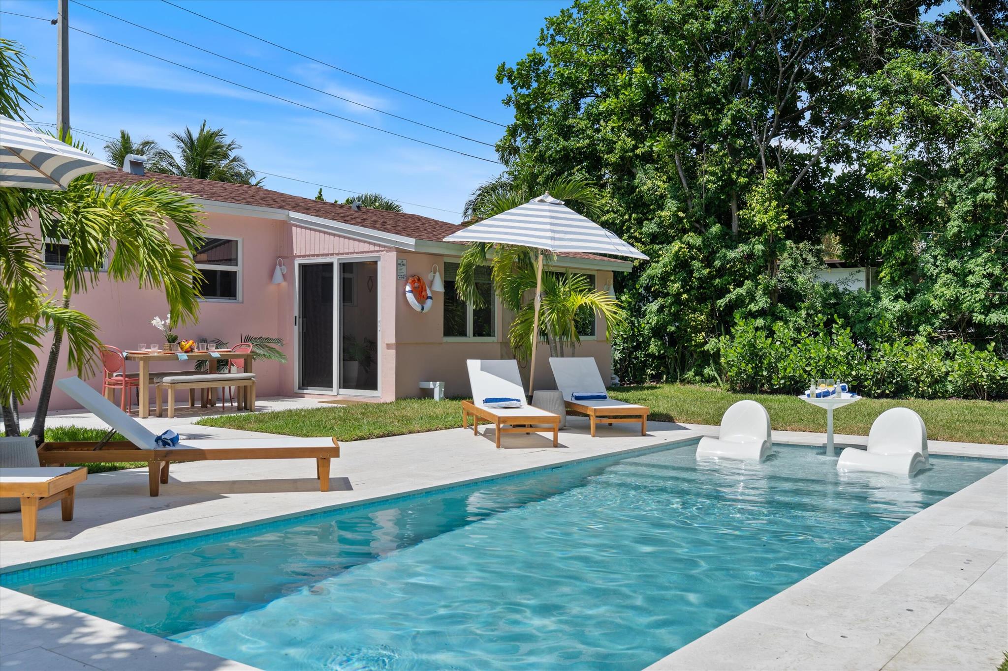 Welcome to this impeccably renovated 3-bedroom, 2-bathroom home located in the coveted SoSo neighborhood of West Palm Beach. Perfectly positioned near world-class dining, shopping, entertainment, and just a short drive from Palm Beach International Airport (PBI), this home offers both convenience and charm. Completely reimagined in 2025, it merges classic appeal with modern luxury, creating an ideal space for contemporary Florida living. The home underwent a remarkable transformation, including the conversion of a former garage into a spacious primary suite. Every detail has been thoughtfully considered to ensure the perfect balance of fine craftsmanship, functionality, and comfort. The open-concept floor plan is complemented by a brand-new pool, making it an ideal setting for