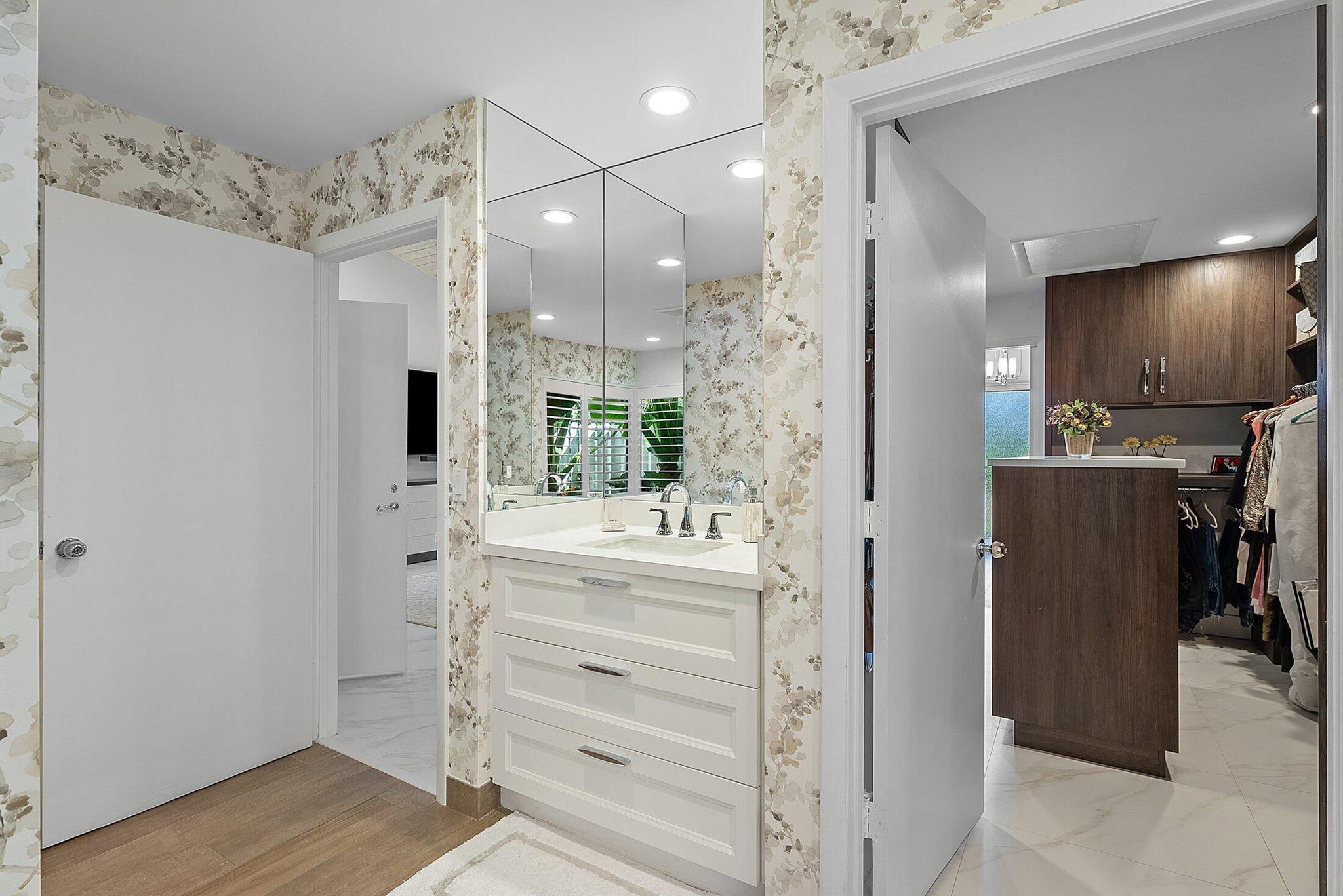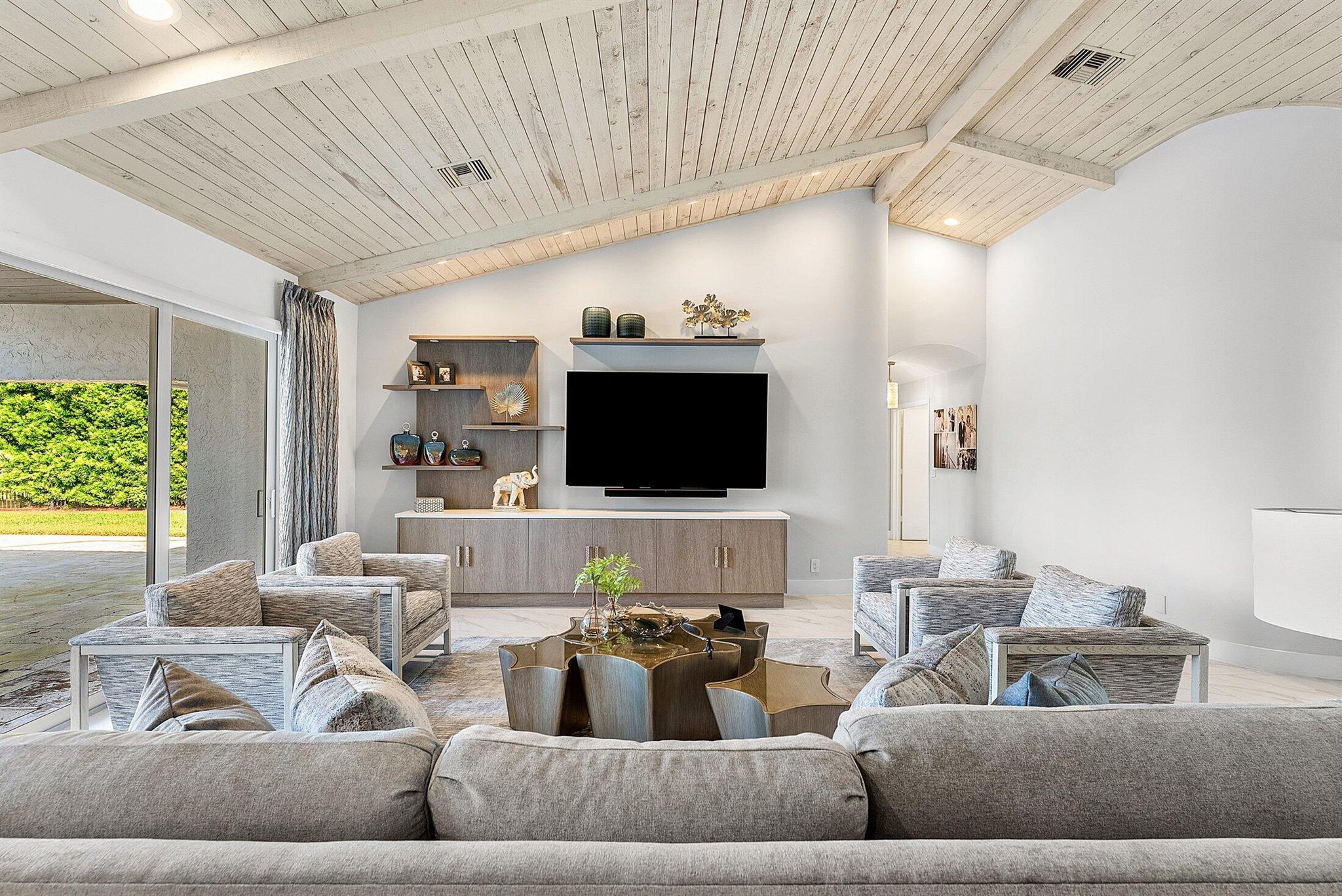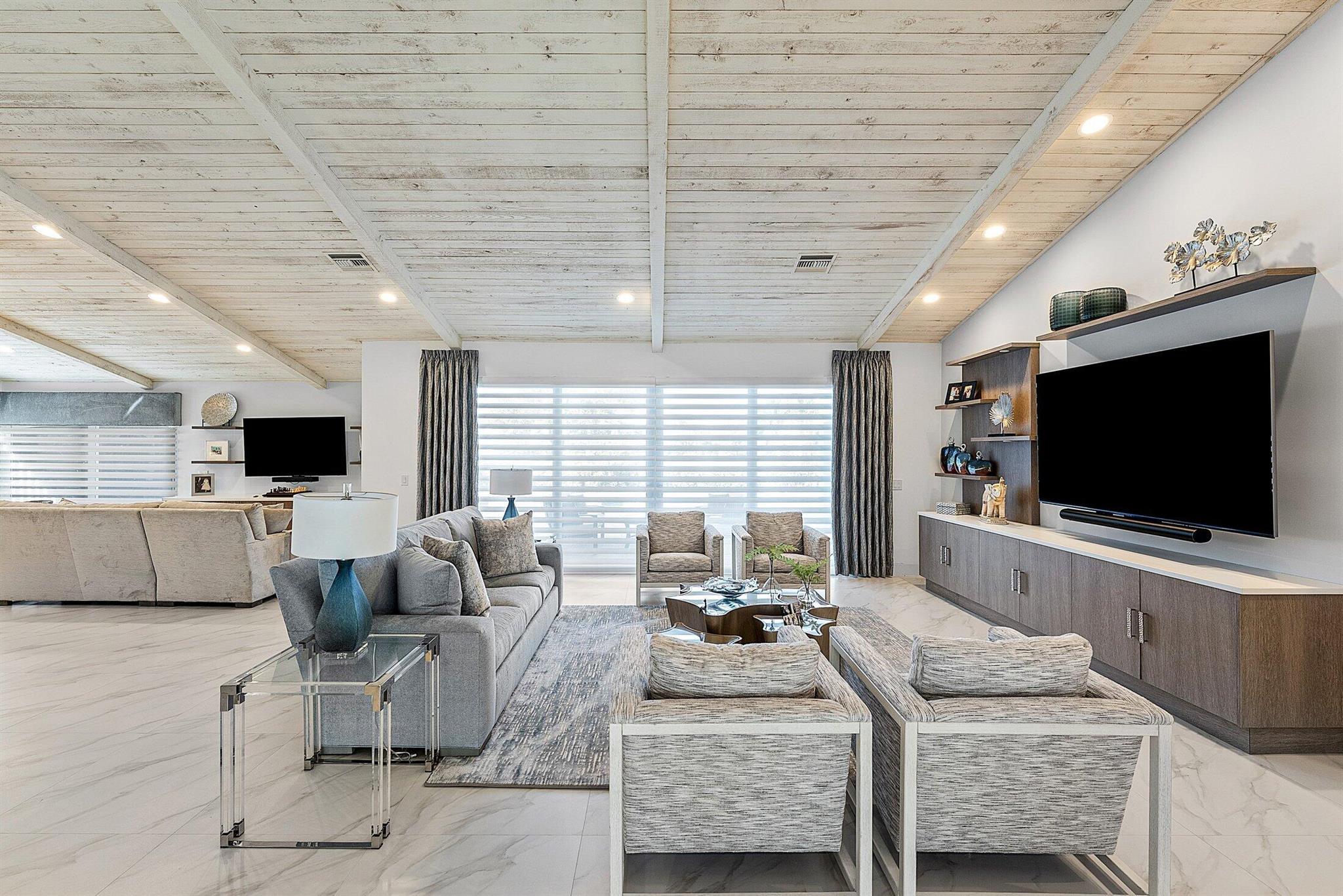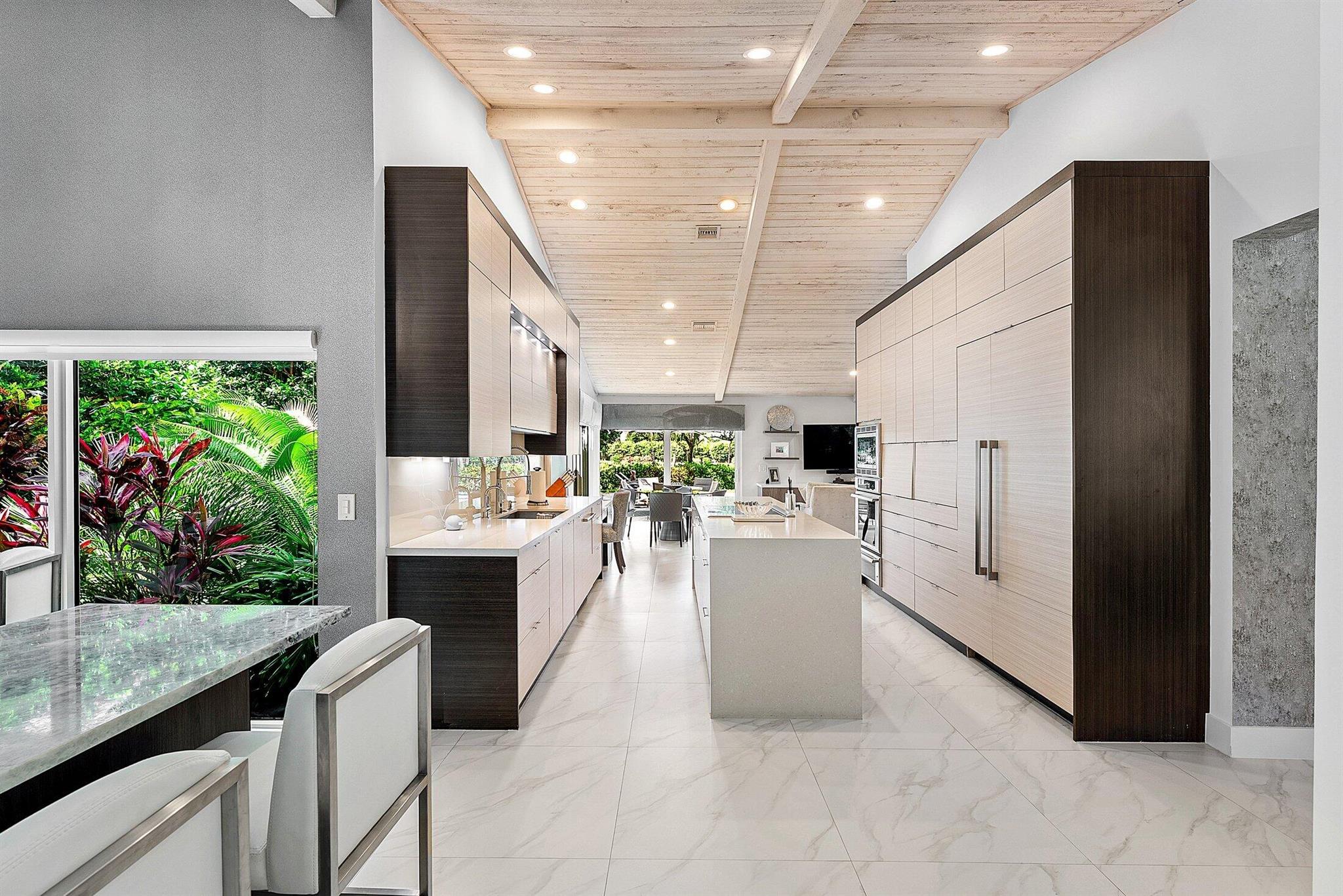 Welcome to this stunning, fully renovated contemporary residence in the exclusive Bocaire Country Club. Featuring 4 bedrooms and 4.5 luxurious baths, this home has been thoughtfully designed with high-end finishes and a serene, modern aesthetic in neutral tones. Enjoy effortless indoor-outdoor living with a grand, open-concept living room boasting vaulted ceilings, custom built-ins, and sliding doors that lead to a sprawling patio--perfect for entertaining or quiet retreats. Your private oasis with a heated pool and spa, brand new patio pavers, and lush, professionally designed landscaping overlooking the tranquil golf course.The gourmet kitchen is a showstopper, featuring designer finishes, a walk-in pantry, and adjacent laundry room. A sun-drenched dining area wrapped in floor-to-ceili