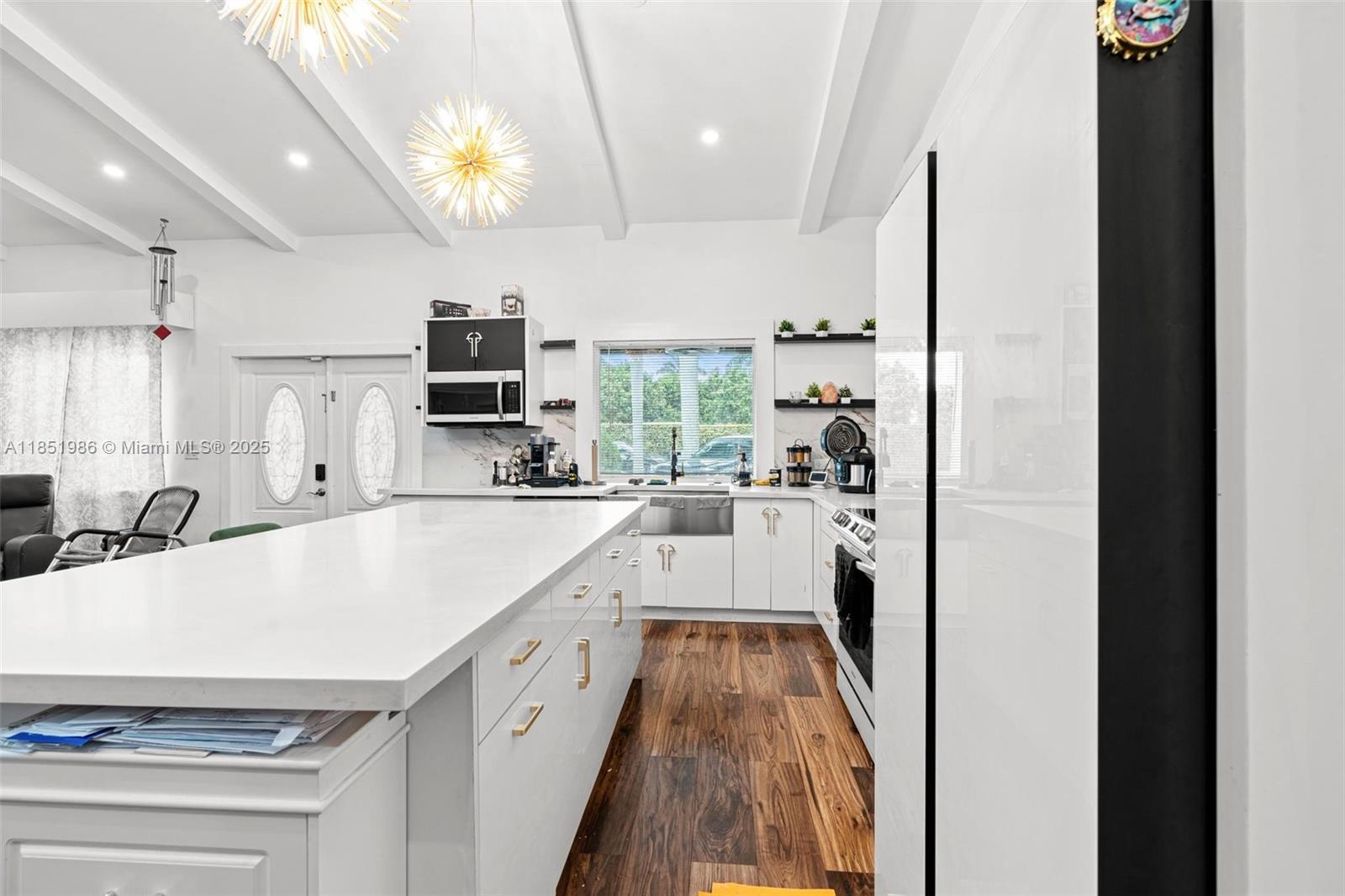 This 5/4 home offers 2,800 sq. ft. of living space on a spacious 14,000+ sq. ft. lot. Featuring vaulted ceilings, open-concept layout.The sleek kitchen offers quartz countertops, a large island, and custom cabinetry. The primary suite includes a spa-style bath with soaking tub. Enjoy a dedicated laundry area and an additional office space. Fully remodeled, full roof replacement, newer A/C, with enough solar panels to cover the majority of your FPL bill. Enjoy NO HOA - large lot that is fully fenced with a covered terrace and plenty for RV, or boat or future builds. Above ground pool is included in the sale. RV can be negotiated with the sale.Move in ready! Seller willing to assist with closing costs. Seller can convert home back to 5 bed 4 bath layout before closing.