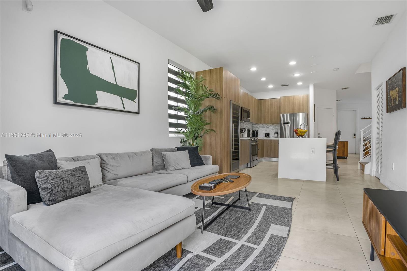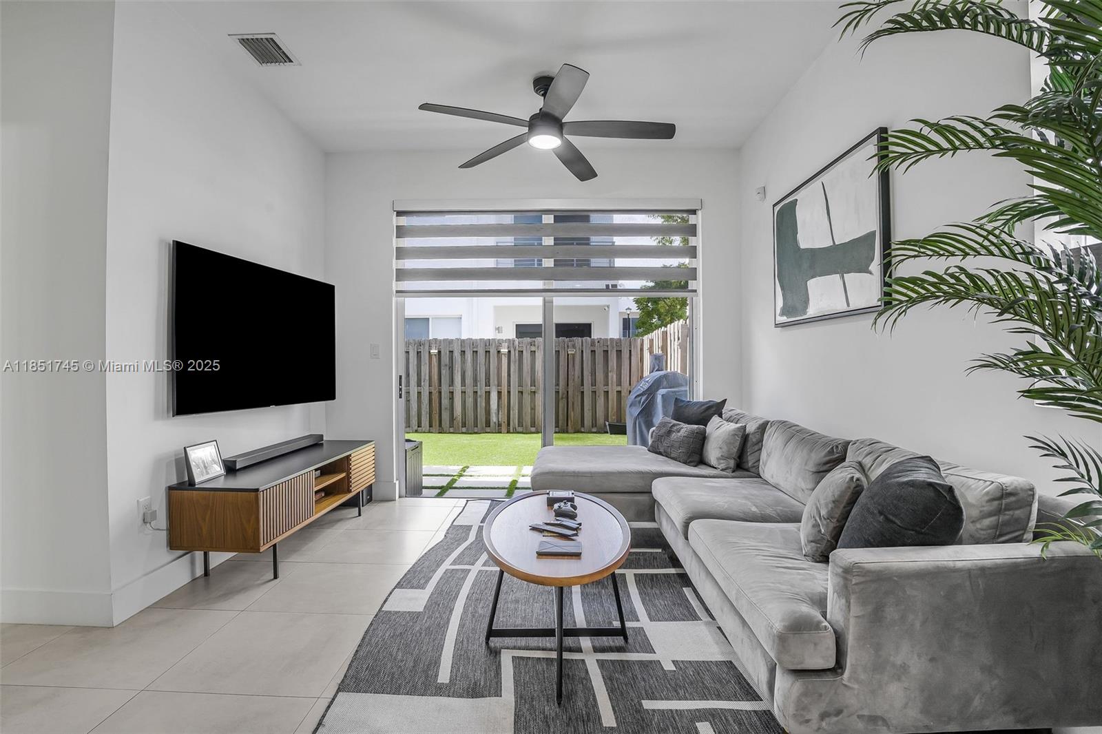 Two-story corner townhome located in the gated community of Neovita in Doral. Built with concrete construction and modern design, this home offers an open layout and a kitchen with contemporary finishes, a built-in wine cooler and recently updated amenities (e.g., dishwasher, faucet, garbage disposal, RO purifier). The exterior was recently painted, and a new garage door opener was installed. The home includes 4 bedrooms and 3 full bathrooms, with tile flooring on the first level and wood flooring upstairs. The backyard features artificial turf for easy maintenance, and the garage has been set up as a home gym with an EV charger. Bedrooms include dual-layer zebra blinds. HOA dues cover cable, internet, and access to the community clubhouse with a pool, gym, game room, kitchen, and more.