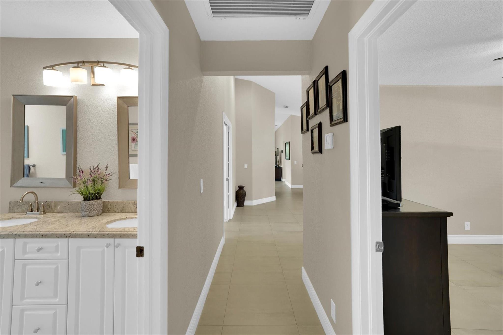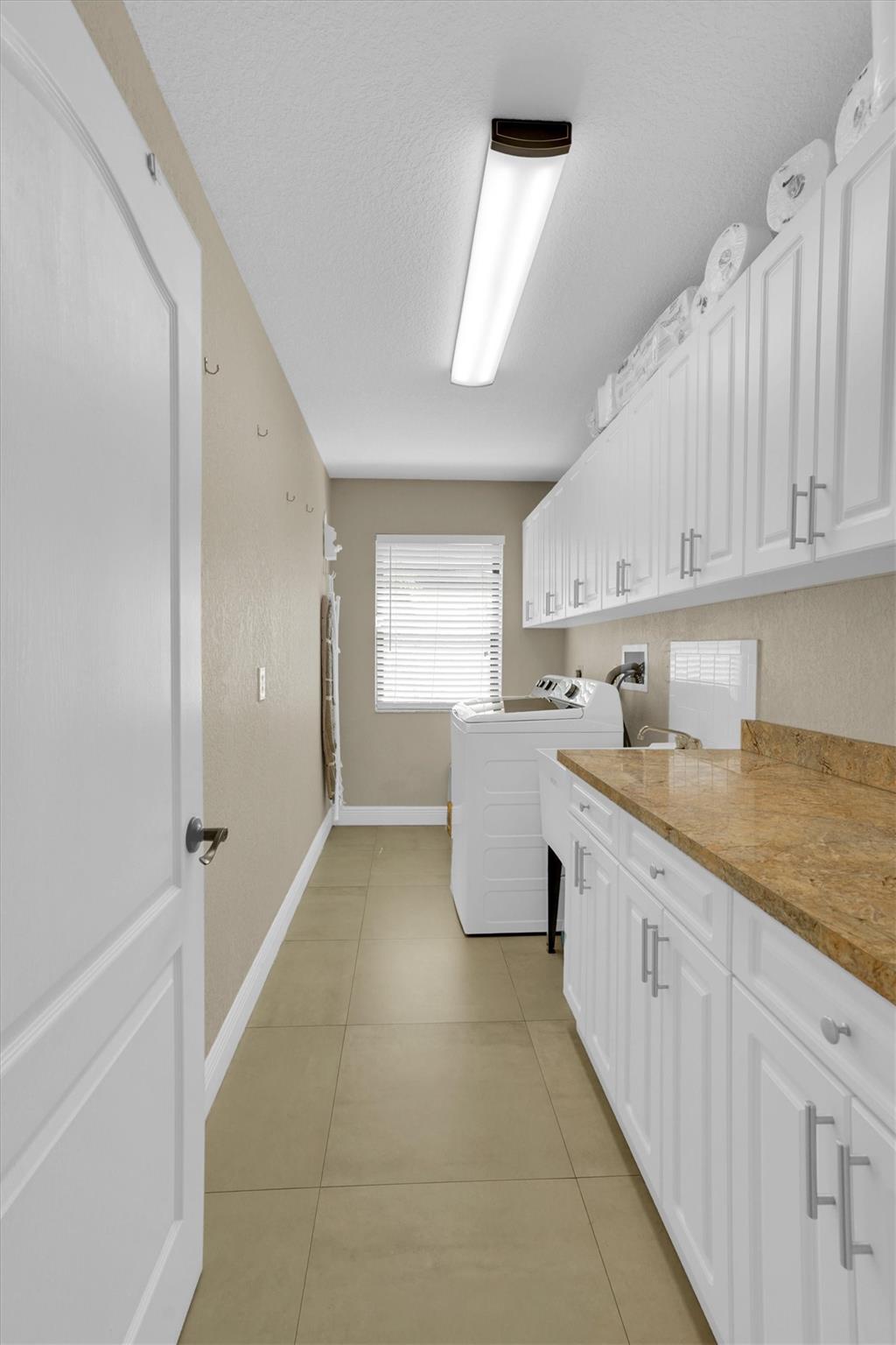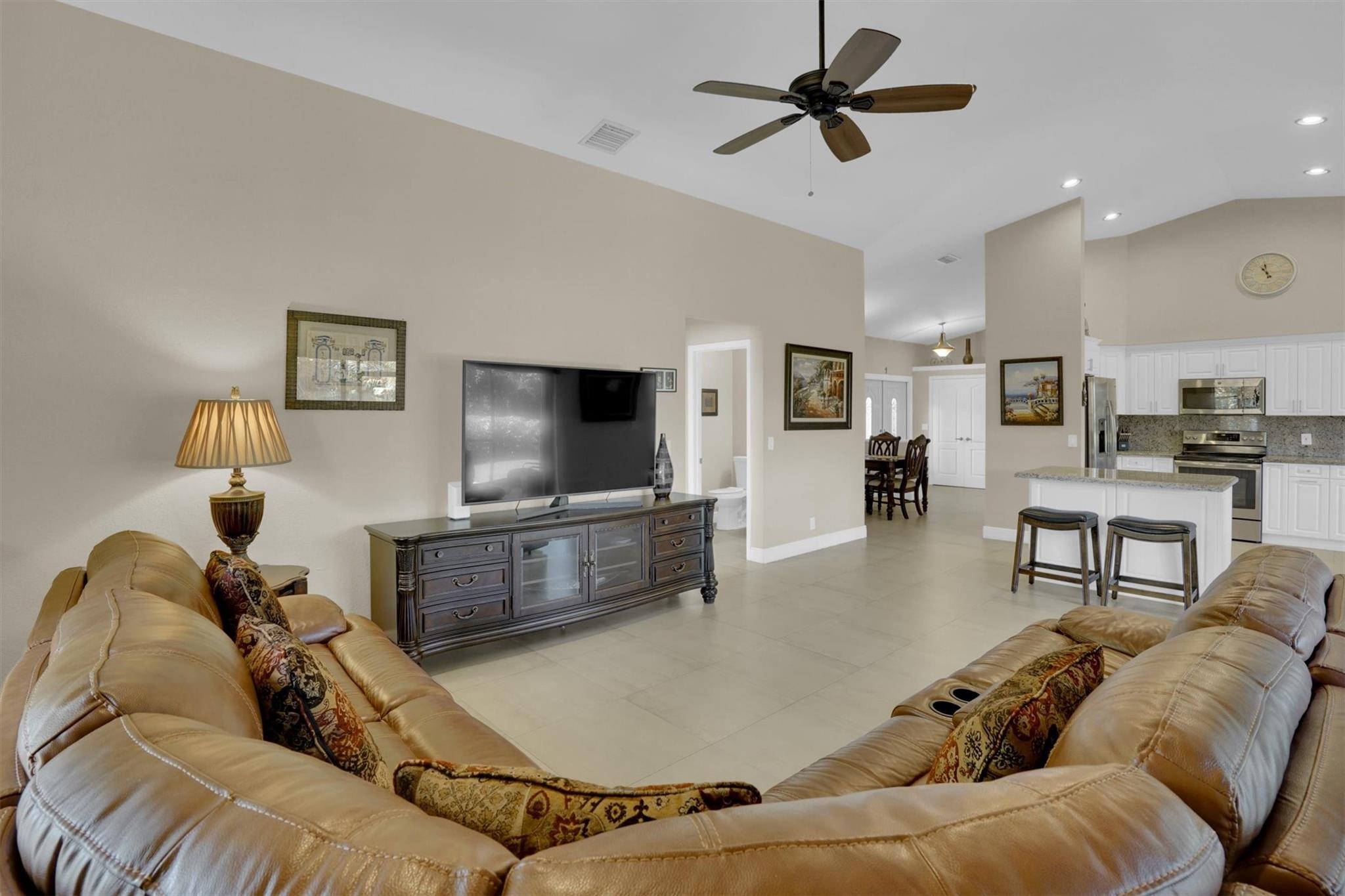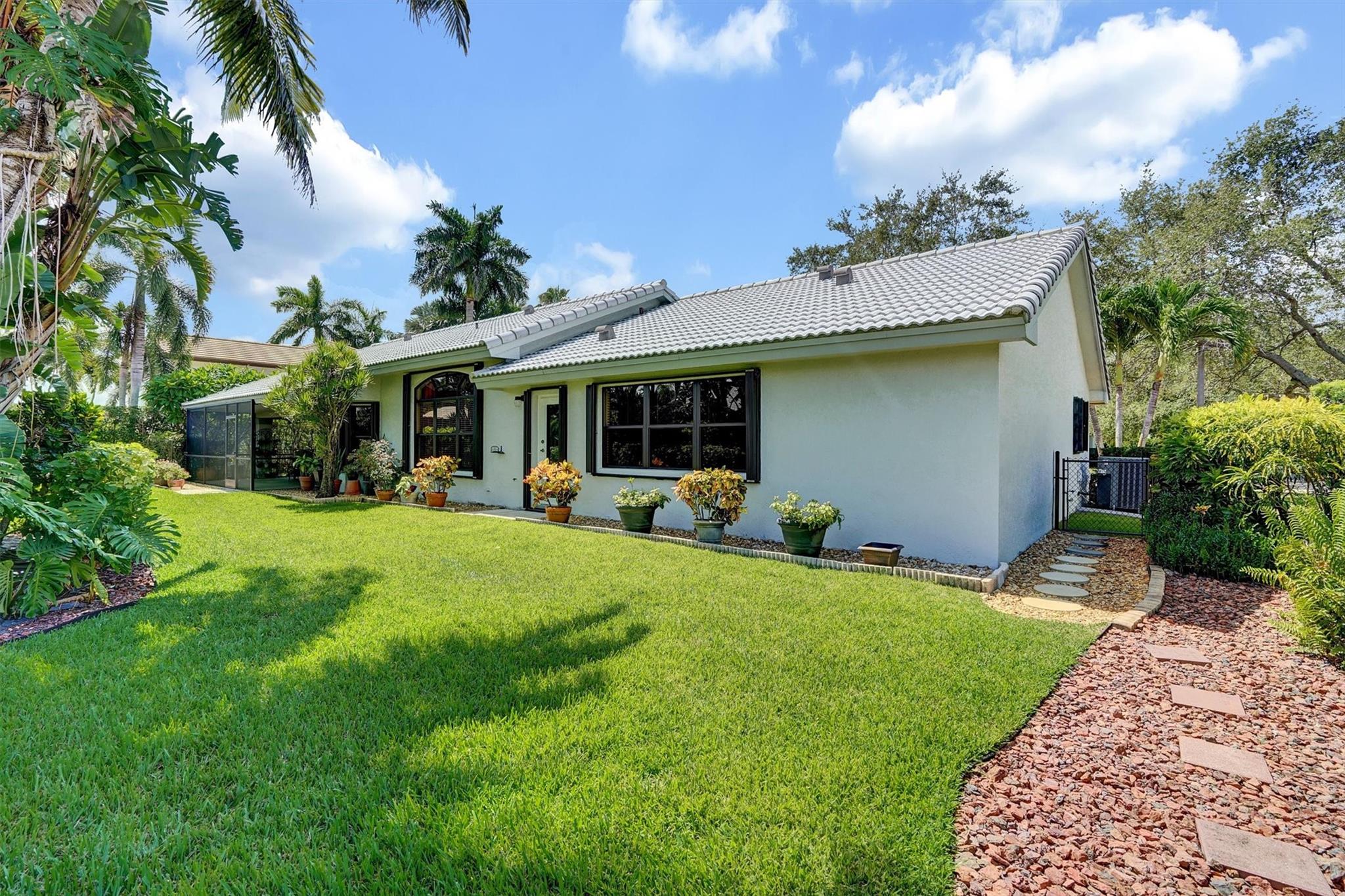 Don't miss out on this beautiful, fully remodeled, move in ready home in the sought-after Pasadena Estates! This beautifully upgraded residence features a spacious open-concept layout with 3 bedrooms and 2.5 bathrooms. Versatile office space can be converted into a full bedroom. Enjoy the elegance of textured walls and ceilings, stunning tile flooring throughout, and a modern design that blends comfort and style. Equipped with accordion shutters for quick and easy storm protection, offering peace of mind. Enjoy year-round living in the spacious enclosed patio, perfect for relaxing or entertaining. Large backyard, professionally manicured grounds surround the home, offering privacy and a beautiful view.