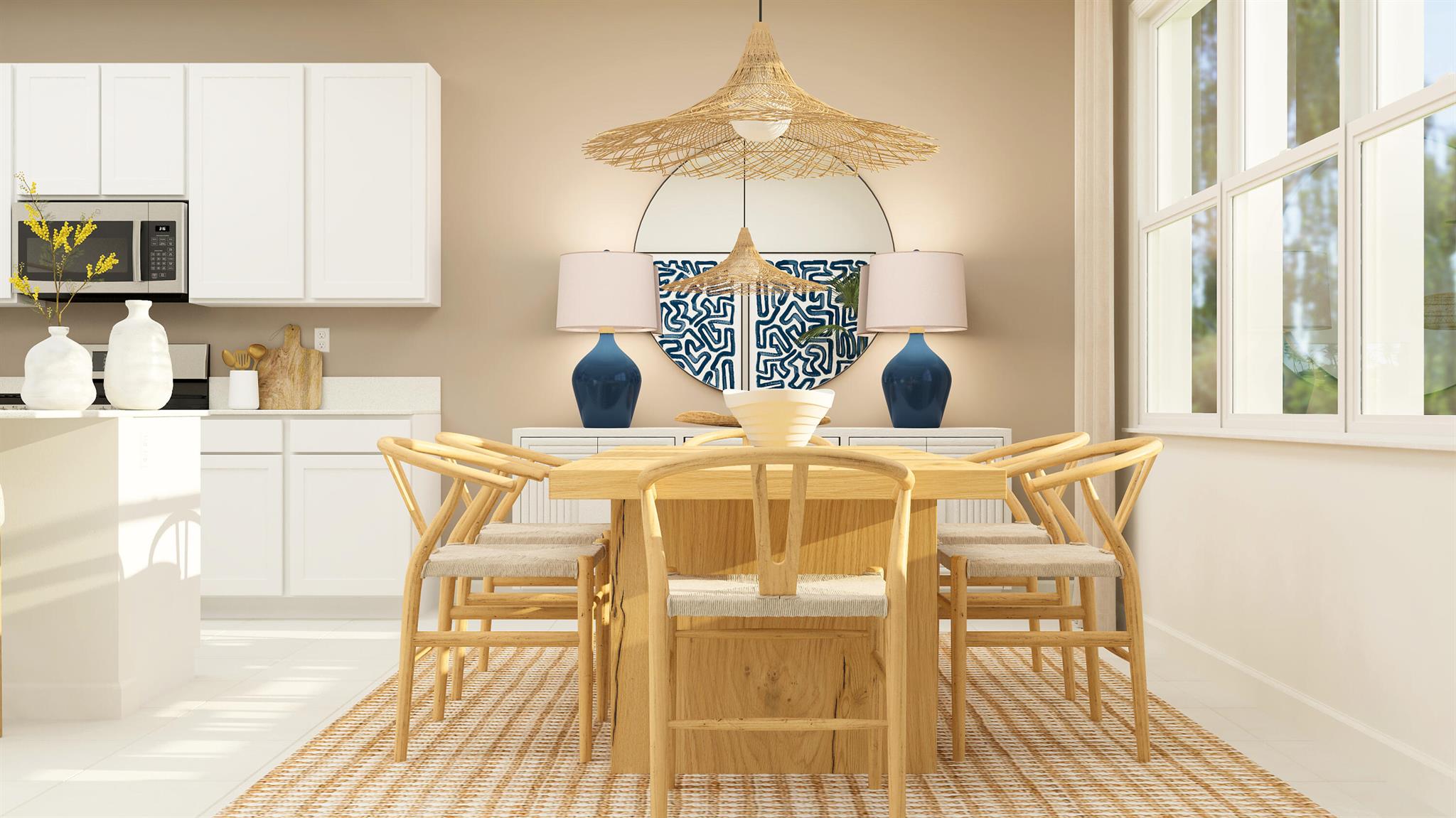 This two-story home features a spacious and modern layout with ample room to live and grow. An inviting open-concept floor-plan features access to the covered lanai for seamless entertaining and multitasking, with a convenient bedroom located off the foyer. On the second floor, four additional bedrooms surround the versatile loft, including the luxe owner's suite with a spa-inspired bathroom and dual walk-in closets. Amenities include 2 resort-style pools with waterfalls, clubhouse you can reserve for events, snack bar, splash pad for kids, tennis and basketball courts, kayaks, and many more. Photos are for illustrative purposes only.