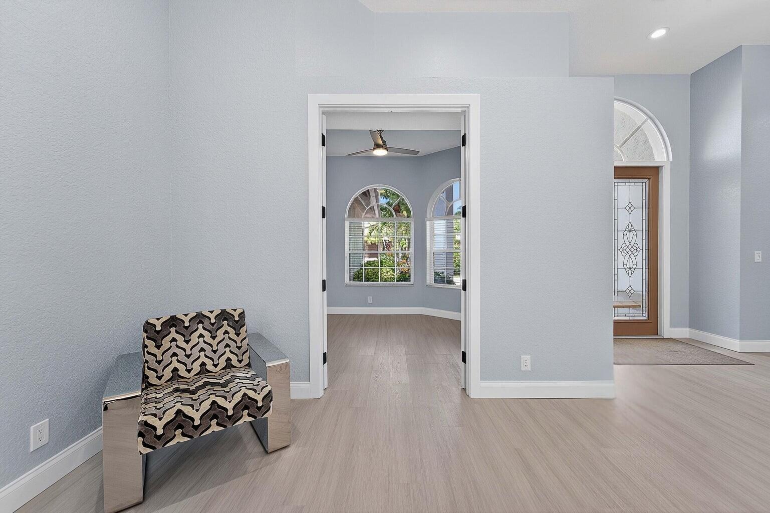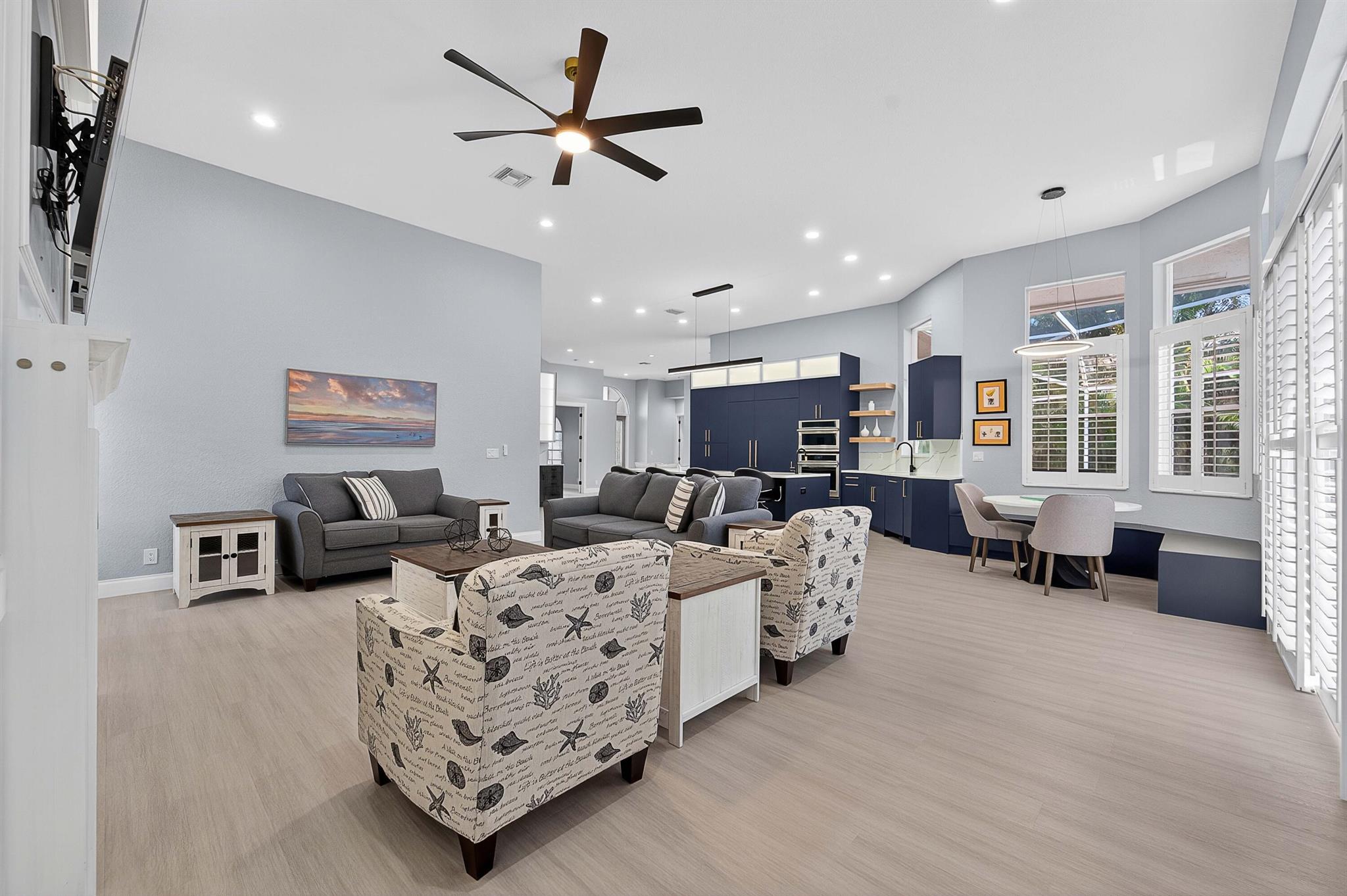 Step into your private oasis! This home is situated on an expansive 1/3-acre corner lot in the heart of Stonebridge Country Club. The stunning single-story masterpiece offers the perfect blend of luxury, privacy, and comfort. From the moment you arrive, the grand circular driveway welcomes you to a beautifully reimagined residence where every detail has been thoughtfully curated. Completely renovated from top to bottom, this 4-bedroom, 3-bath home features a show-stopping designer kitchen with top-of-the-line appliances, high-end custom cabinetry, quartz countertops, a sleek coffee bar with elegant recessed lighting throughout. Multiple spaces for relaxation include formal living room, dinning and family room. The spa-inspired bathrooms boast premium finishes and stylish touches that