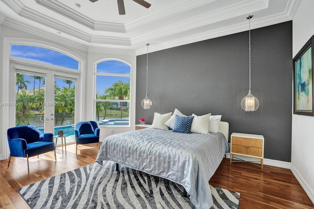 Discover unparalleled value in Hawks Landing with this stunning Martinique model home with breathtaking lake views.Grand foyer entrance, an expansive open floor plan, showcasing gorgeous marble floors & abundant natural light.The spacious kitchen features ample cabinets,an island,& a breakfast area.The primary suite includes a sitting area,French doors to the pool, tray ceilings, dual walk-in closets & a luxurious bath with a Jacuzzi & a walk-in shower.This triple split bedroom offers a secluded bedroom for guests. Large Family Room , snack counter top & French doors. An outdoor retreat with a large covered patio and lush tropical foliage, for space&privacy. Beautiful heated pool to enjoy year-round. Located in a prestigious community with top-notch amenities,.Attractively priced to sell.